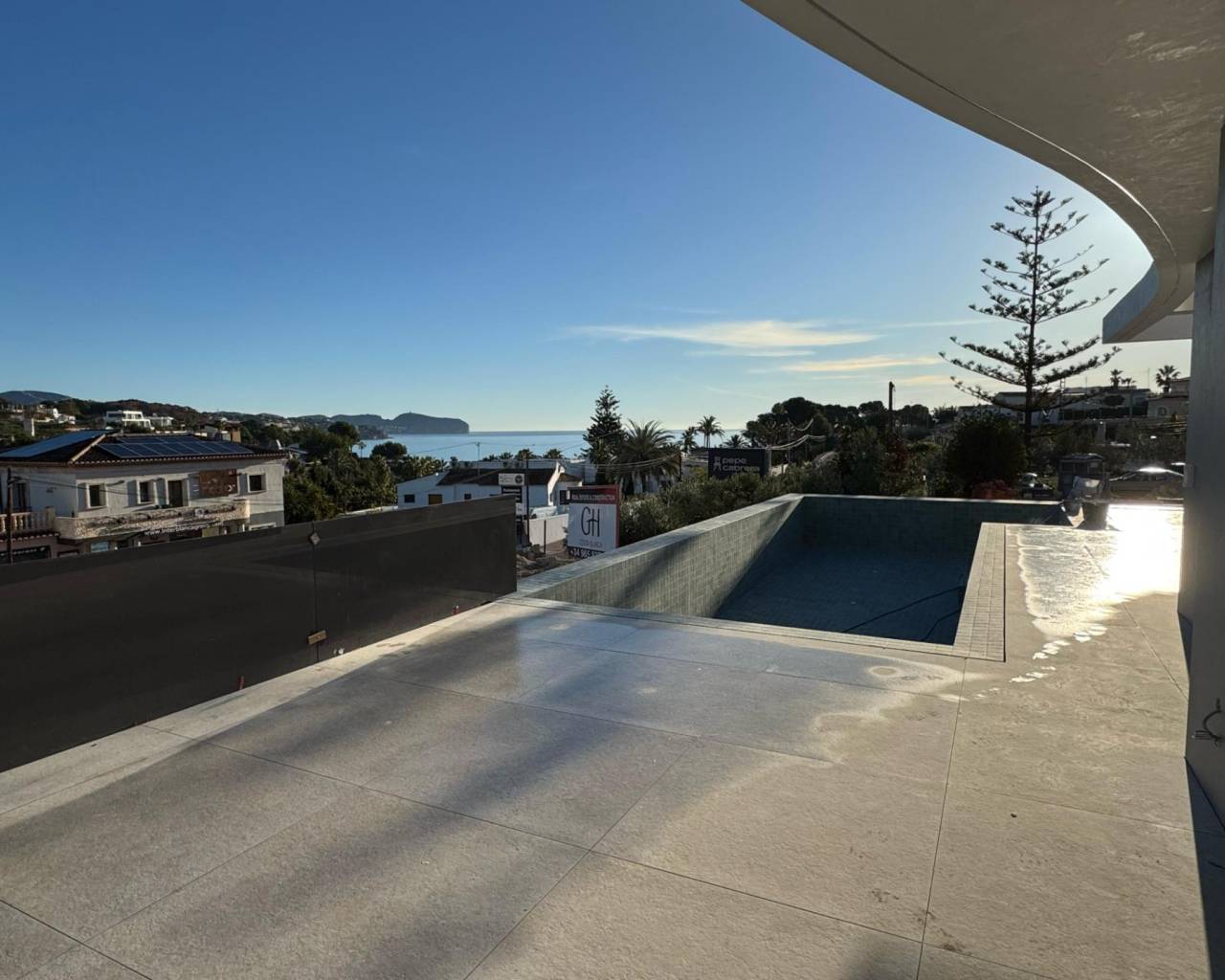 NEW BUILD VILLA WITH THE SEA VIEWS IN BENISSA New Build luxury villa built on a large plot of 1250m2, offering stunning sea views and open views towards Moraira, very well located in a quiet urbanisation just 200 m away from the beach ''La fustera'' and 2 km from the centre of Calpe. Luxury villa distributed over 3 floors and has 4 bedrooms, 5 bathrooms, equipped open plan kitchen, living room with large windows and direct accesses the pool. Beautiful terrace with the pool and barbecue area, from where there are beautiful sea views. The villa is located in one of the most beautiful residential areas of the Costa Blanca. The towns of Calpe, Benissa and Moraira offer an extraordinarily attractive coastline of great scenic and ecological interest, with a rugged coastline with numerous beaches and hidden coves. Benissa located between Valencia and the city of Alicante. Manises airport in Valencia is an hour away and L'Altet airport in Alicante 50 minutes drive away. Both airports are major international airports served by a large number of low-cost airlines.