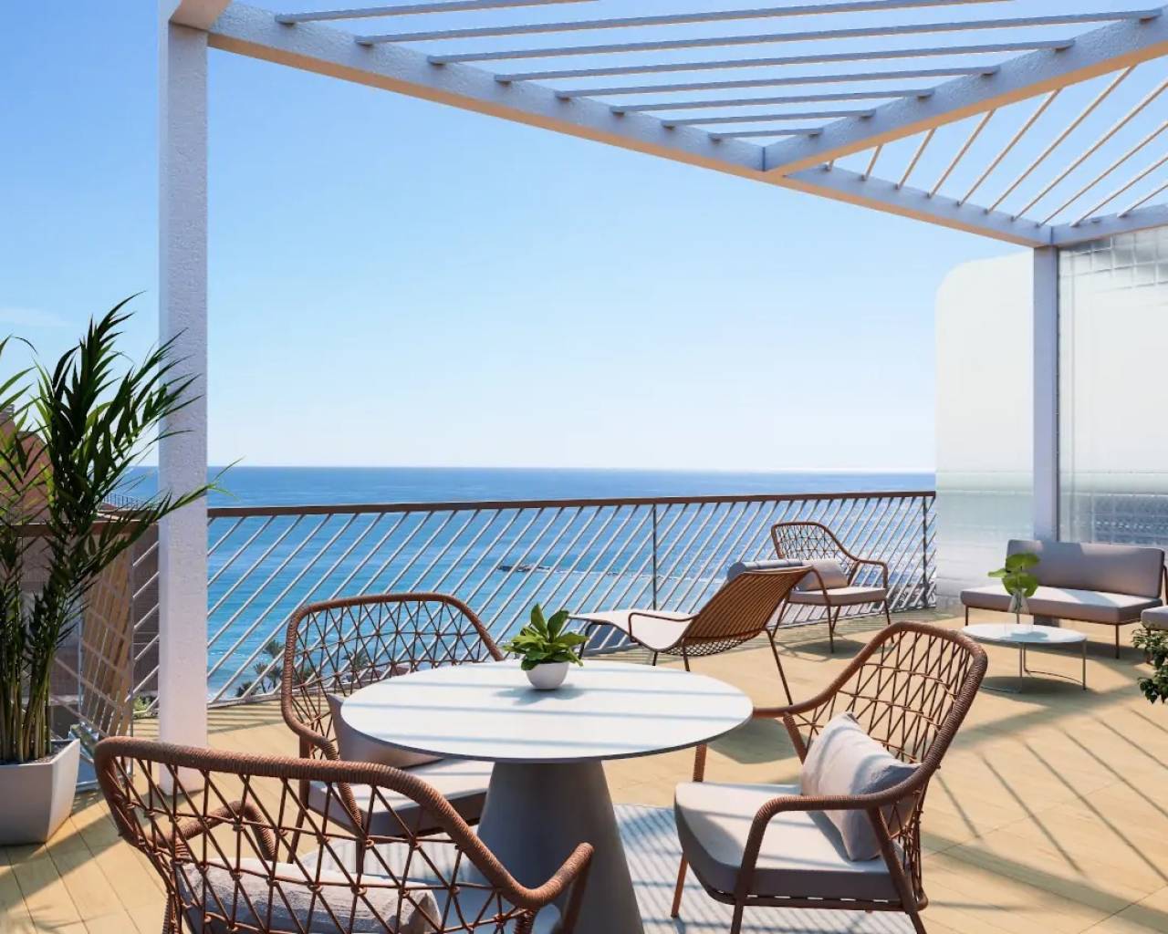 Discover a new concept of coastal living in Villajoyosa, where traditional charm merges with contemporary design. This exclusive development offers flats, duplexes and penthouses with 1, 2, 3 and up to 4 bedrooms, situated in a privileged location next to the sea. With spectacular views from the upper floors and just a short walk from Playa Centro, this development combines tranquillity, comfort and luxury. Designed with high quality materials, this new development is strategically located close to Benidorm and the heart of Villajoyosa, offering a unique Mediterranean lifestyle.OUTDOOR AREASEl diseño exterior del residencial evoca la esencia de Villajoyosa, con fachadas que rinden homenaje a las casas tradicionales de la zona, utilizando acabados que recuerdan a la piedra natural. Los elegantes bloques de seis plantas están rodeados de amplias áreas verdes, creando un entorno sereno y armonioso. Las terrazas espaciosas de cada vivienda invitan a disfrutar del clima mediterráneo, mientras las vistas al mar desde los pisos superiores ofrecen una experiencia incomparable, como si estuvieras navegando en un barco.INDOOR AREASEl diseño exterior de la promoción evoca la esencia de Villajoyosa, con fachadas que rinden homenaje a las casas tradicionales de la zona, utilizando acabados que recuerdan a la piedra natural. Los elegantes bloques de seis plantas están rodeados de amplias zonas verdes, creando un entorno sereno y armonioso. Las amplias terrazas de cada vivienda invitan a disfrutar del clima mediterráneo, mientras que las vistas al mar desde las plantas superiores ofrecen una experiencia incomparable, como si navegara en un barco.COMMON AREASThe development has extensive green areas surrounding the buildings, providing an ideal space for relaxation and contact with nature. In addition, the communal areas are designed to offer privacy and tranquillity, maintaining a perfect balance between the urban environment and life by the sea. Located in one of the most emblematic areas of Villajoyosa, this development combines proximity to the Playa Centro beach and access to all the services of the town centre with the peace and quiet of living by the sea. Its proximity to Benidorm and other towns on the Costa Blanca ensures perfect connectivity, while the unique design of the development reflects the cultural and natural richness of its surroundings. A home for those seeking quality, tradition and modernity in a privileged setting.
