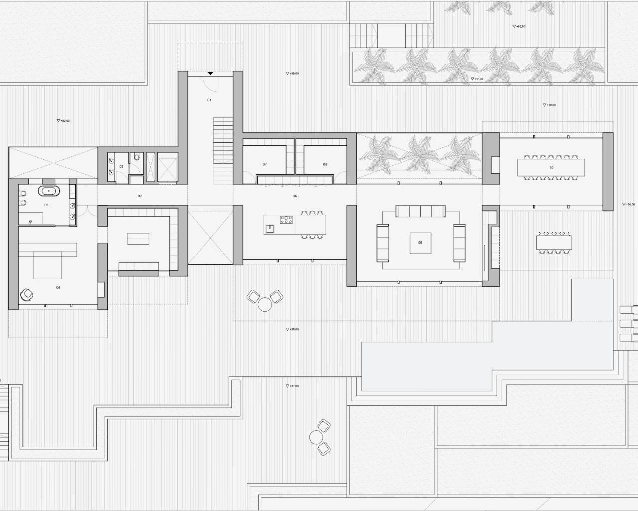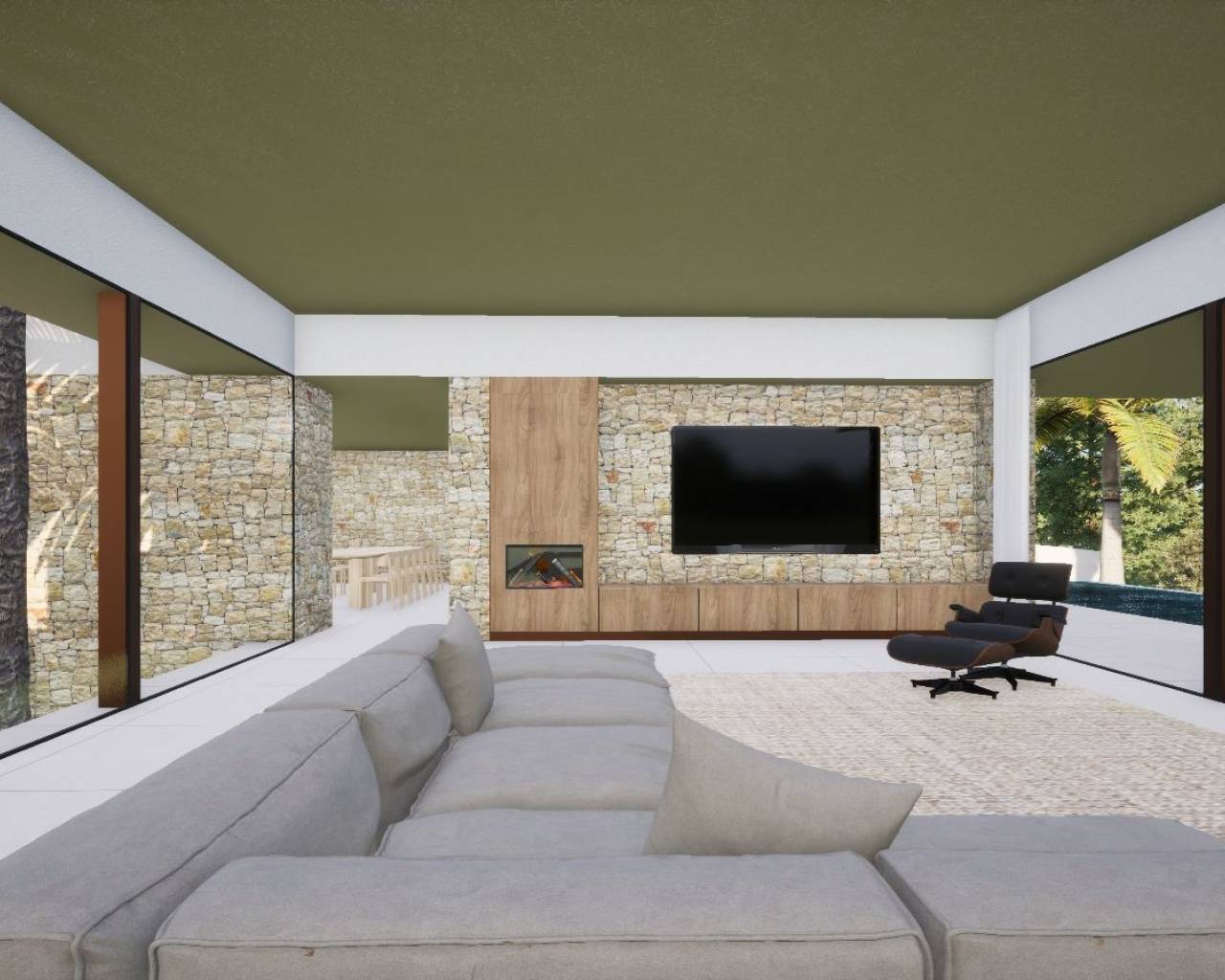 Project for a modern luxury villa with views of the Mediterranean Sea in the area of l'Andrago on the coast of Moraira. This villa will consist of three floors with 6 bedrooms, 6 bathrooms, 2 toilets, and infinity pool with garden and privategarden and private parking.Semi-basement floor: Entrance hall, a games room which can be equipped with a table table tennis and billiard table, a guest toilet, a garage with a capacity for up to 6 cars, two utility rooms, a small living room to equip the two quiet rooms with the with the possibility to connect a TV, two en-suite bedrooms with integrated bathrooms and built-in wardrobes, on this floor there is also a gymnasium and a storage room.Ground floor: We enter through a large hall to the main floor, we reach the guest toilet and a large en-suite bedroom with an interior dressing room and interior bathroom with shower and bathtub. On this floor there is also a kitchen with a large central island and pantry and laundry. Following the natural natural path of the house we find a large living room and dining room.First floor: On this floor you enter through a hallway, which gives access on the right side up the stairs to two bedrooms with en-suite bathrooms and a television room. Going up the stairs, on the left side we find the master bedroom with a large dressing room with a central island and an en-suite bathroom.- Key points:- Sea view- Pre-installation for solar panels- Air conditioning- Underfloor heating- Heat pump- Double glazed aluminium doors and windows with Climalit glass- Electric blinds in the bedrooms- Luxury kitchen with Siemens appliances- Roca bathrooms - Electric entrance gate- For further information about this wonderful project please do not hesitate to contact us.- Distances:- 1.2 km from Algas beach and restaurants- 1.9 km from Platgetes beach - 2.2 km from La Ampolla beach. - 3 km from Moraira town centre