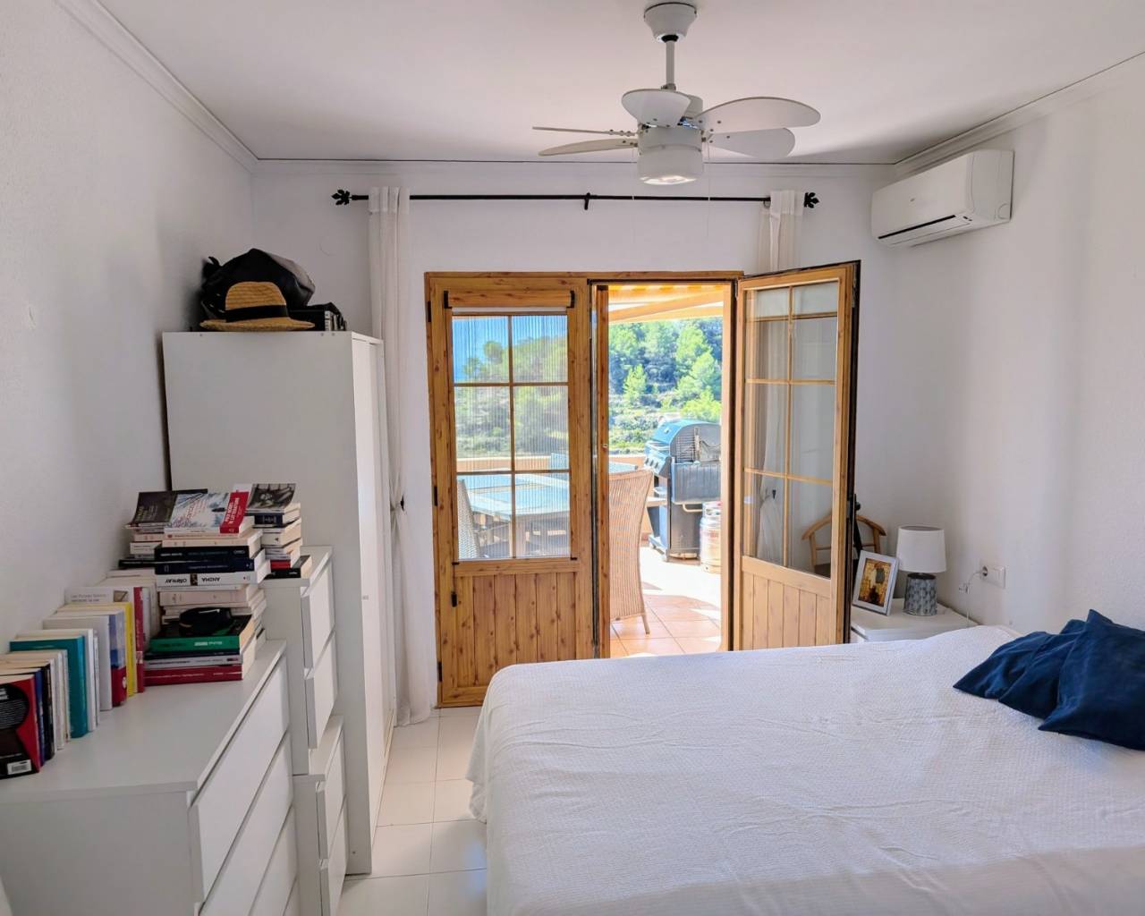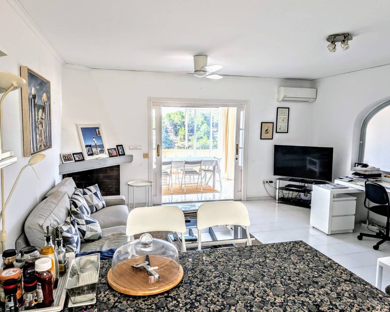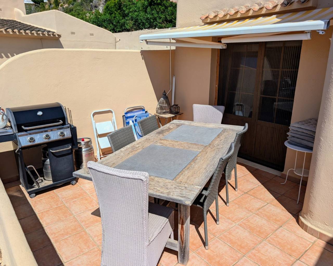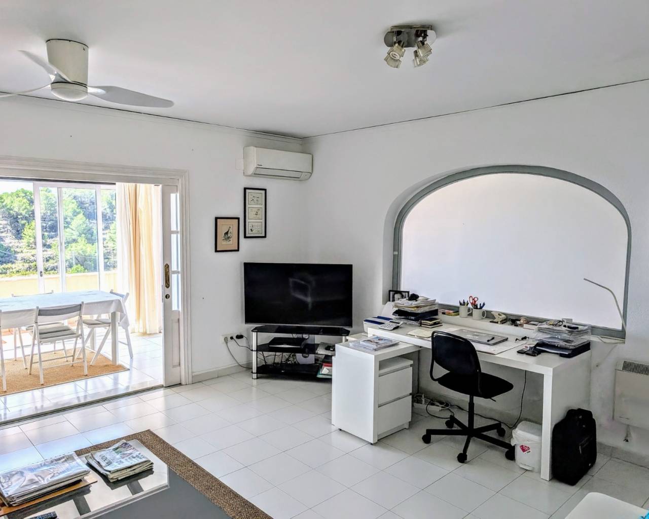 This spacious and luminous property offers remarkable views and sun all day. The property is distributed over two floors and is only a short walk to the superb community pool and a short drive to the supermarkets, beach and town centre. The principal entrance is only a short flat walk from the allocated parking space. You enter into a bright hallway and then straight into the spaciious living area, to the left is a modern, open kitchen with gloss white units and Baltic Brown granite worktops which includes all of the appliances necessary. To the right is a spacious living area which leads directly to a glazed naya with amazing views that is used as a dining room. Outside the naya there is an open terrace with awnings big enough to relax, barbecue and dine alfresco. To the right in the entrance hall you will find the master bedroom, a spacious room with built-in wardrobes, glazed doors leading out to the terrace and an en-suite bathroom including bath with shower attachment and a vanity unit. Down the well lit staircase in the hallway you reach the lower floor and a hallway leading to the outside terrace. On the right is a double bedroom with built-in wardrobes and on the left is a house shower room, a linen cupboard and another double bedroom with built-in wardrobes. Further into the back of the villa you find a large multi-purpose room, perfect for kids or for adults! Off this room is a small hallway including a laundry area, a spacious shower room and a large bedroom with two dressing rooms. Outside the lower floor is a huge (96m2 +/-) open terrace with an open naya and wonderful views over Moraira and to the sea.- Key points:- Built 1992- Present owner since 2021- Remarkable sea and mountain views that cannot be spoiled- Quiet area- Secure complex- Well run community- A short walk to the community pool which was recently renovated- Air conditioning- Double glazed windows with mosquito screens- Offered furnished and ready to move in- Community fees 1160€ per year- Annual taxes 839€ (property tax and rubbish tax)- Fibre internet available- Distances:- International supermarket and a large choice of restaurants 3.4km- Beach 3.4km- Town centre 5.2km- Golf 2.6km- Motorway access in Benissa 5.9km- Do not miss this chance to own this lovely villa