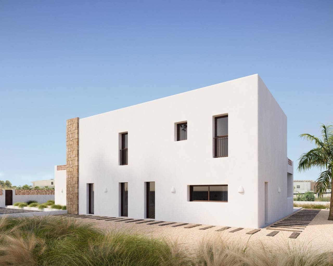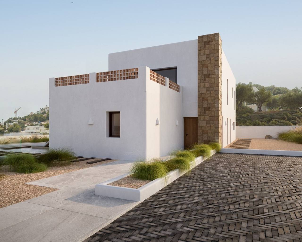 Welcome to our new development in Benimeit, Moraira: a modern villa inspired by Ibiza style in, one of the most sought-after areas. Located on an 800 m² south-facing plot, this elegant property offers a refined combination of peace, luxury, and Mediterranean ambiance, with some sea view from the ground floor and better sea views from the first floor. The villa is designed in a modern Ibiza style, with warm, natural accents and an open layout that radiates tranquility and spaciousness. With a living area of 254 m² and a total built area of 559 m², this home is both elegant and functional. The bright living area forms the heart of the house: an open living room and a luxury kitchen with cooking island. The villa features three bedrooms and two bathrooms, including a master suite with en-suite bathroom and direct access to a large balcony. The other bedrooms are ideal for family or guests. Outside, a spacious sunny terrace gives access to a private swimming pool, the perfect place to enjoy the Mediterranean climate in complete tranquility. Naturally, there is private parking on the property. This villa is ideal for those seeking peace, privacy, as well as for families looking for a charming and well-located home. Benimeit is known for its calm atmosphere, green surroundings, and beautiful views.- Key points:- Underfloor heating- Air conditioning- Furnished- Private pool- Easy maintenance garden- Parking- Top quality finished throughout- Construction commences 2025- Clients choice of kitchen, bathrooms and tiles- For further information please do not hesitate to contact us.- Distances:- 1km to supermarket and restaurants- 1.7km to a shopping centre- 3.3km to beach and town centre- 3.9km to golf- 6.9km to motorway access in Benissa