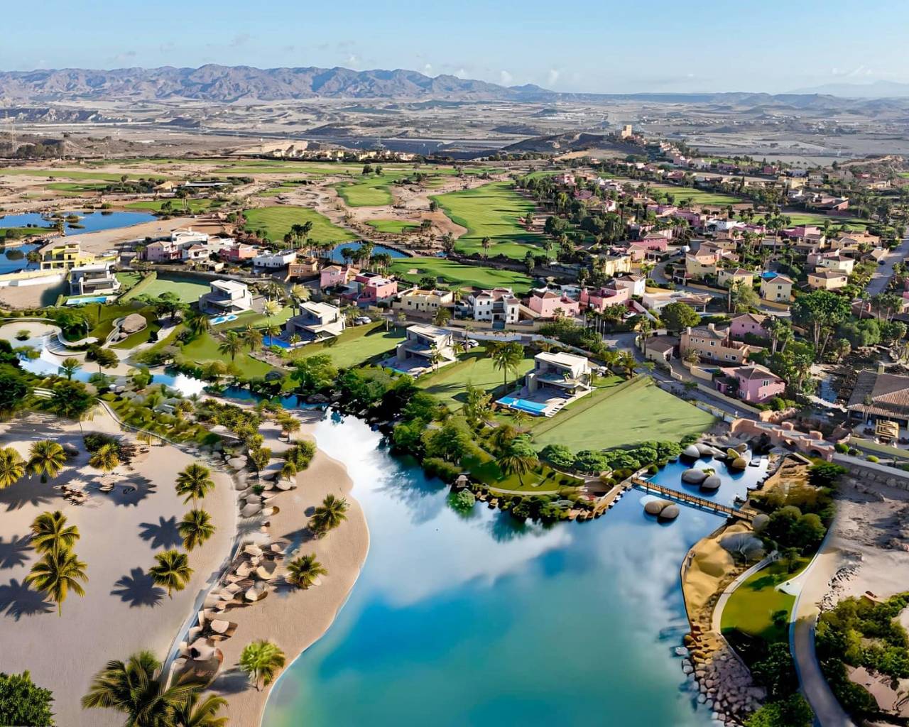 These stunning villas are located in a breathtaking setting by the lake, within the prestigious Desert Springs Resort. They offer the perfect combination of luxury, comfort, and privacy. The properties feature four spacious bedrooms, each with built-in wardrobes, and three stylish bathrooms. The master bedroom on the ground floor includes a luxurious dressing area and an en-suite bathroom, making it the ideal space for ultimate peace and relaxation. The ground floor also includes a separate guest toilet and storage room. The expansive living room is light and airy, with an open kitchen fully equipped with modern appliances. The living room offers direct access to the cozy terrace, where you can enjoy outdoor living and panoramic views of the lake. The garden is beautifully landscaped and provides plenty of space for relaxation or creating a sun terrace. Additionally, there is a storage room perfect for bicycles, and the property has its own parking space on the plot. The infinity pool offers breathtaking views and a tranquil oasis, ideal for relaxing and cooling off on warm days. The villa is equipped with solar panels, contributing to a sustainable lifestyle and lower energy costs. Air conditioning throughout the property ensures comfort all year round. This villa not only offers the perfect holiday home but also a luxurious lifestyle within the Desert Springs Resort, known for its exclusivity and high quality of life. Desert Springs Resort offers more than just a home; it is an experience of luxurious living. The expansive 700-hectare estate has been carefully designed to blend seamlessly with the natural surroundings. Upon arrival, you are welcomed by the serene beauty of the desert, the soothing presence of native flora, and the gentle rustling of the wind through the palm trees. Located a short drive from the sparkling Mediterranean Sea, Desert Springs Resort combines the best of both worlds: the tranquil atmosphere of a desert oasis and the refreshing proximity to the sea. Imagine waking up to breathtaking views of the rugged mountains and ending your day with a peaceful walk along the pristine beaches of the nearby coast. Prices subject to availability. Please contact us for more information