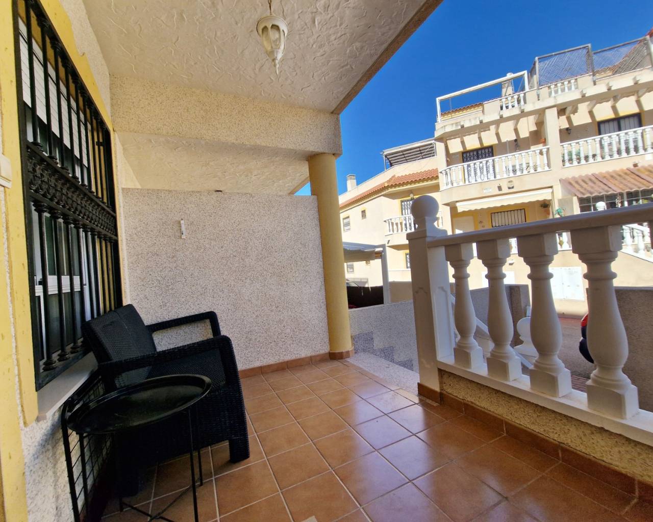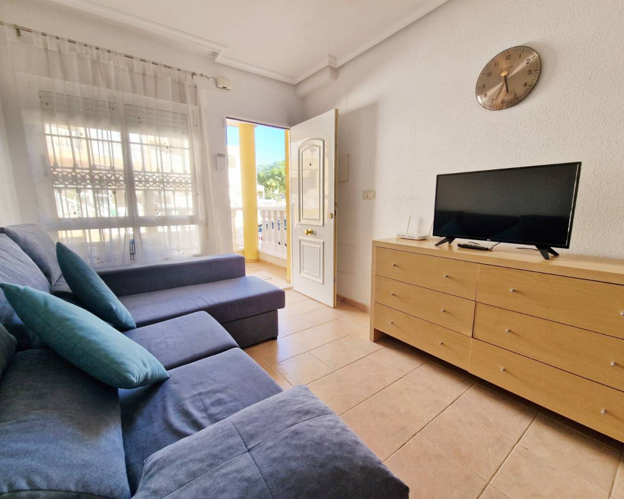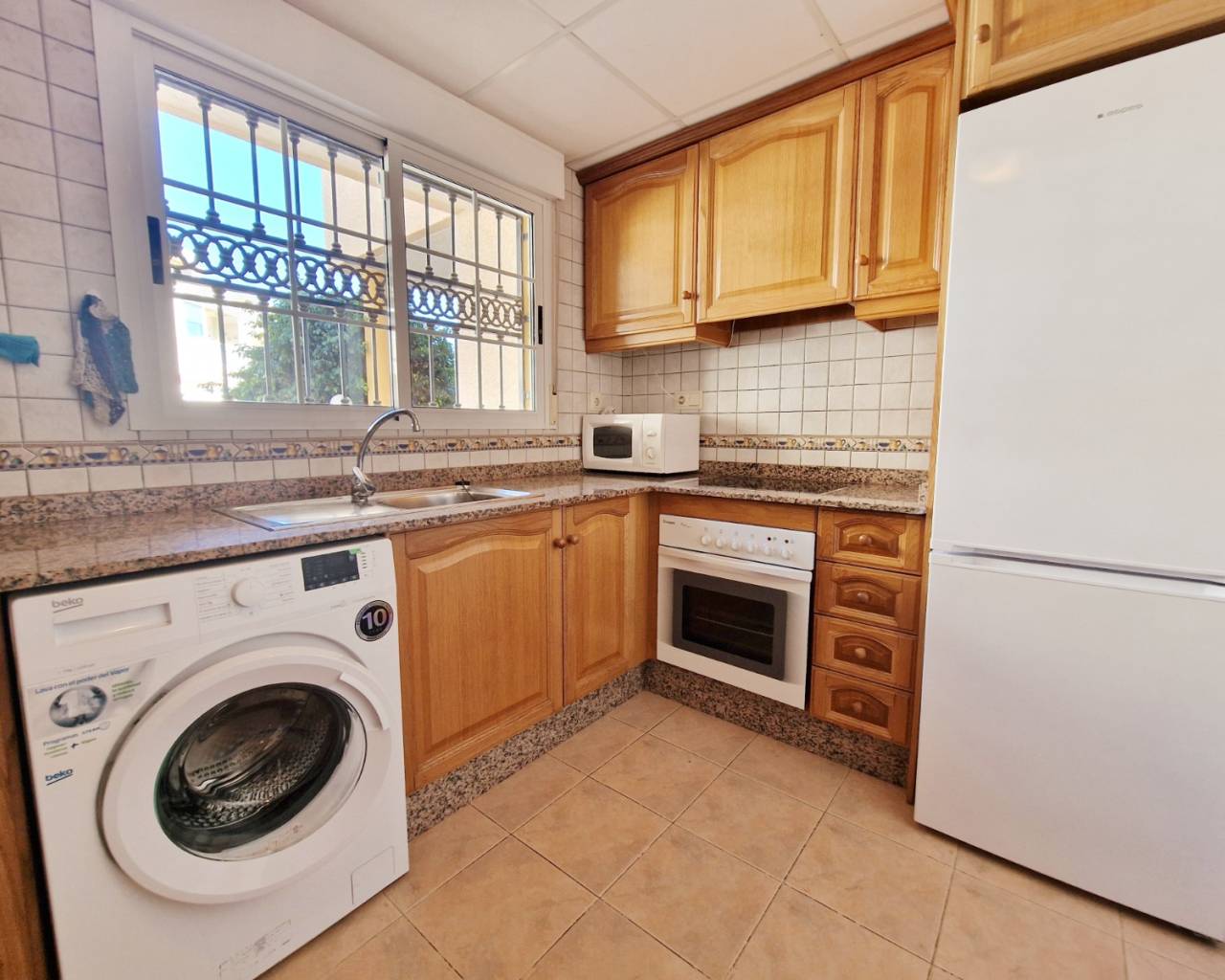 The townhouse is part of a well-maintained residential complex that includes a large communal swimming pool and sunbathing areas. It is an ideal spot to relax and make the most of the sunny climate on the Costa Blanca.