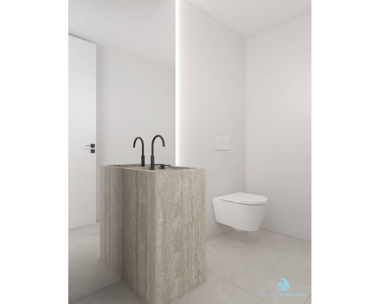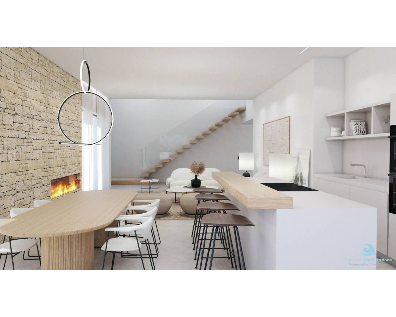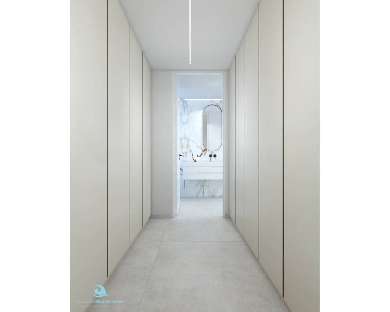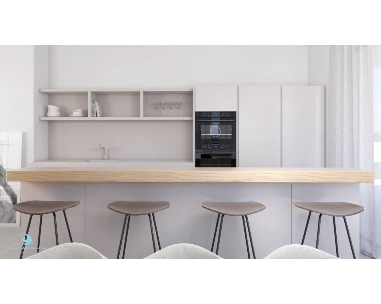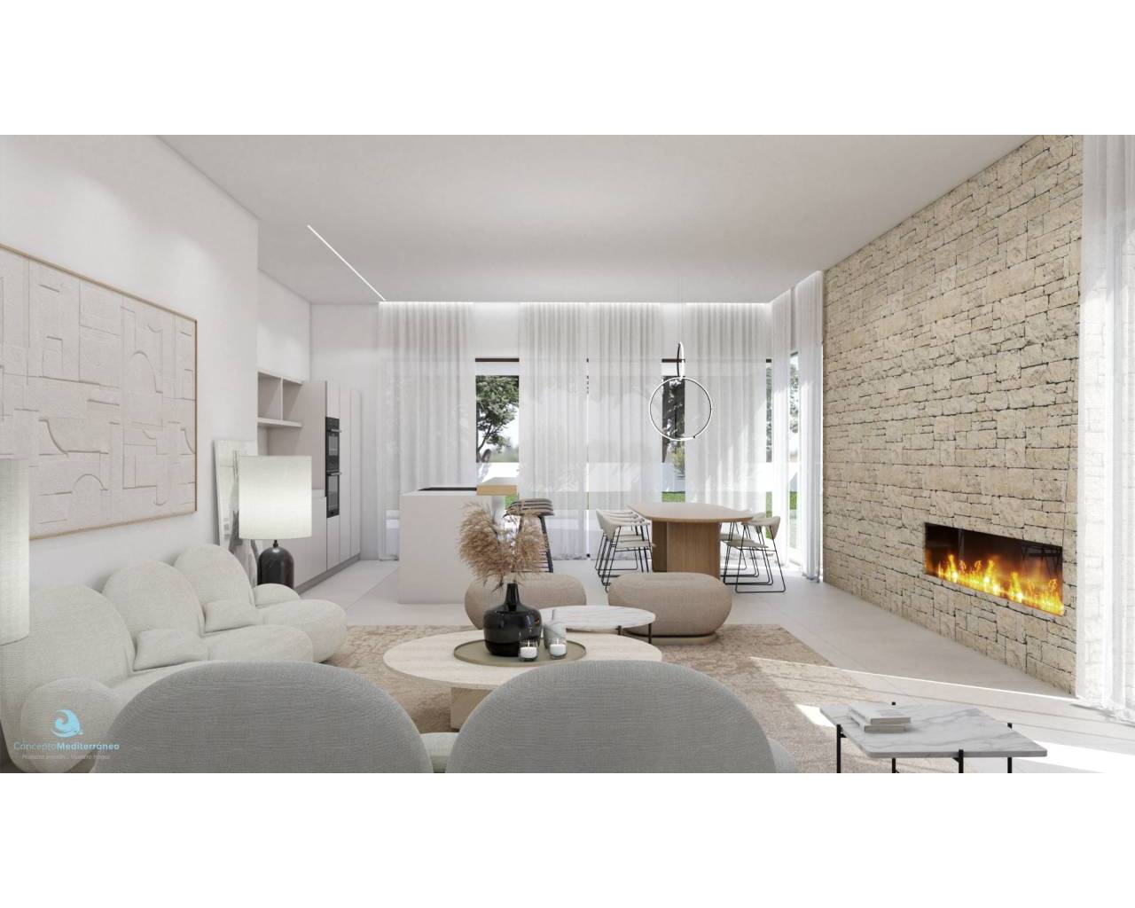Newly built villa for sale in Moraira, in Paichi, located in a very quiet residential area (street without traffic), 1.8 km from the urban center of Moraira, the sea and all kinds of services and 2.4 km from the exclusive El Portet Beach (Moraira). This beautiful luxury villa of modern design enjoys a lot of sun and beautiful open views. It is located on a flat plot of 890 m2 and has a total constructed area of 265 m2 distributed over 2 floors as follows: on the main floor we have the hall, a 32 m2 garage (for 2 vehicles), which accesses directly inside of the property, 3 large bedrooms (20 m2 + 14 m2 + 14 m2), all with bathroom en suite and large built-in wardrobes, 1 courtesy toilet, laundry room, fabulous kitchen-dining room (all open, with island, altogether 60 m2 ) and a 15 m2 porch that communicates with the outdoor terrace where we have a 50 m2 rectangular pool with an integrated relaxation area. The main floor is accessed through a spectacular floating design staircase. On the upper floor we have the spacious 23 m2 master bedroom with a large dressing room, en-suite bathroom and a large 25 m2 private terrace. This avant-garde villa stands out for its attractive and studied design and for its finishes and qualities. It is equipped with underfloor heating and ducted air conditioning (aerothermal system, high efficiency, minimum consumption), Technal exterior carpentry (Lumeal GA) + smart glass, (soleal Fy) + automatic blinds, porcelain floors, exclusive tiles, exclusive designer kitchen by Bulthaup, fully equipped with high-end appliances, glass railings without profiles, designer fireplace, Led lighting... In addition, it has a large outdoor parking area for several vehicles. The garden is very beautiful and in a Mediterranean style, with several different spaces and with automatic irrigation (low maintenance) and personalized exterior lighting.