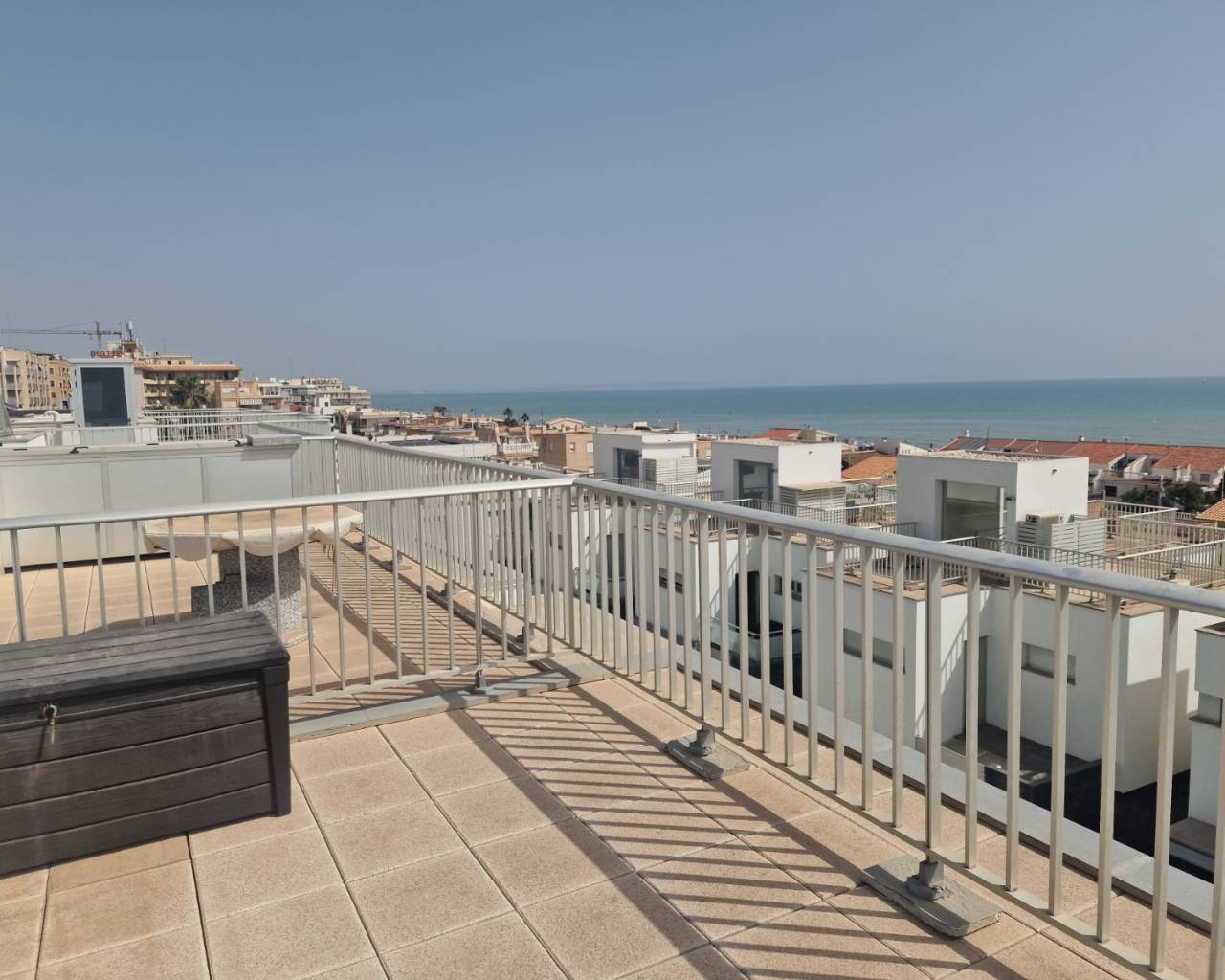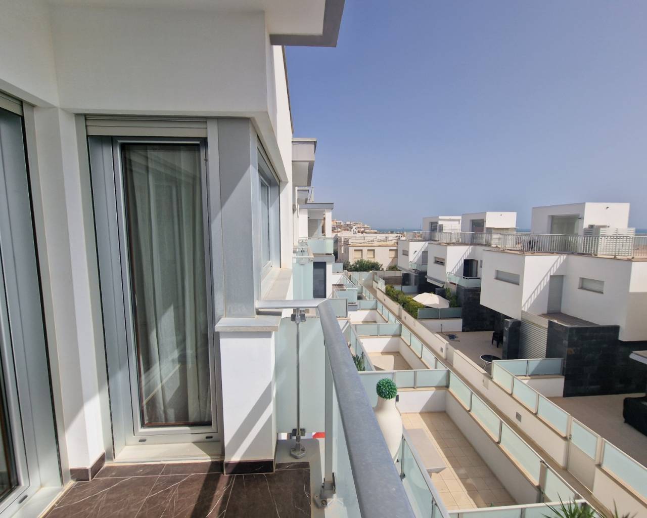 With approximately 200 m² of living space distributed across three levels, the residence features four bedrooms and four bathrooms, a private solarium with sea views, and a secure underground garage with space for two cars plus additional storage. Properties of this standard so close to the sea are in high demand, making this an exceptional opportunity on the Costa Blanca South.