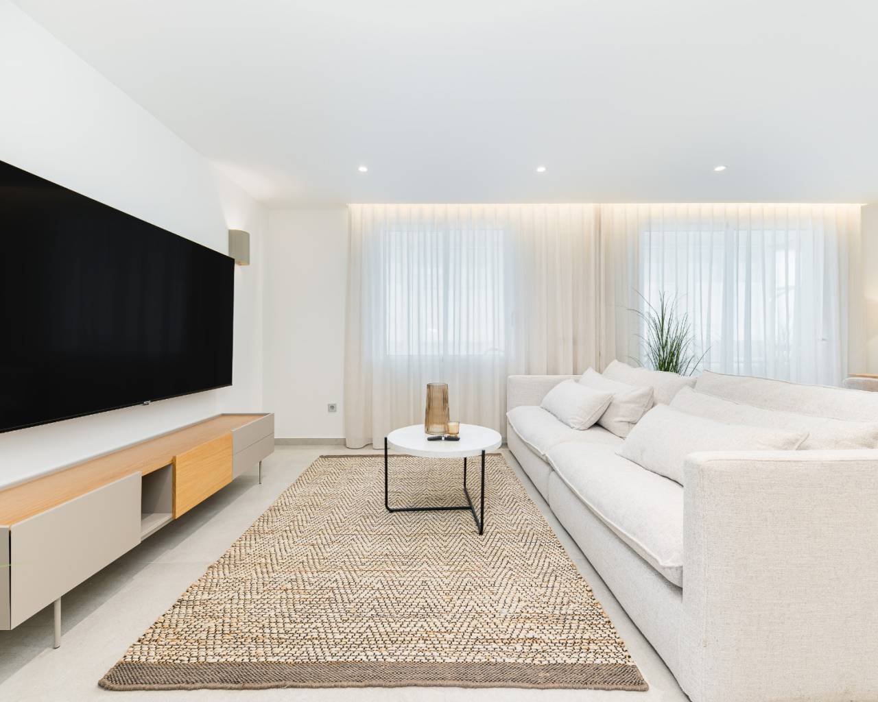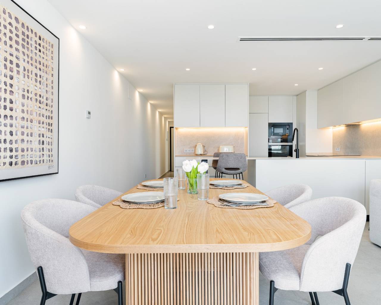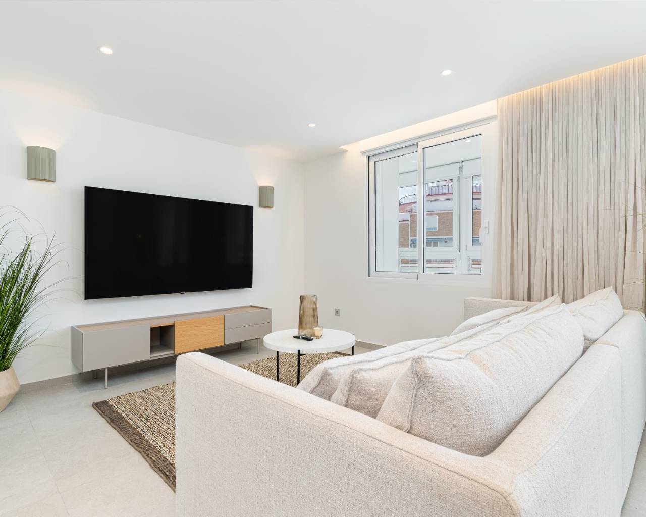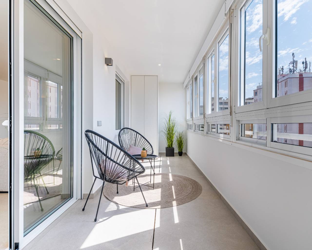 Discover the privilege of living in one of the most desirable areas of Torrevieja with this stunning luxury apartment, fully renovated in 2025. Located in the sought-after El Acequión – Los Náufragos neighborhood, it offers the perfect blend of prime location, contemporary design, and high energy efficiency. Only a few steps from the golden sands of Acequión and Los Náufragos beaches, this property is ideal both as a permanent residence and as a holiday home by the sea. Property Features Surface area: 100 m² built (96 m² usable) — spacious and bright interiors. Bedrooms: 3 large bedrooms — designed for comfort and privacy. Bathrooms: 2 complete bathrooms — modern design with top-quality finishes. Garage: Private closed garage with direct access from the main street, a rare and valuable feature in this central area. Floor: 5th with elevator — offering clear views and easy access. Sea views: Enjoy breathtaking sunrises and sunsets from your own home. Orientation: Southeast — ensuring natural light throughout the year. Building age: 1980 — fully refurbished in 2025 to the highest standards. Premium Renovation and Equipment This property has been completely renovated with a focus on quality, efficiency, and comfort: Superior insulation: Soundproofing and thermal insulation in ceilings, floors, and walls for maximum comfort. Advanced climate system: Centralized air conditioning and hot water through aerothermal technology, reducing energy use by up to 70% compared to traditional systems. High-end carpentry: New premium windows and doors ensuring security and efficiency. Fully furnished: Modern furniture and premium Siemens appliances, ready to move in. The bright living room connects seamlessly with the fully equipped modern kitchen, while the elegant interior design creates a sophisticated yet cozy atmosphere. Location Surrounded by all essential services — supermarkets, restaurants, pharmacies, and public transport — this apartment offers the convenience of city living combined with the charm of a seaside retreat.