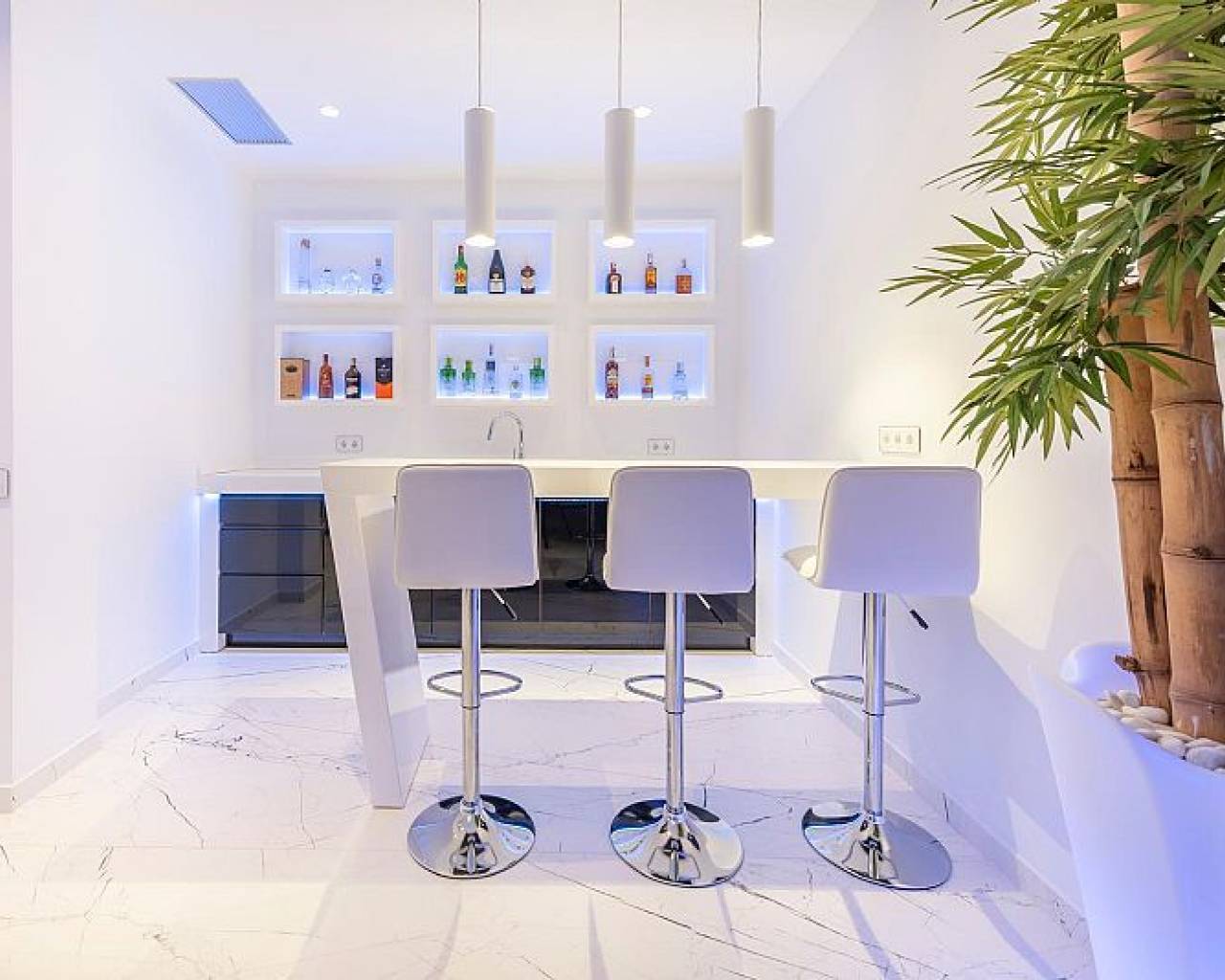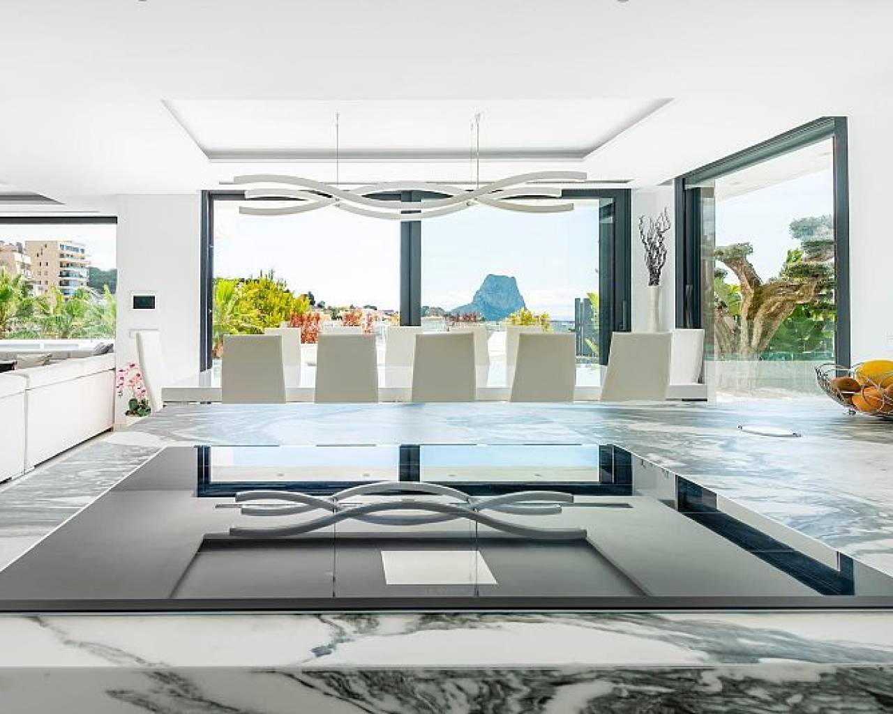 Located in one of the most exclusive areas of Calpe, this luxury villa represents the perfect combination of contemporary design, privileged location and high quality equipment. With a built area of more than 420 m² on a private plot of 671 m², this property offers an unrivalled lifestyle in the heart of the Costa Blanca. Its south orientation guarantees natural light throughout the day, while its proximity to the sea allows you to enjoy the Mediterranean just 800 metres away.OUTDOOR AREASThe villa's exteriors are designed to offer privacy, comfort and refined aesthetics. The private plot includes a large swimming pool surrounded by a perfectly manicured garden, barbecue area and several terraces that allow you to enjoy the Mediterranean climate in different atmospheres. It also has private parking and a closed garage, offering security and comfort. From the solarium you can contemplate the natural environment and the hills surrounding Calpe, while enjoying a moment of relaxation.INDOOR AREASThe interior of this property is distributed over two floors with ample and open spaces. It has four bedrooms and five bathrooms, all with high-end finishes. The open-plan, fully equipped kitchen connects to a spacious living-dining room, ideal for entertaining family or guests. Underfloor heating provides a comfortable temperature at any time of the year, while the integrated home automation system allows you to control the climate, lighting and blinds remotely. The villa also has a lift, storage room, laundry area and furniture included.CALPECalpe, on the Costa Blanca, is an emblematic tourist destination that combines its fine sandy beaches with its imposing Peñón de Ifach, a natural symbol that stands out on the horizon. Its crystal clear waters and mountainous surroundings offer a balance between nature and beach activities. Tourism in Calpe focuses on its beaches, such as Playa de la Fossa or Cala del Morelló, and hiking to the top of the Peñón de Ifach for panoramic views. The lifestyle in Calpe is dynamic and cosmopolitan. Residents and tourists enjoy an active lifestyle with a wide range of restaurants, bars and outdoor activities. The local gastronomy stands out for its fresh fish and seafood dishes, available in its numerous restaurants by the sea. Calpe offers a perfect combination of coastal tourism, nature and vibrant city life.