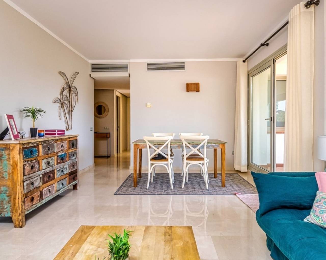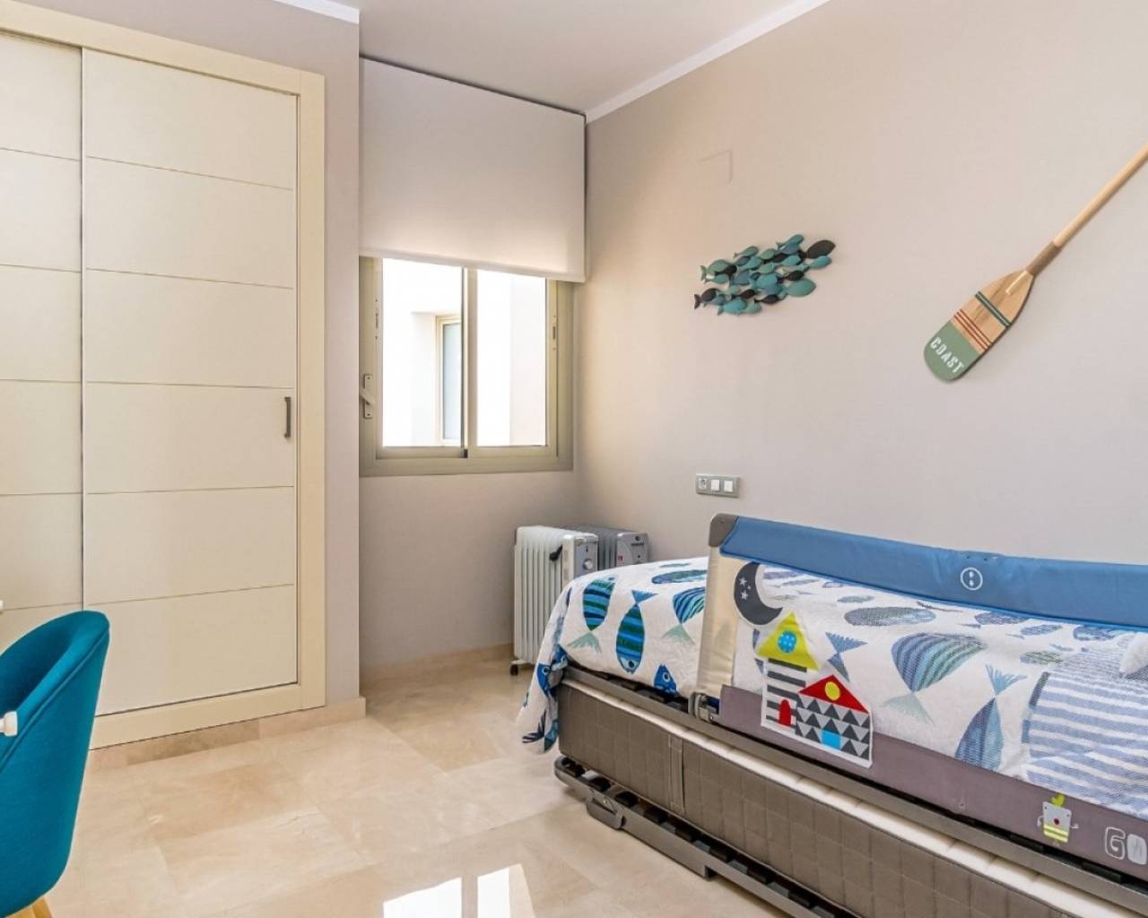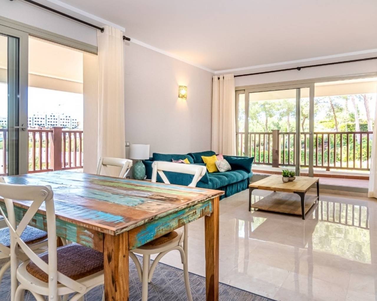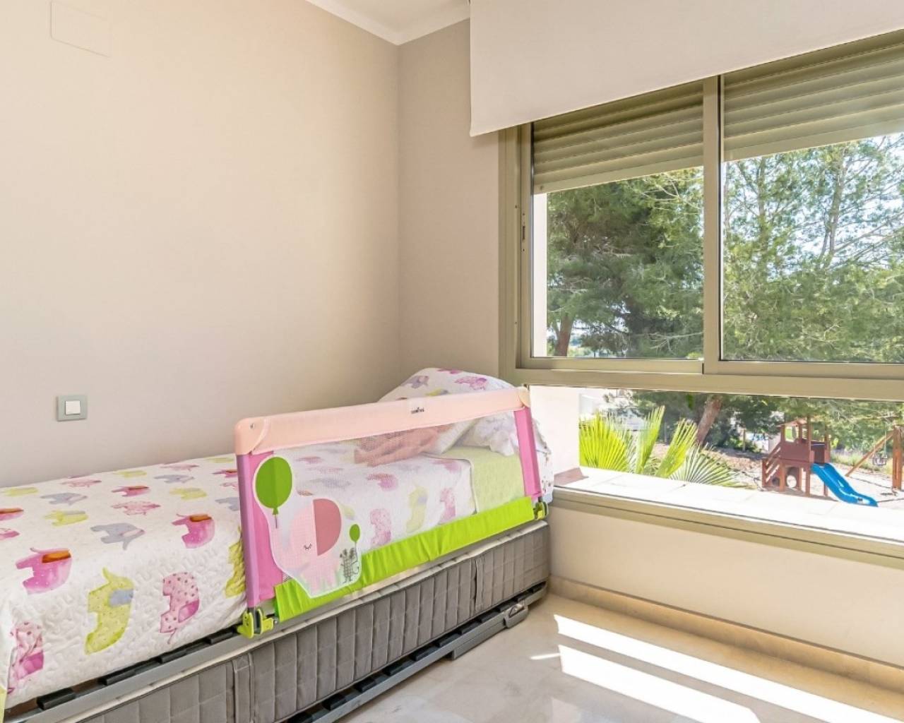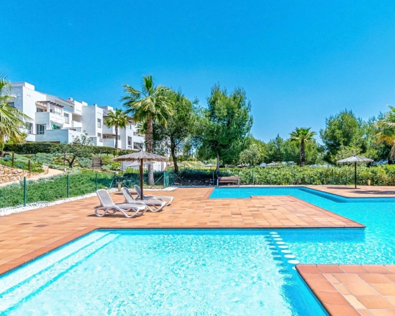 Located in the prestigious Encina Community at Las Colinas Golf & Country Club, this spacious first-floor corner apartment offers a perfect combination of comfort, style, and convenience. With 145 m² of bright living space and generous terraces, this home is designed for seamless indoor-outdoor living. Its optimal south, east, and west orientation ensures natural light all day long, making it ideal for both year-round living and holidays. The apartment features 3 bedrooms, 2 bathrooms, and a fully equipped kitchen, all finished to premium standards. Recently upgraded with a modern, energy-efficient air conditioning system, the property is move-in ready. Direct access from the private parking space makes daily living effortless—no stairs or lifts required. Situated within the most established community in Las Colinas, residents enjoy mature landscaping, quiet surroundings, 24h security, and two resort-style swimming pools. This property represents an excellent opportunity to own a high-quality home in one of Costa Blanca’s most sought-after golf resorts.