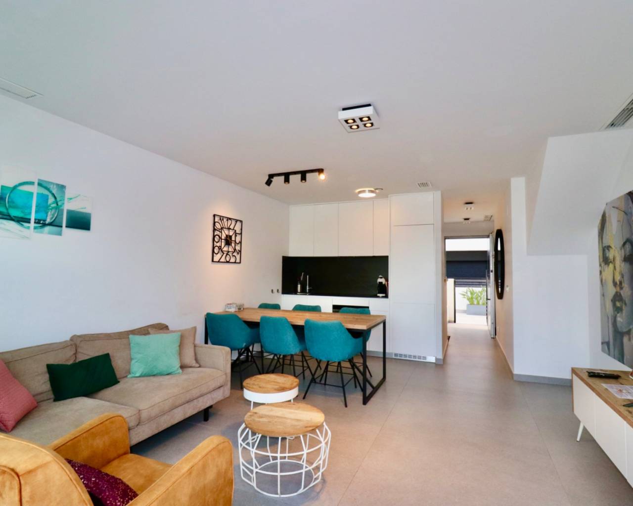 Living within walking distance of the beach with beautiful sea views in Guardamar This spacious duplex combines comfort, space, and a unique location on the Costa Blanca. The wide sandy beach of Guardamar is just 500 meters away. The sunny garden and living room offer stunning sea views. Layout and features Ground floor with bright, spacious living room and direct access to the garden with sea view Modern, fully equipped open kitchen Stylish bathroom Large windows for plenty of natural light and optimal views Basement with spacious hall that provides privacy between the living and sleeping areas Three comfortable bedrooms Two modern bathrooms Practical laundry room with energy-efficient boiler for the whole house Central air conditioning (hot/cold) for a pleasant indoor climate Private parking space under the building Beautifully landscaped communal garden Communal swimming pool just 30 metres away, on the same level as the entrance – plenty of privacy and no noise pollution from the pool Particulars Unique location with sea view Beach within walking distance Ready to move in and excellently maintained Suitable as a permanent home, holiday home or investment Sold fully furnished About Guardamar del Segura Guardamar del Segura is a charming coastal town on the southern Costa Blanca, known for its expansive sandy beaches, beautiful dunes, and lively promenade. The town combines authentic Spanish life with modern amenities and a relaxed Mediterranean atmosphere. Highlights of Guardamar: Beaches: No less than 11 kilometers of wide, golden sandy beaches, awarded Blue Flags for their quality and cleanliness. Dune Park: The Parque Alfonso XIII, a unique nature reserve with walking and cycling paths through pine trees, palm trees and dunes. Boulevard & Marina: Pleasant promenade with restaurants, terraces, and sea views. Modern marina with water sports facilities. Local market: Weekly market with fresh local produce, clothing and local specialties. Historic centre: Authentic Spanish atmosphere, charming squares and traditional tapas bars. Practical distances: Alicante-Elche Airport: approx. 30 minutes drive (35 km) Torrevieja: approx. 15 minutes drive (12 km) Orihuela Costa (La Zenia Boulevard): approx. 20 minutes drive (20 km) Elche: approx. 35 minutes drive (32 km) Golf courses: Various golf resorts within 10-15 minutes Laguna de La Mata Nature Reserve: approx. 10 minutes drive Guardamar is ideal for lovers of sun, sea, nature and Spanish life, with all amenities within easy reach and excellent connections to surrounding towns and the airport.