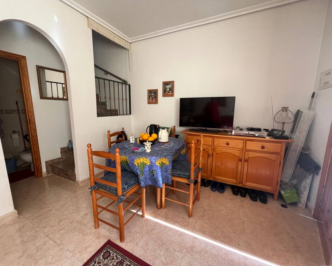 South-facing terraced house in Villamartin This delightful property is perfect for those seeking a peaceful yet central lifestyle, with amenities just a short stroll away. The home features two bedrooms, a bathroom and a guest-WC, making it ideal for families or couples. Step inside to find a bright open kitchen that seamlessly flows into the inviting lounge/diner, perfect for entertaining or relaxing after a long day. Enjoy the comfort of air conditioning, ensuring a pleasant atmosphere year-round. The property comes fully furnished, allowing you to move in and start enjoying your new space immediately. Outside, the terrace and solarium offer fantastic spots to soak up the sun or host gatherings with friends and family. The garden provides additional outdoor space to unwind and enjoy the beautiful surroundings. With built-in wardrobes and a storage room, there’s plenty of space for all your belongings. This well-maintained property is ready for its new owners. Don’t miss out on this incredible opportunity!