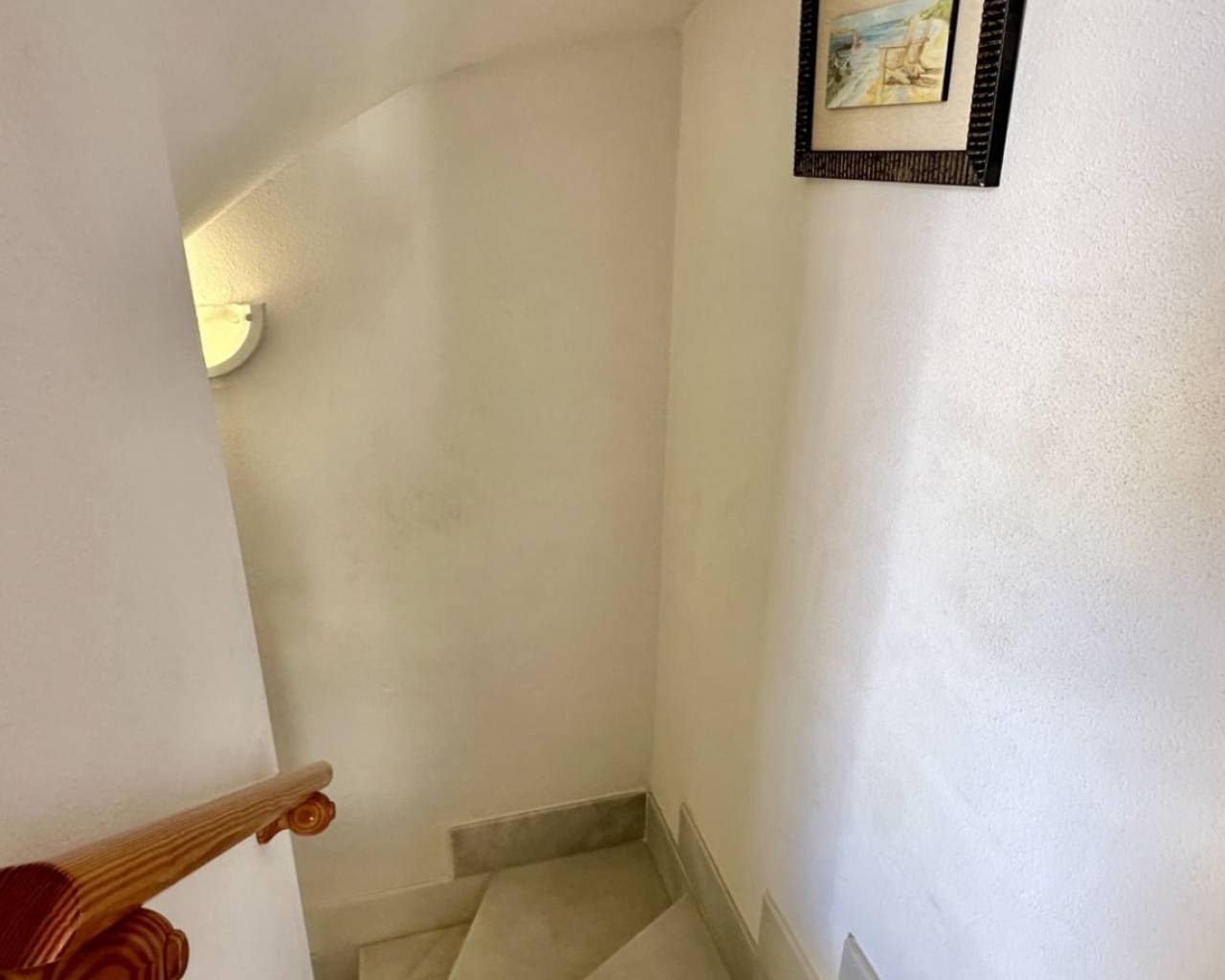 Discover this beautiful duplex located in the prestigious residential complex Zeniamar Phase V, Block 9 — a well-maintained and peaceful community with lush green areas and a large communal pool. This south-facing home is in excellent condition and offers a smart layout across three levels: Bright living and dining area with an integrated kitchen3 spacious bedrooms2 bathrooms + 1 guest toiletUtility room, gallery, and storage areaFront porch and multiple terracesImpressive solarium with both covered and open areas overlooking the poolPrivate 42 m² garden facing the pool Built area: 105 m²Orientation: South Located just steps from Zeniamar Shopping Centre, restaurants, supermarkets, and all everyday amenities — the ideal combination of comfort, convenience, and Mediterranean lifestyle. Extras: Air conditioning, heating pump, fitted wardrobes, community pool, and private garden.