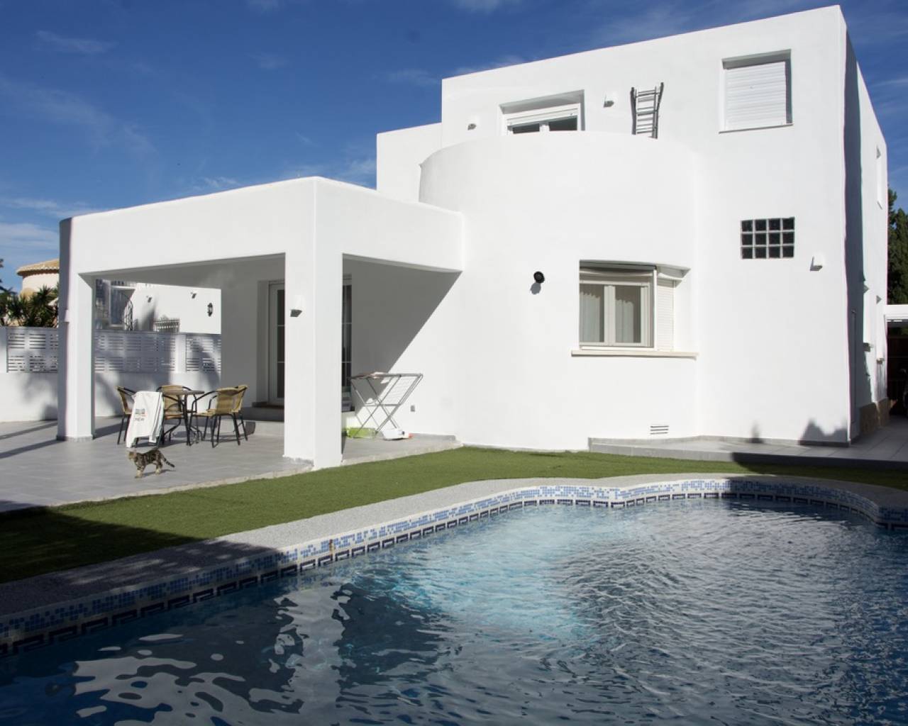 Discover this beautiful modern villa, completely renovated in 2021, ideal for year-round living or enjoying extended stays with family and friends. The property stands out for its brightness, south-facing orientation, and warm, sunny atmosphere, even during the winter months. Located in a very quiet and private area, just minutes from the center of Dénia, this home offers convenience and proximity to all amenities: supermarkets, schools, and leisure facilities. The main villa features a spacious open-plan living and dining area on the ground floor, along with a modern kitchen and two bedrooms with en-suite bathrooms. Upstairs, you'll find the master suite, with a private bathroom, dressing room, and a terrace with stunning views of Montgó mountain. The separate apartment, perfect for guests or holiday rentals, includes a living room with an open-plan kitchen, two bedrooms, and a bathroom, as well as direct access to the pool and a covered terrace equipped with a summer kitchen and barbecue. A home designed for enjoying Mediterranean living year-round, with sunshine, privacy, and all the comforts at your fingertips.