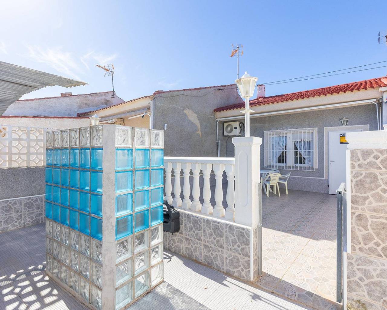 Attractive ground-floor townhouse, with no neighbours above, located in the quiet La Torreta III residential area, just 2,000 metres from the Habaneras shopping centre. The property has two bedrooms, a bathroom, a bright living room with a fully equipped open-plan kitchen and a practical utility room. Outside, it has a huge, very sunny private plot of around 28 m² with a carport, barbecue area and shower, perfect for enjoying the outdoors all year round. Its surroundings offer tranquillity and pleasant views of nature, creating an ideal environment for both year-round living and holiday stays. It is sold fully furnished and equipped, in good condition, and ready to move into. There are no community fees.