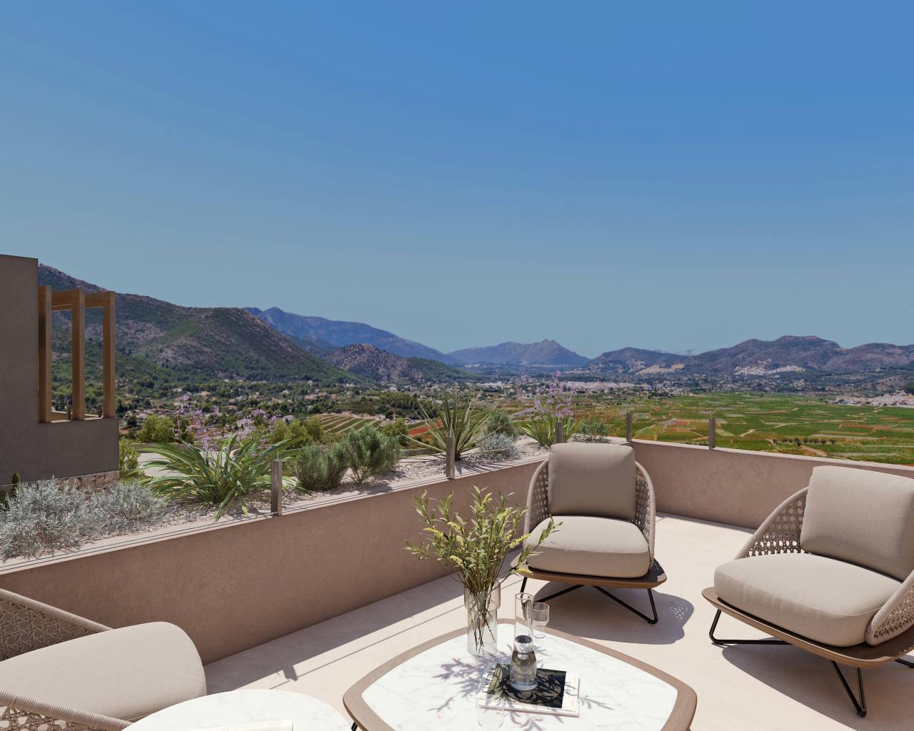 Discover Elements EcoResidences in Llíber, at the very heart of the Vall de Pop — a development that transcends architecture to offer a lifestyle in complete harmony with nature. Set amidst rolling mountains, lush vineyards, and villages steeped in tradition, this exclusive residential enclave reimagines Mediterranean living with a modern, sustainable approach, seamlessly blending with the breathtaking landscape. From its very foundations, the infrastructure has been designed using innovative and efficient techniques, aimed at creating a responsible and enduring environment. At Elements, every corner is crafted to enhance well-being and foster a sense of community: a social club with a restaurant, spa, and gym; community gardens that connect residents with the earth; outdoor sports facilities; and green spaces that invite you to enjoy fresh air and tranquillity. Within this setting, the Airen Collection emerges — the first phase of the project, featuring villas that perfectly blend authenticity, warmth, and modernity. The Airen A model is designed for those seeking ultimate comfort in everyday living. The main floor brings together all the essentials: a spacious living-dining area opening onto the terrace and pool, an open-plan designer kitchen, and a master bedroom with an en-suite bathroom. Upstairs, two additional bedrooms feature private terraces framing stunning valley views, ideal for family or guests. Outside, the experience is completed with a private pool, terraced gardens, and sun-soaked terraces that seamlessly integrate the home into the Mediterranean landscape. All of this is complemented by features that ensure both comfort and sustainability: aerothermal heating, underfloor heating, photovoltaic panels, a ventilation system with heat recovery, home automation, and an electric car charger. Airen A is more than a house — it is a home where every day is lived in harmony with nature, in an environment that invites you to savour the authentic.