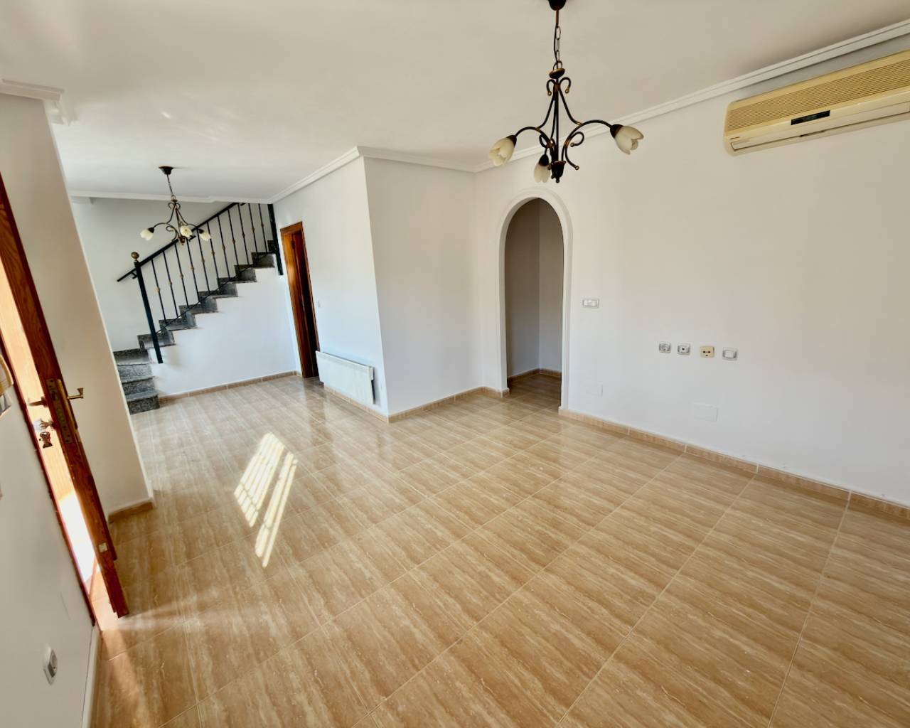 Lovely 3-Bedroom Villa with Private Solarium & Garden Views – Walk to Amenities This charming 3-bedroom, 2-bathroom villa offers comfortable living in a fantastic location, just a short walk from local amenities and only 15 minutes from the beach. Set on a 200m² plot, the property provides 120m² of interior space with a bright west-facing orientation, perfect for enjoying afternoon and evening sunshine. Inside, the home features a separate kitchen, built-in wardrobes, and air conditioning, ensuring comfort throughout the year. The villa does require renovation, which is reflected in the attractive price—making it a great opportunity for anyone looking to personalise or invest in a property with strong potential. Outside, you’ll find off-road parking, a private garden with pleasant views, and access to a beautiful communal swimming pool, ideal for relaxing or spending time with family. A private solarium offers additional outdoor space for sunbathing, dining, or entertaining. Perfectly positioned just 5 minutes from shops and amenities, 5 minutes from golf, and only 30 minutes from Alicante Airport, this villa is ideal for holidays, full-time living, or a renovation project with excellent value.