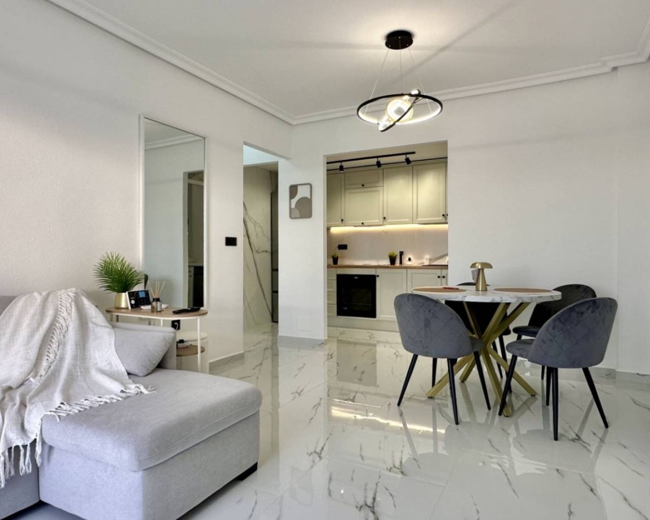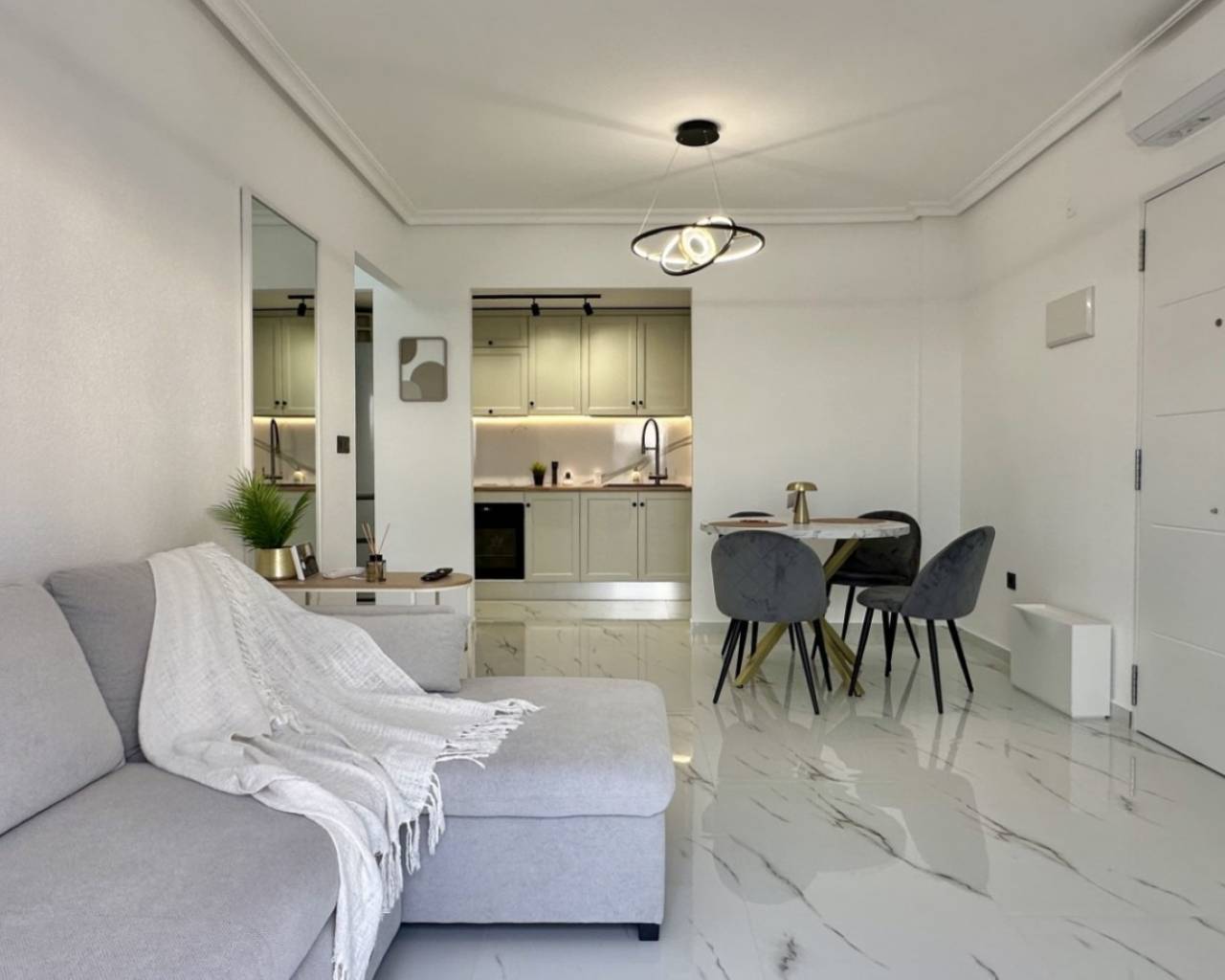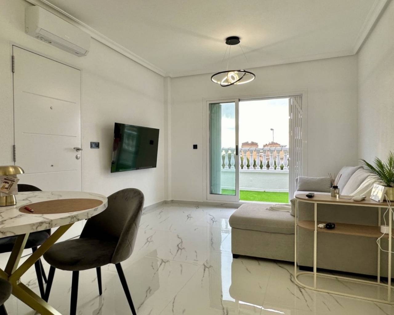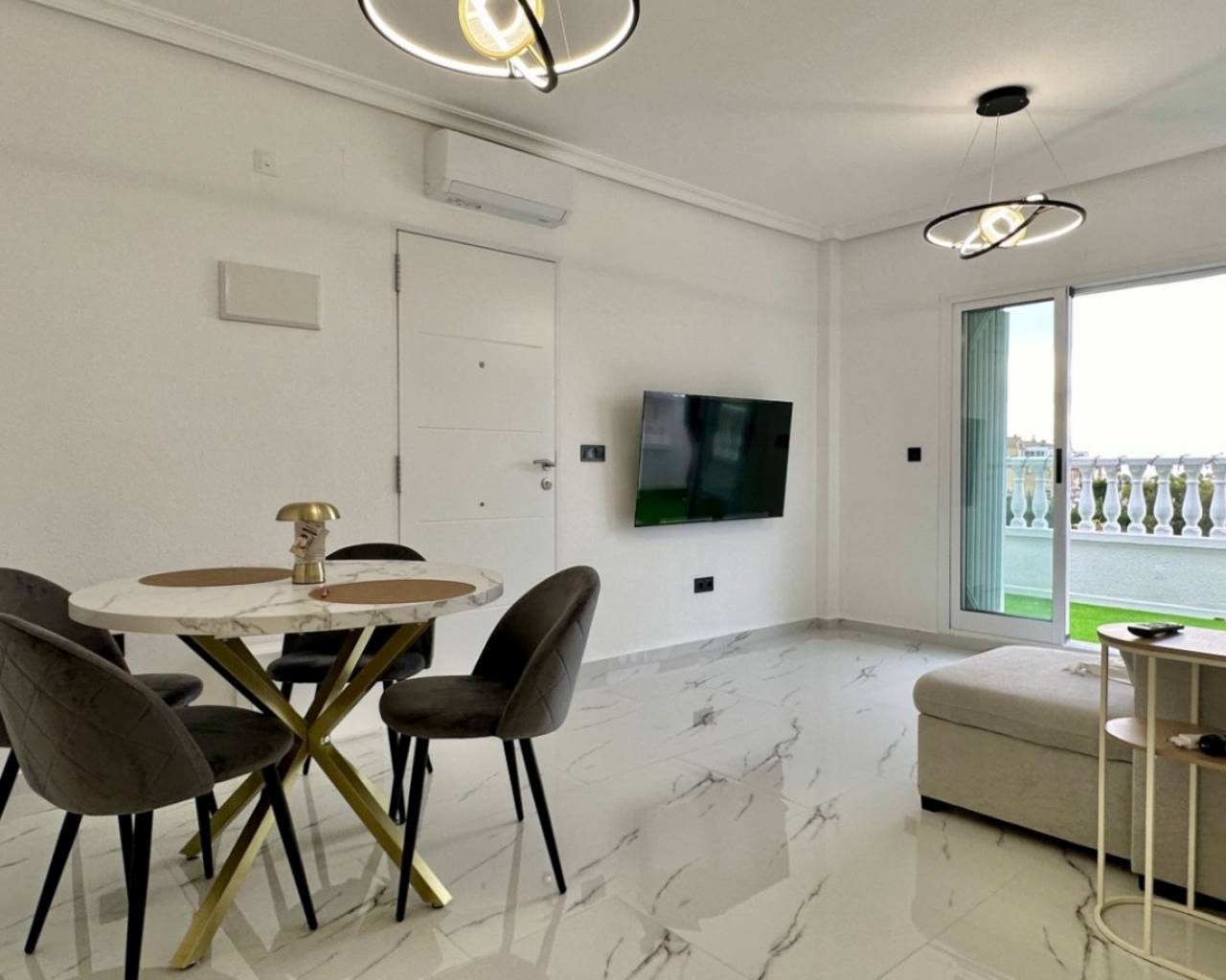 Discover this fully renovated and bright penthouse with exclusive interior design, located in the desirable Zeniamar 1 residential complex. Offering 52 m² of modern living space, the property features a southeast orientation and stunning direct sea views. Positioned on the first floor with a private entrance, it includes a storage room and access to a beautiful community with a swimming pool and green areas. Inside, the home consists of 1 bedroom, a contemporary bathroom with walk-in shower, and a cozy living space that flows to a 6.5 m² balcony. High–quality finishes include LG and Samsung appliances, inverter air conditioning, 55” AI smart TV, washer–dryer, underfloor heating, smoke detectors, and Wi-Fi video surveillance. Perfectly located within walking distance to landscaped parks, restaurants, paddle courts, mini-golf, and both municipal and Scandinavian schools. Beaches and Zenia Boulevard shopping center are just a 5-minute drive away—making this the ideal holiday home, residence, or rental investment.
