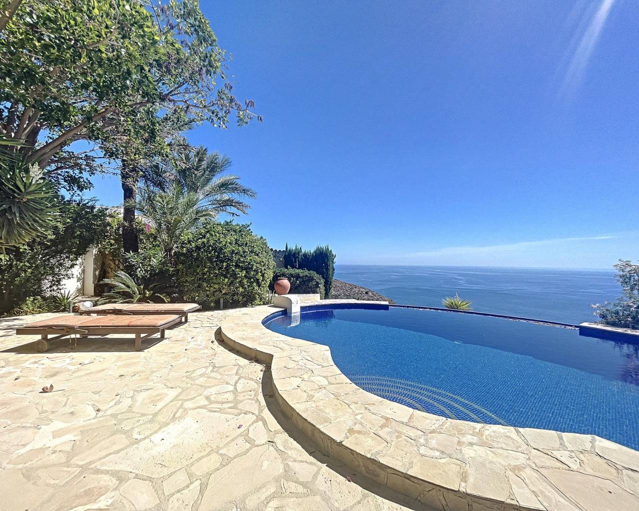 Refurbished Mediterranean style villa on the seafront with spectacular views located in the Fresnos residential area of Cumbre del Sol, Benitachell (between Jávea and Moraira).  The property has a total built area of 455 M2 (260 M2 living area, 160 m2 terraces and 35 M2 garage) on a plot of 889 M2. The villa has four double bedrooms, three bathrooms, a study, a dressing room, living room, separate lounge, two kitchens and several open and covered terraces, as well as a garage and storage rooms. The villa is built on two floors, on the ground floor we have two double bedrooms, kitchen, living dining room with fireplace and the exit to the covered terrace with access to the outside terrace with the private pool.   An internal staircase leads up to the first floor where we find the master bedroom with en-suite bathroom and a huge dressing room, as well as the exit to an outside terrace and the access to the guest apartement which is also accessible via a separate external staircase.   The guest flat consists of a double bedroom, bathroom and living room with kitchen from which we can access another outdoor terrace and access through it to the studio which is also accessible from the terrace of the master bedroom.  The whole villa is surrounded by a beautiful garden and the plot borders a green area overlooking the cliffs of Cumbre del Sol.  El Residencial Fresnos is a property development located in the urbanization Cumbre del Sol in Benitachell (Alicante). Most of the properties are oriented to the south or southeast and in some of them we have views of the sea. The common areas consist of a large lagoon pool, terraces, social club and garden. El Residencial Fresnos adjoins the Granadella Natural Park (Jávea) and the sports area with paddle tennis courts, tennis courts and a bar Distances to services: Less than 500 meters away is the Adelfas shopping center with the Pepe la sal supermarket, hairdresser, maintenance and rental service agency, cafeteria-bar, la cumbre restaurant and pharmacy. From 1 to 2 km; the access to Morach beach and the cove of Los tiestos, Lady Elisabeth international school and horse riding. From 4 to 6 km; Mercadona supermarket and Mas y Mas supermarket. From 9 to 12Km; The arenal beach of Jávea, the Moraira beach and the Portet de Moraira beach.