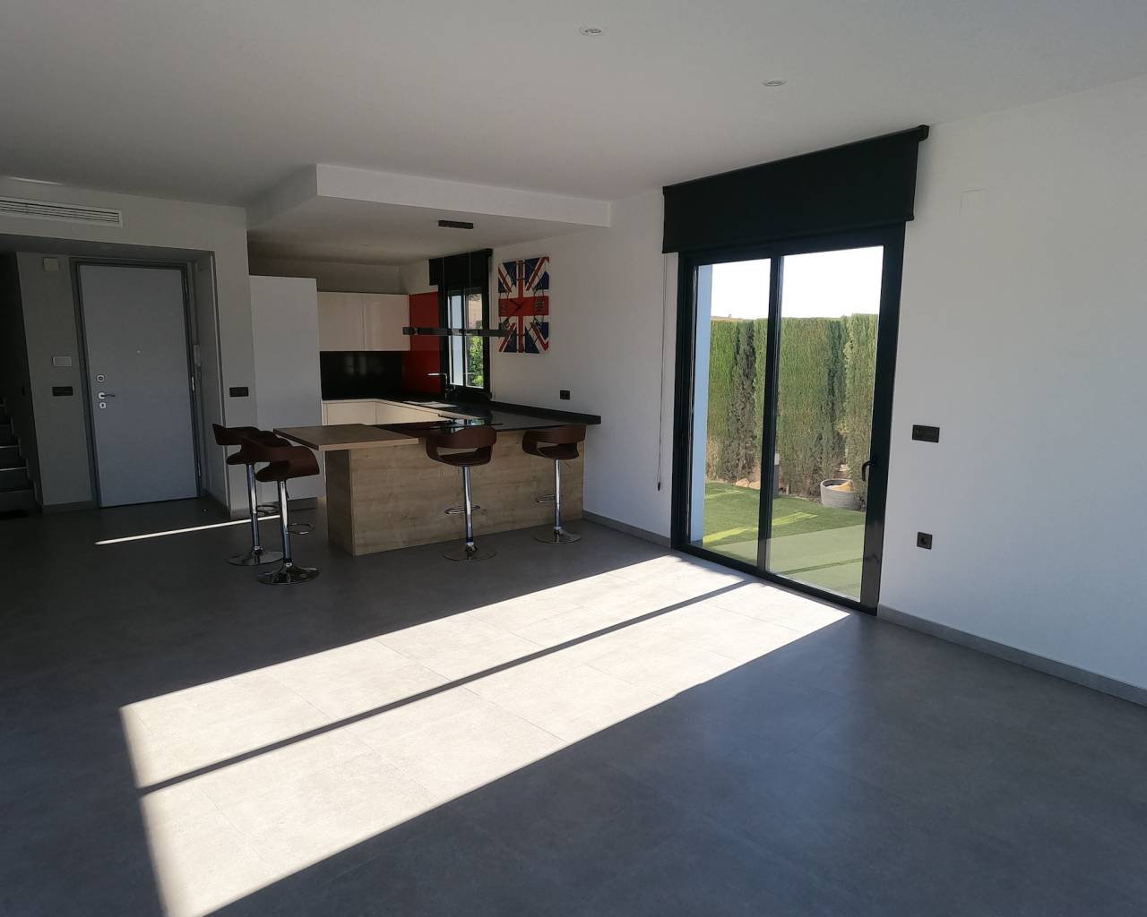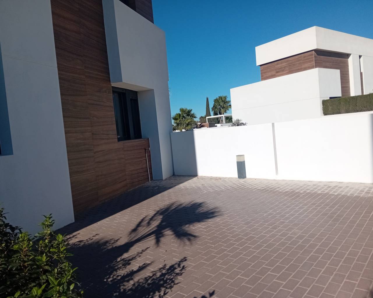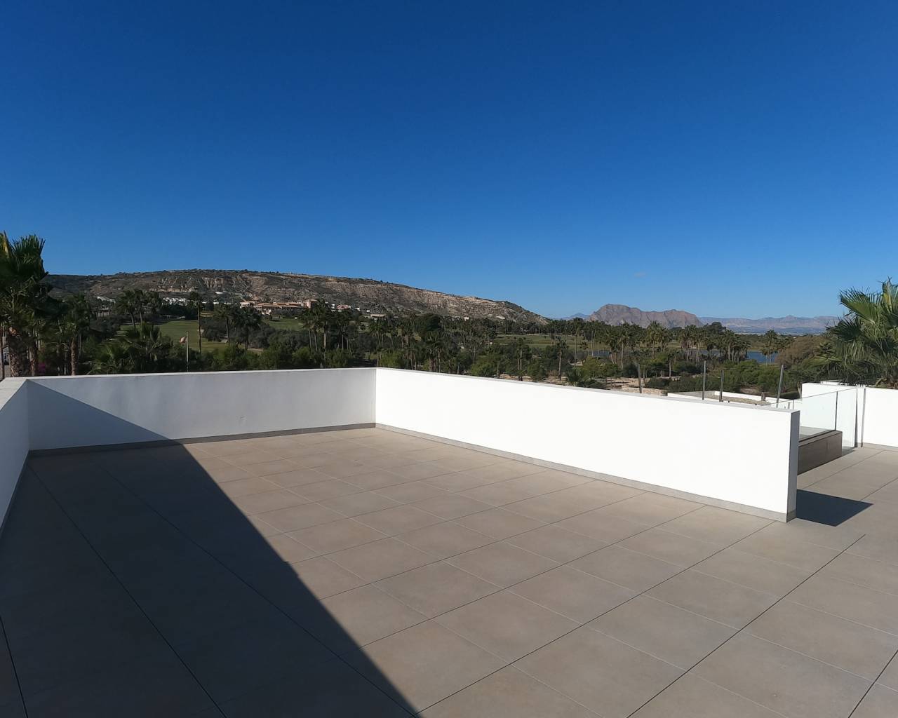 Stunning South-Facing Villa in prominent position to La Finca Golf with Exceptional Privacy, Infinity Pool & a 120m² Designer Underbuild. Positioned on one of the most privileged front line plots in all of La Finca Golf, this modern 4-bedroom villa combines architectural elegance, panoramic golf and mountain views, complete privacy, and a unique 120m² daylight-filled under build with spectacular pool windows — a feature rarely found anywhere in Spain. Just 30 minutes from Alicante Airport, this is the ideal base for year-round living, long golf weekends, or a premium holiday home. Property Overview 4 bedrooms 3 bathrooms + 1 guest WC 300 m² built area (including 120 m² under build) 440 m² private plot South-facing Front line golf position with uninterrupted views Infinity private pool with pool-window feature Large terraces + 65 m² solarium Parking area and dual access (front & back entrances) No community fees A Home Designed Around Light, Views and Privacy The villa enjoys one of the most private positions on La Finca — a rarity on the resort. No neighbouring properties overlook the pool, terraces or solarium, allowing for complete sunbathing privacy, even au naturel if desired. The elevated plot and open vistas provide a serene, exclusive atmosphere from sunrise to sunset. Main Living Area The ground floor is a bright, open-plan space framed by floor-to-ceiling glass, bringing views and sunlight into every corner. Spacious living room with panoramic views High ceilings for an airy architectural feel Direct access to the pool and terraces Seamless indoor–outdoor flow The Siemens-equipped kitchen includes: Siemens refrigerator Siemens dishwasher Dual Siemens ovens AEG induction hob with integrated extractor Abundant worktop and storage space Breakfast bar island Bedrooms and Bathrooms The villa offers four well-appointed bedrooms, each with large fitted wardrobes and beautiful natural light. Main level Three bedrooms, one with en-suite with bathtub Direct terrace and pool access from two bedrooms Additional family shower room Upper level Master suite with private bathroom Sliding doors to a spectacular wrap-around solarium Far-reaching views over the golf course and surrounding mountains 120 m² Underbuild — A Rare, Versatile Living Space This remarkable level is unlike anything else on La Finca: Flooded with natural light Show-stopping glass windows looking directly into the pool Guest WC + full laundry area (Siemens washing machine & Siemens dryer) This space can be transformed into: Cinema room Gym Games & bar lounge Additional living quarters Office + studio Wellness spa area The cool summer temperatures make it ideal for year-round use. Outdoor Living Infinity pool with underwater windows Large sun terraces with unbeatable views Beautiful low-maintenance landscaping South orientation for maximum sun exposure Elevated plot ensuring privacy 65 m² rooftop solarium for sunsets, yoga, dining, or a jacuzzi Additional Features Mitsubishi Electric air conditioning (efficient heating & cooling) Motion-detection alarm system High-speed fiber optic internet Electric shutters Front and rear access ideal for guests or deliveries Short walk to restaurants, bars, shops and services Access to La Finca’s spa, golf academy, padel and tennis club, and fitness facilities Lifestyle and Location La Finca Golf is one of Spain’s most highly regarded golf resorts, ranked among the Top 100 Golf Resorts in Europe. The villa is within minutes of: Renowned golf course with academy Tennis & padel club Luxury hotel & spa Gyms, hiking routes & mountain biking trails Excellent restaurants and entertainment Award-winning beaches (20 minutes) A rare combination of luxury, architecture, natural light, privacy, and an unbeatable front line setting. Viewing Highly Recommended Homes with this level of privacy, orientation and design are rarely available. Viewings are by appointment only.