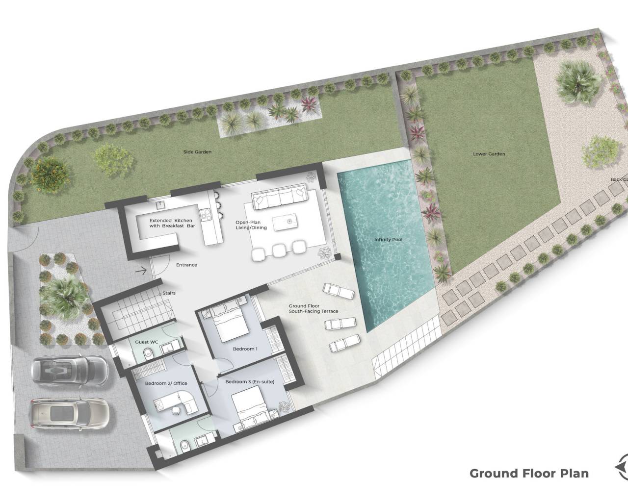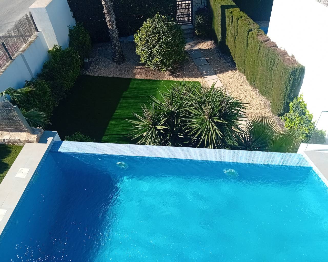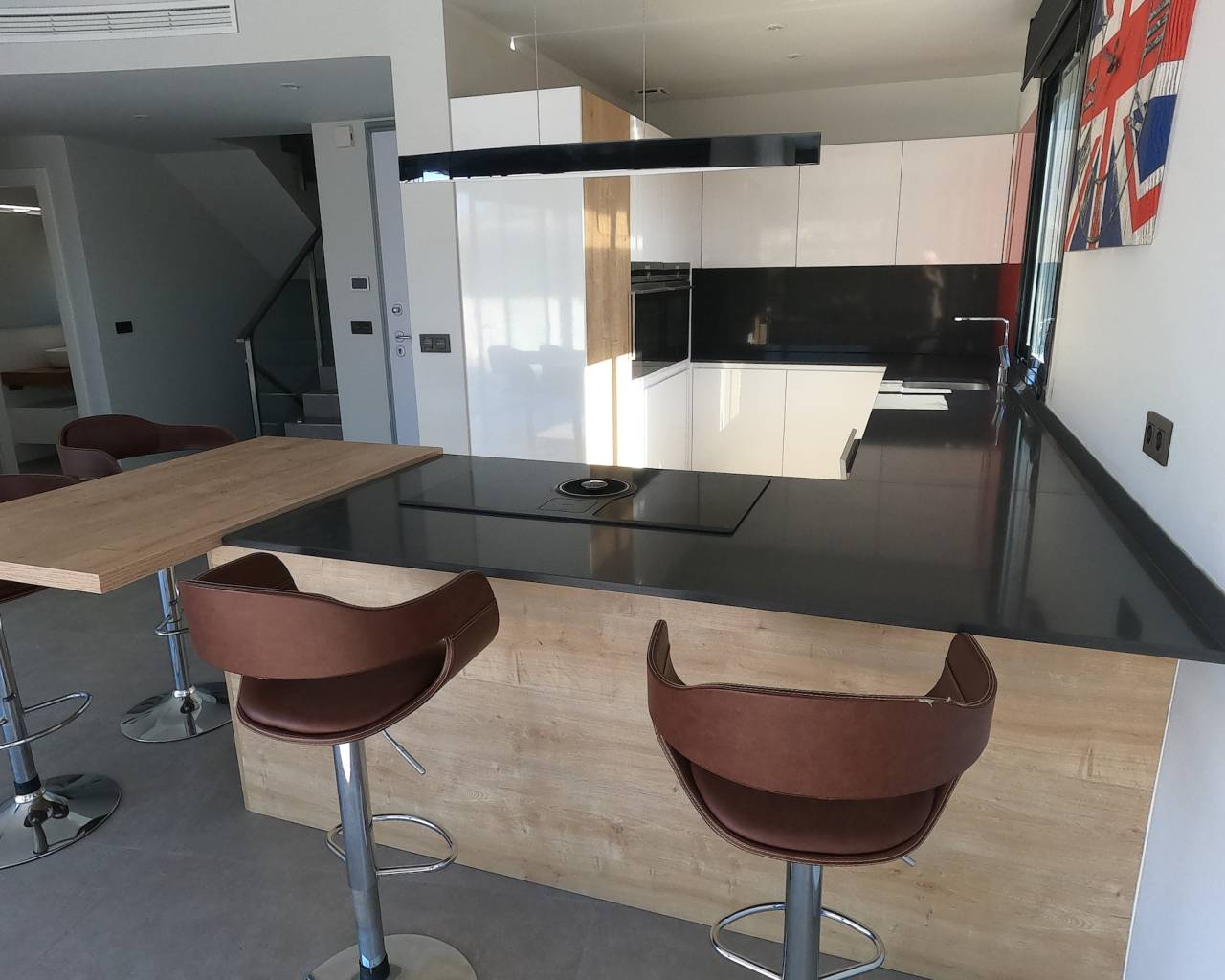 Stunning South-Facing Villa in prominent position to La Finca Golf with Exceptional Privacy, Infinity Pool & a 120m² Designer Underbuild. Positioned on one of the most privileged front line plots in all of La Finca Golf, this modern 4-bedroom villa combines architectural elegance, panoramic golf and mountain views, complete privacy, and a unique 120m² daylight-filled under build with spectacular pool windows — a feature rarely found anywhere in Spain. Just 30 minutes from Alicante Airport, this is the ideal base for year-round living, long golf weekends, or a premium holiday home. Property Overview 4 bedrooms 3 bathrooms + 1 guest WC 300 m² built area (including 120 m² under build) 440 m² private plot South-facing Front line golf position with uninterrupted views Infinity private pool with pool-window feature Large terraces + 65 m² solarium Parking area and dual access (front & back entrances) No community fees A Home Designed Around Light, Views and Privacy The villa enjoys one of the most private positions on La Finca — a rarity on the resort. No neighbouring properties overlook the pool, terraces or solarium, allowing for complete sunbathing privacy, even au naturel if desired. The elevated plot and open vistas provide a serene, exclusive atmosphere from sunrise to sunset. Main Living Area The ground floor is a bright, open-plan space framed by floor-to-ceiling glass, bringing views and sunlight into every corner. Spacious living room with panoramic views High ceilings for an airy architectural feel Direct access to the pool and terraces Seamless indoor–outdoor flow The Siemens-equipped kitchen includes: Siemens refrigerator Siemens dishwasher Dual Siemens ovens AEG induction hob with integrated extractor Abundant worktop and storage space Breakfast bar island Bedrooms and Bathrooms The villa offers four well-appointed bedrooms, each with large fitted wardrobes and beautiful natural light. Main level Three bedrooms, one with en-suite with bathtub Direct terrace and pool access from two bedrooms Additional family shower room Upper level Master suite with private bathroom Sliding doors to a spectacular wrap-around solarium Far-reaching views over the golf course and surrounding mountains 120 m² Underbuild — A Rare, Versatile Living Space This remarkable level is unlike anything else on La Finca: Flooded with natural light Show-stopping glass windows looking directly into the pool Guest WC + full laundry area (Siemens washing machine & Siemens dryer) This space can be transformed into: Cinema room Gym Games & bar lounge Additional living quarters Office + studio Wellness spa area The cool summer temperatures make it ideal for year-round use. Outdoor Living Infinity pool with underwater windows Large sun terraces with unbeatable views Beautiful low-maintenance landscaping South orientation for maximum sun exposure Elevated plot ensuring privacy 65 m² rooftop solarium for sunsets, yoga, dining, or a jacuzzi Additional Features Mitsubishi Electric air conditioning (efficient heating & cooling) Motion-detection alarm system High-speed fiber optic internet Electric shutters Front and rear access ideal for guests or deliveries Short walk to restaurants, bars, shops and services Access to La Finca’s spa, golf academy, padel and tennis club, and fitness facilities Lifestyle and Location La Finca Golf is one of Spain’s most highly regarded golf resorts, ranked among the Top 100 Golf Resorts in Europe. The villa is within minutes of: Renowned golf course with academy Tennis & padel club Luxury hotel & spa Gyms, hiking routes & mountain biking trails Excellent restaurants and entertainment Award-winning beaches (20 minutes) A rare combination of luxury, architecture, natural light, privacy, and an unbeatable front line setting. Viewing Highly Recommended Homes with this level of privacy, orientation and design are rarely available. Viewings are by appointment only.