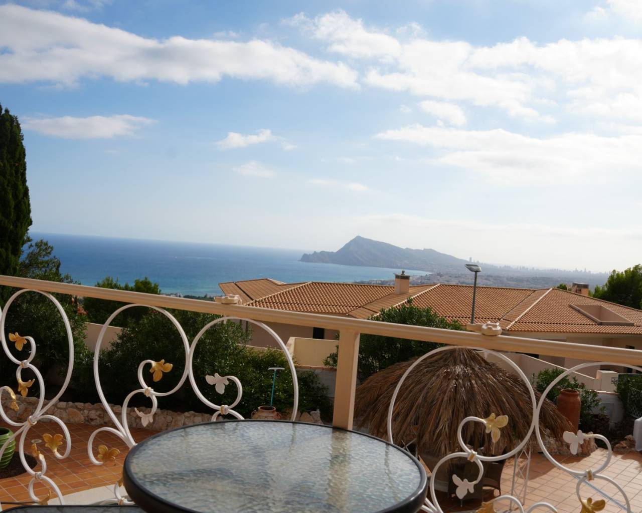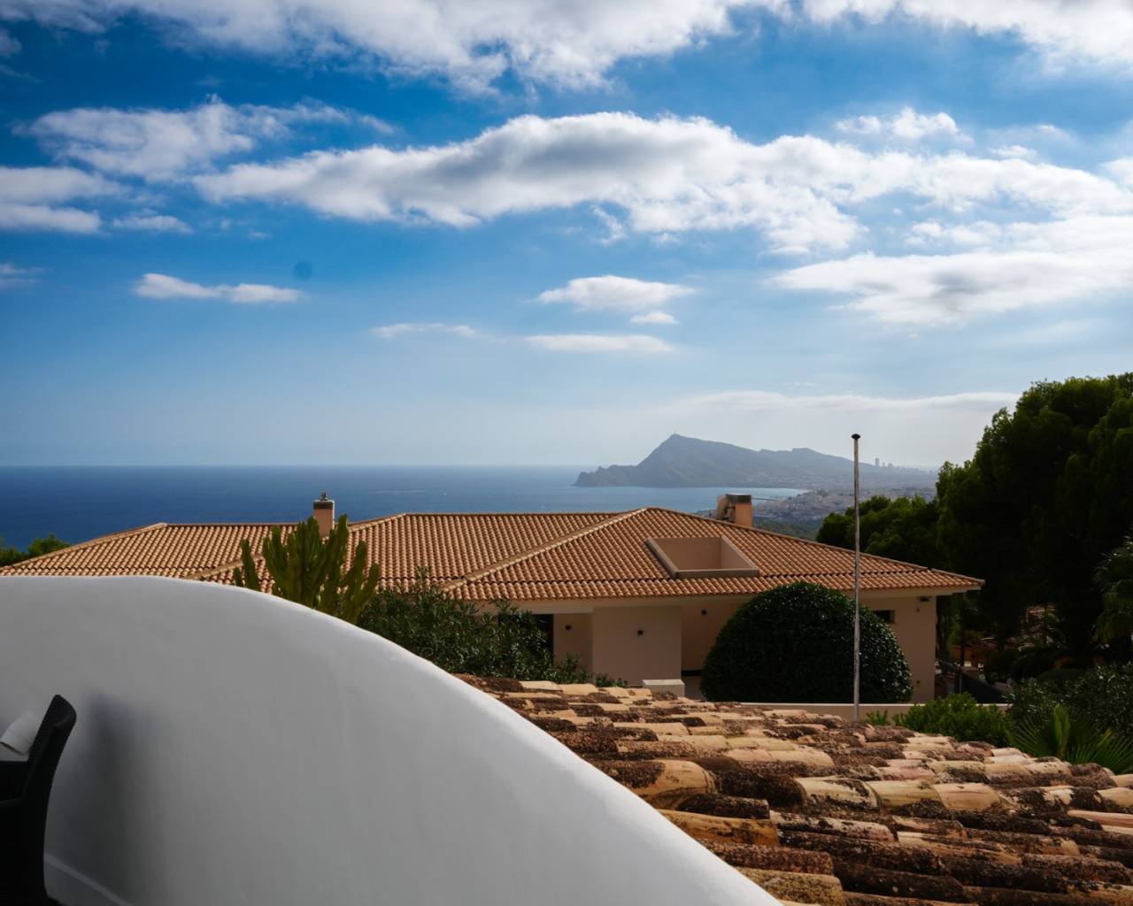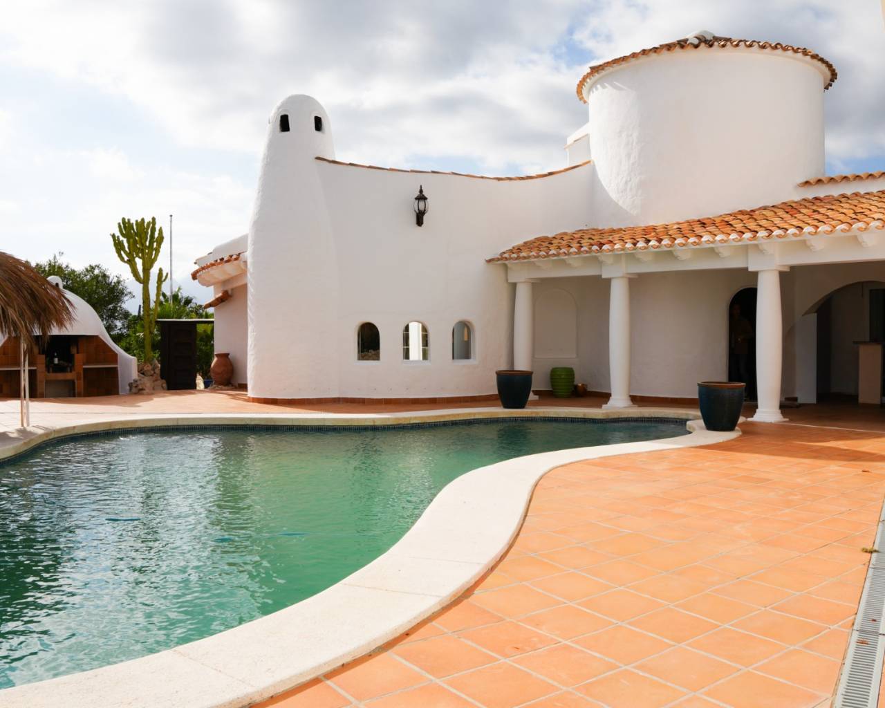 Located in the exclusive area of Altea la Vella, this Mediterranean-style villa combines charm, privacy, and comfort in a spectacular setting. The property sits on a spacious, private plot, surrounded by greenery and offering panoramic views of the sea and mountains. The villa boasts two separate pools, making it a unique and special residence. It also features a separate two-story apartment, with an open-plan bedroom on the ground floor and a living room with a kitchen and terrace upstairs, offering fantastic sea views. The main house also has two floors: the ground floor houses all the main rooms, while the upper floor is reserved for the master suite, with a private bathroom and a stunning terrace with spectacular views. Outside, the property offers spacious green areas and space for outdoor enjoyment, including a summer kitchen with a small poolside snack bar, ideal for gatherings with friends or family. This villa combines unique character, comfort, and a welcoming Mediterranean style, making it the perfect opportunity for those seeking an exclusive property in Altea la Vella.