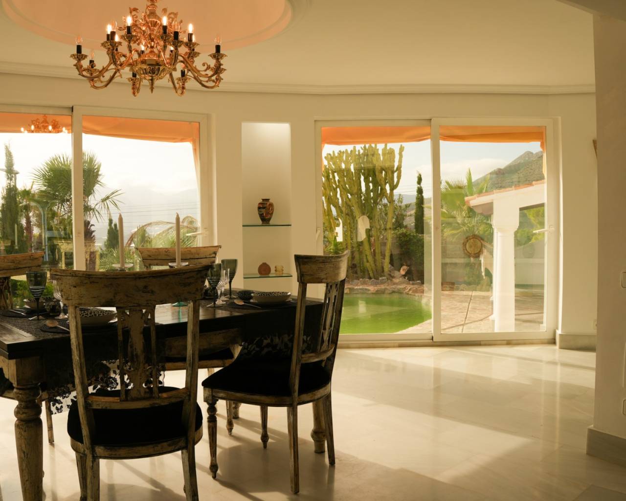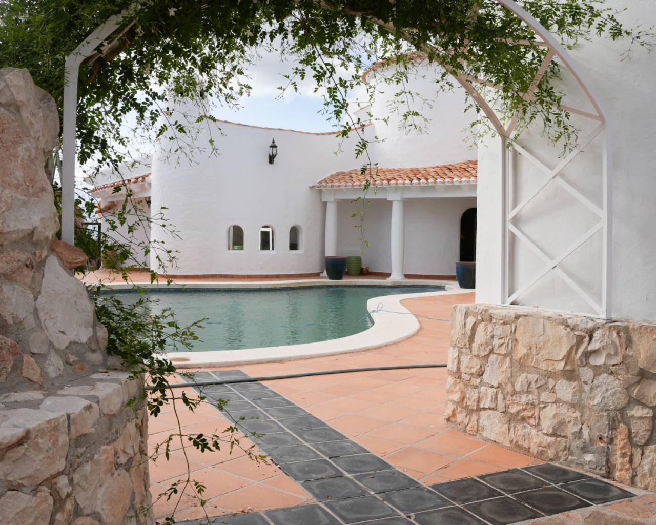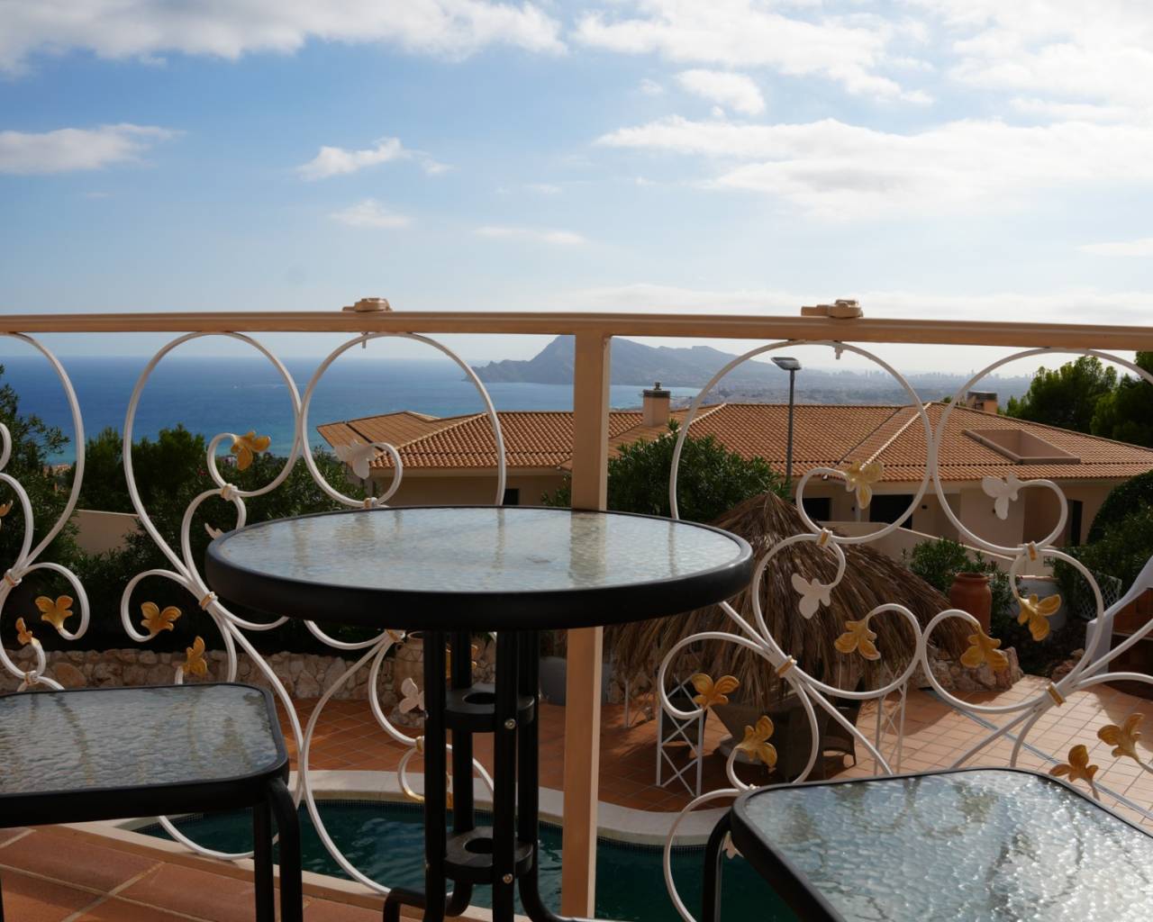Located in the exclusive area of Altea la Vella, this Mediterranean-style villa combines charm, privacy, and comfort in a spectacular setting. The property sits on a spacious, private plot, surrounded by greenery and offering panoramic views of the sea and mountains. The villa boasts two separate pools, making it a unique and special residence. It also features a separate two-story apartment, with an open-plan bedroom on the ground floor and a living room with a kitchen and terrace upstairs, offering fantastic sea views. The main house also has two floors: the ground floor houses all the main rooms, while the upper floor is reserved for the master suite, with a private bathroom and a stunning terrace with spectacular views. Outside, the property offers spacious green areas and space for outdoor enjoyment, including a summer kitchen with a small poolside snack bar, ideal for gatherings with friends or family. This villa combines unique character, comfort, and a welcoming Mediterranean style, making it the perfect opportunity for those seeking an exclusive property in Altea la Vella.