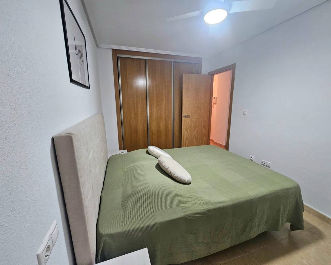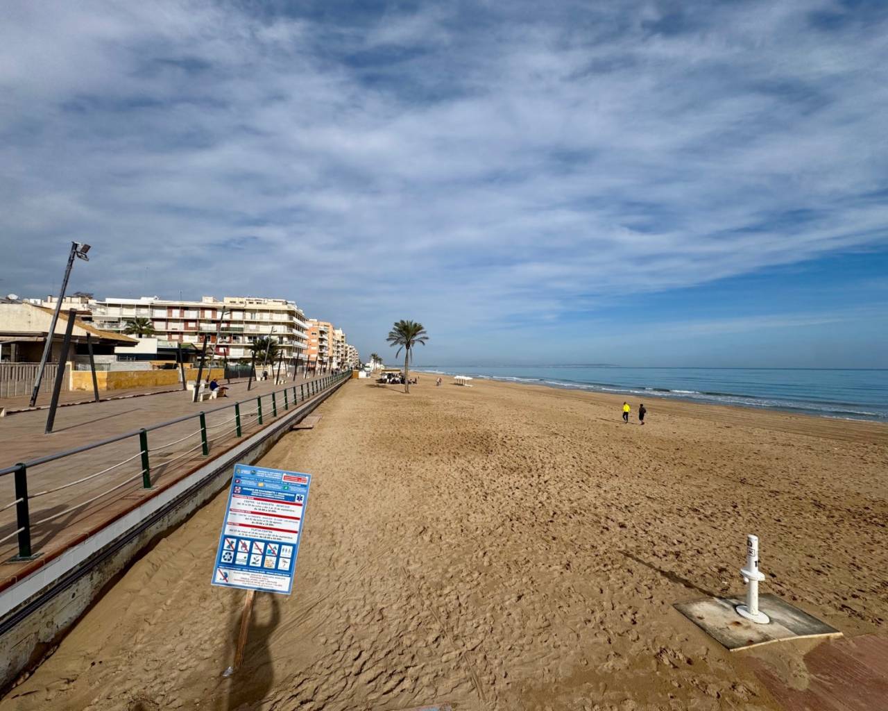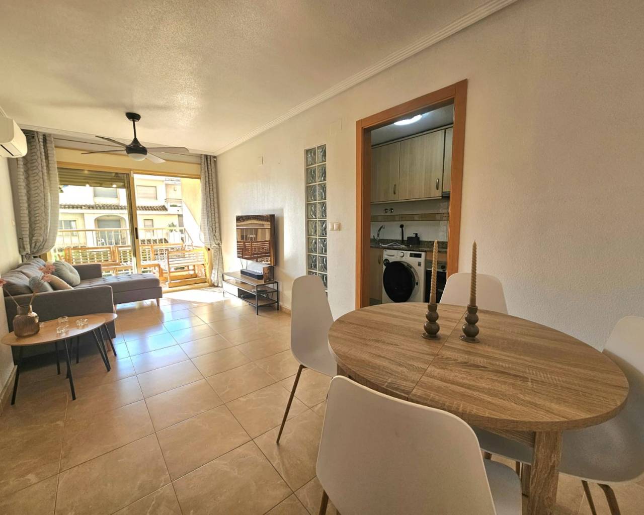 Would you like to live within walking distance of the most beautiful and extensive sandy beaches of the Costa Blanca? Then this south-facing apartment, located close to the beach and all amenities in Guardamar del Segura, is highly recommended. This well-maintained property features 2 bedrooms, 2 bathrooms, a fully equipped kitchen, a spacious balcony, and a patio. Additionally, the apartment includes a private parking space in the large underground garage. Ideal as a holiday home, for rental purposes, or permanent residence. The main entrance of the building is situated on a beautiful and lively square, with a supermarket, various shops, restaurants, bars, and other facilities in the immediate vicinity. The beach, the promenade, the beautiful Reina Sofía park, and the dune area are all within walking distance of this wonderful apartment. An absolute must-see for anyone wanting to enjoy the sun, sea, and beach in a vibrant environment, with all amenities close at hand. Schedule a viewing quickly with one of our professional real estate agents.