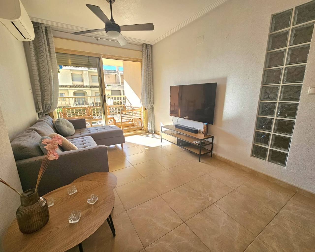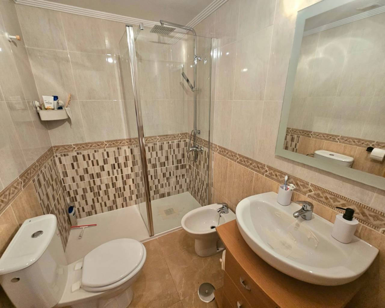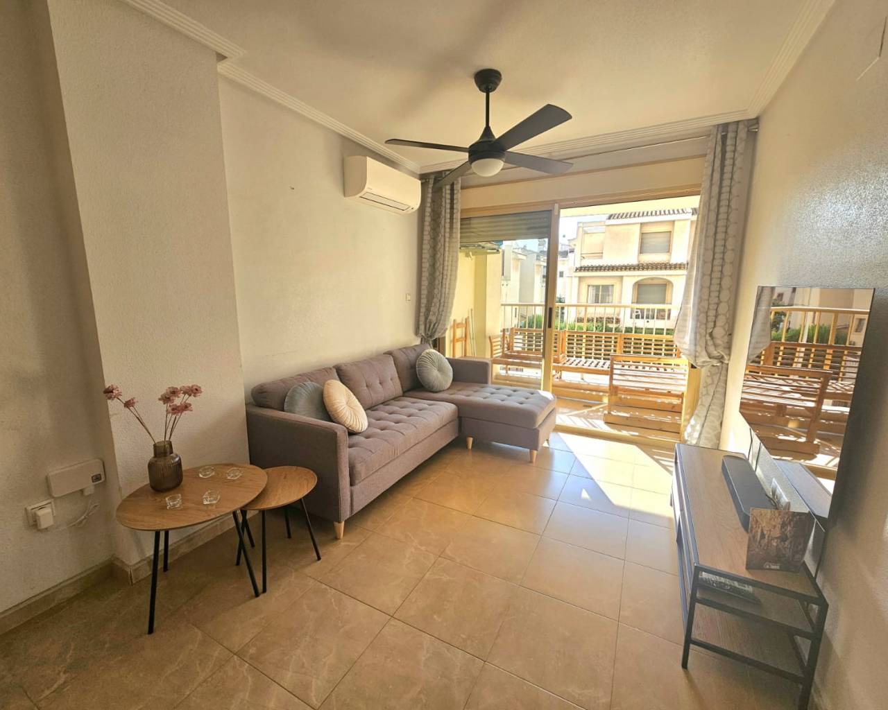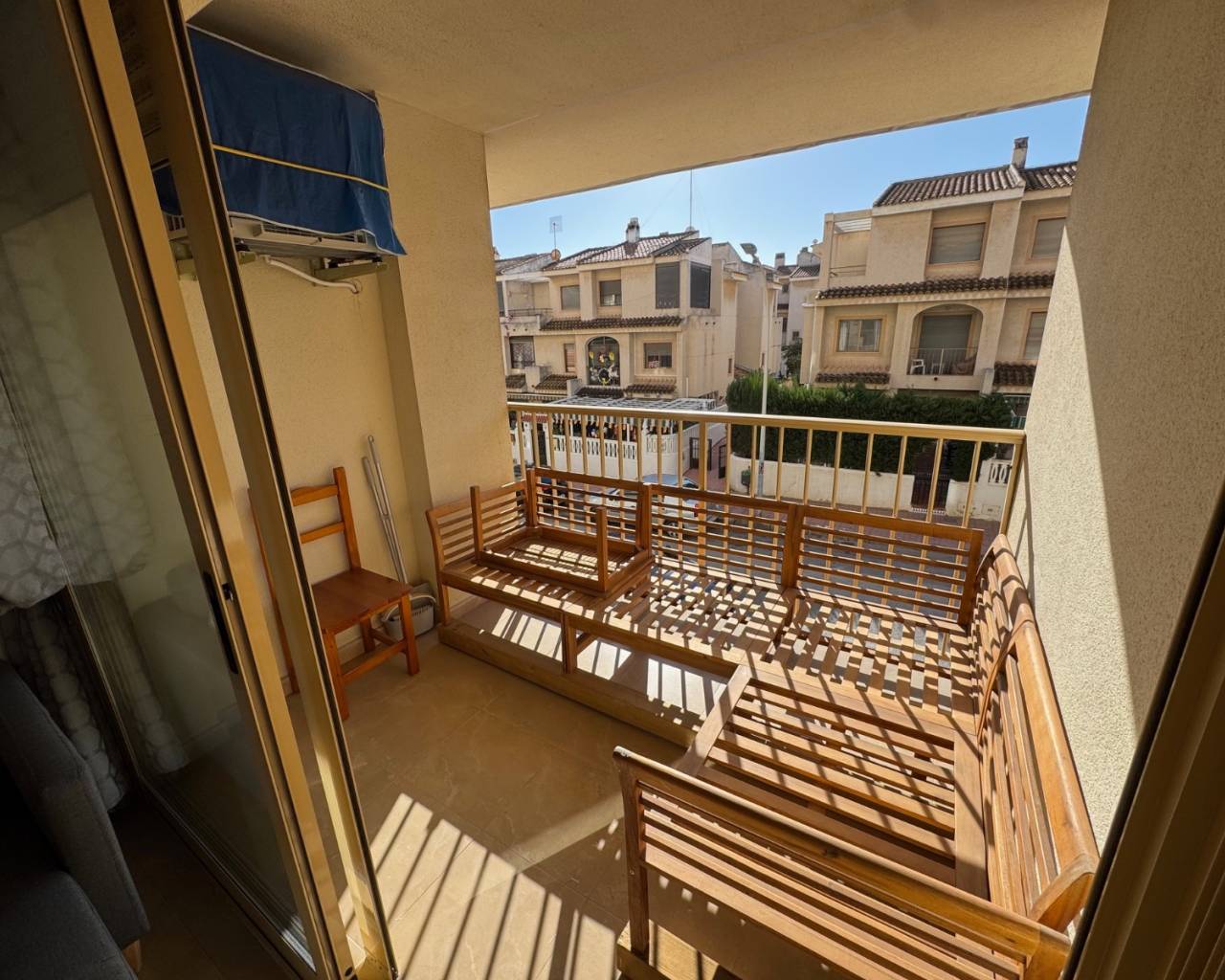 Would you like to live within walking distance of the most beautiful and extensive sandy beaches of the Costa Blanca? Then this south-facing apartment, located close to the beach and all amenities in Guardamar del Segura, is highly recommended. This well-maintained property features 2 bedrooms, 2 bathrooms, a fully equipped kitchen, a spacious balcony, and a patio. Additionally, the apartment includes a private parking space in the large underground garage. Ideal as a holiday home, for rental purposes, or permanent residence. The main entrance of the building is situated on a beautiful and lively square, with a supermarket, various shops, restaurants, bars, and other facilities in the immediate vicinity. The beach, the promenade, the beautiful Reina Sofía park, and the dune area are all within walking distance of this wonderful apartment. An absolute must-see for anyone wanting to enjoy the sun, sea, and beach in a vibrant environment, with all amenities close at hand. Schedule a viewing quickly with one of our professional real estate agents.