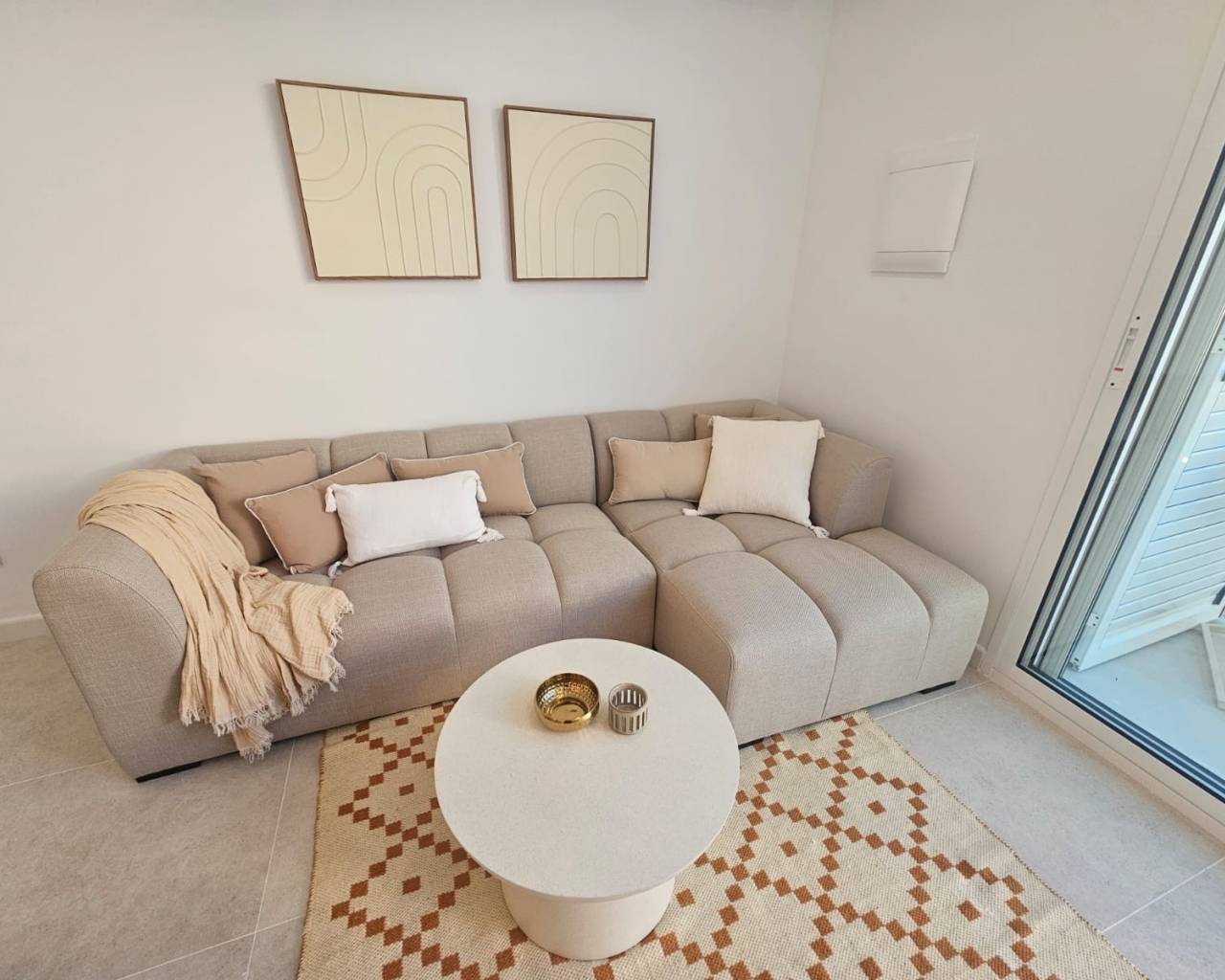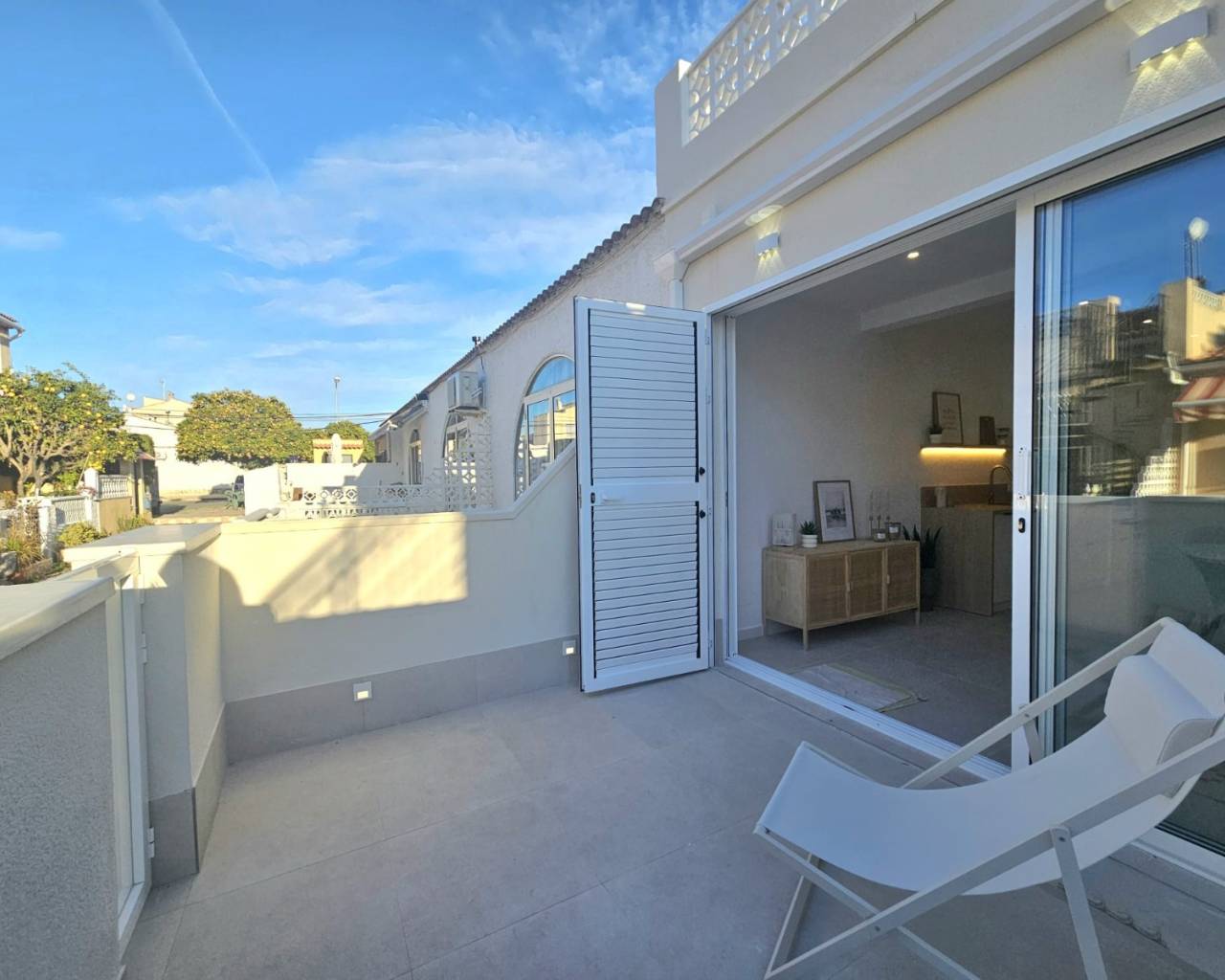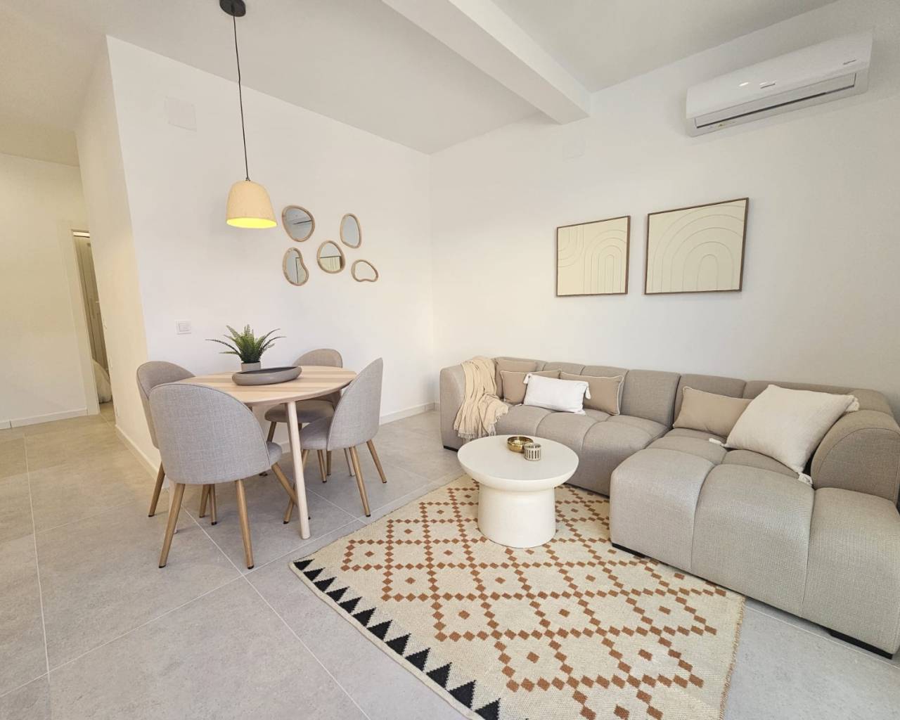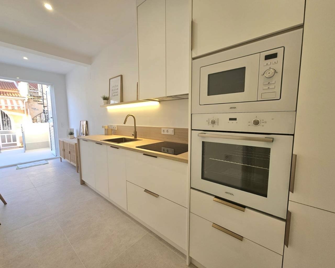 Charming ground floor bungalow, with no neighbors above, completely renovated and ready to move into. Originally it had 1 bedroom, but now it has 2 bedrooms: A spacious master bedroom with a large bed and wardrobe A second bedroom with a 90 cm bed and wardrobe The property has a fully equipped open-plan kitchen with new appliances, a bright living room, a laundry room, and a large terrace, ideal for enjoying the excellent climate all year round. It also has a sun terrace. Equipped with 2 hot/cold air conditioning units.Sold with all furniture and appliances, ready to move into from day one. Located just 5 km from the beach and close to restaurants, a pharmacy, and other amenities. A very cozy home, perfect as a primary residence, second home, or investment.