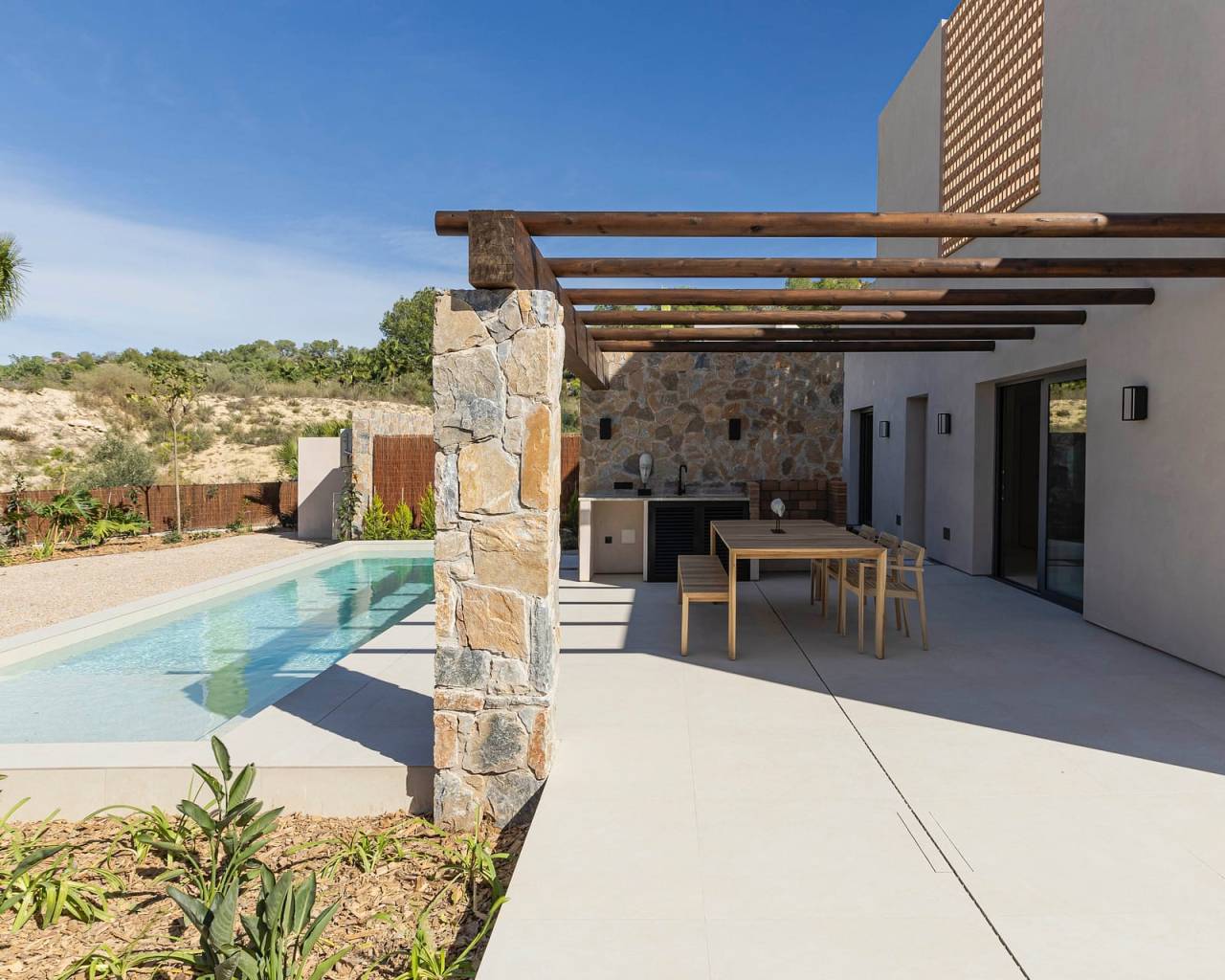 Contemporary Mediterranean Living in One of Spain’s Most Exclusive Resorts A collection of refined modern villas in Las Colinas Golf & Country Club, an award-winning gated resort known for its privacy, nature, and world-class facilities.These homes offer a perfect balance of architectural elegance, comfort, and the serene Mediterranean lifestyle that defines this prestigious enclave. Property Highlights Designed for light, space, and seamless indoor–outdoor living: 3 bedrooms + 2–3 bathrooms, finished with premium Porcelanosa materials Open-plan living areas with large glass façades Private swimming pool and landscaped garden Modern designer kitchen with top-brand integrated appliances Spacious terraces ideal for lounging, dining, and entertaining Smart home system for lighting, blinds, and climate Energy-efficient construction with excellent insulation Private parking Optional upgrades: underfloor heating, solarium, outdoor kitchen, extended terrace design. A low-maintenance modern home with the privacy of a villa and the comfort of a resort community. Las Colinas Living in Las Colinas means enjoying a level of quality and tranquillity rarely found on the Costa Blanca. The Resort offers: The Las Colinas Beach Club, overlooking Campoamor Beach A top-ranked championship golf course Tennis, padel, gym, nature trails, wellness areas Fine dining restaurants, cafés, and an organic market 24h security and low-density planning Heated communal pools, spa areas, cycling and walking paths An ideal environment for relaxation, sport, and nature. A privileged setting between the sea and the hills: 10 min • Las Colinas Beach Club 5 min • Villamartín 20 min • Torrevieja 45–50 min • Alicante & Murcia Airports Close to blue-flag beaches, marinas, shopping centres, international schools, and restaurants.A microclimate offering more than 320 days of sunshine each year.