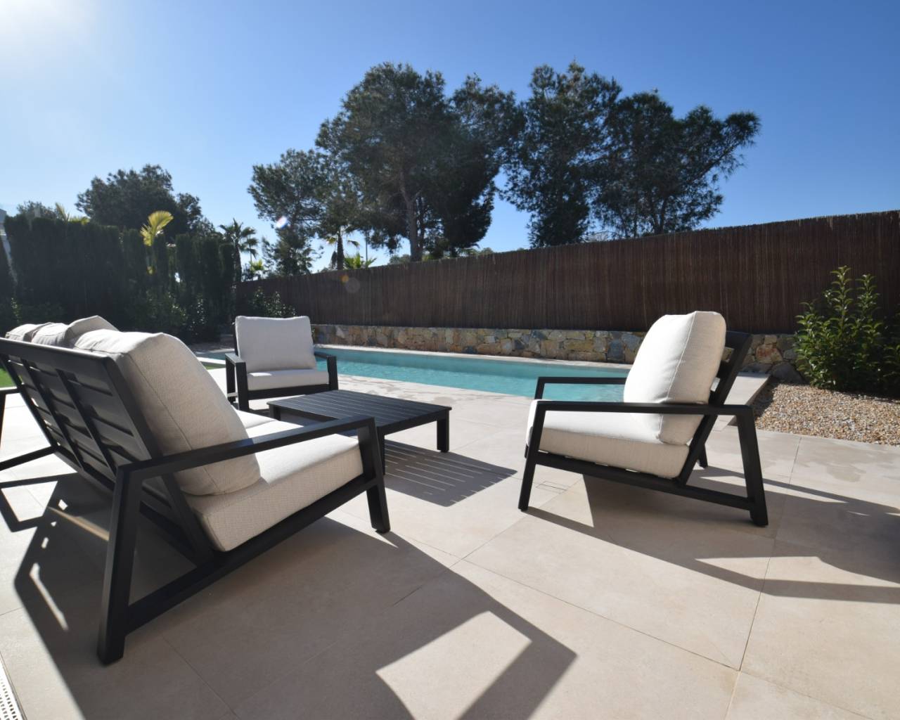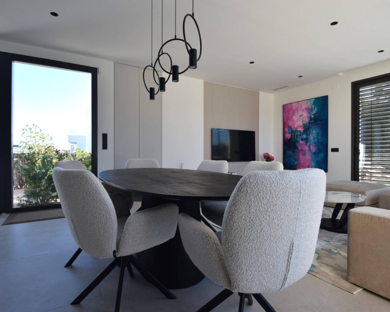 Discover this exceptional, nearly brand-new resale detached villa located in the prestigious Orquídea community at Las Colinas Golf & Country Club. This contemporary home perfectly combines modern design, comfort, and privacy in a beautiful natural setting. The villa offers 3 spacious bedrooms and 2 elegant bathrooms, finished in a soft, neutral colour palette that enhances the abundance of natural light and creates a calm, sophisticated atmosphere throughout the property. The open-plan living and dining area flows seamlessly onto a large, landscaped garden, ideal for entertaining or relaxing in complete privacy. The private swimming pool, surrounded by lush greenery and carefully designed outdoor spaces, is perfect for enjoying the Mediterranean lifestyle year-round. Additional features include a very large garage with ample storage space, a generously sized basement with endless potential for various uses, and a dedicated laundry area. Contact us today to arrange a private viewing and discover this outstanding home in Las Colinas Golf. A rare opportunity to own your own piece of paradise.