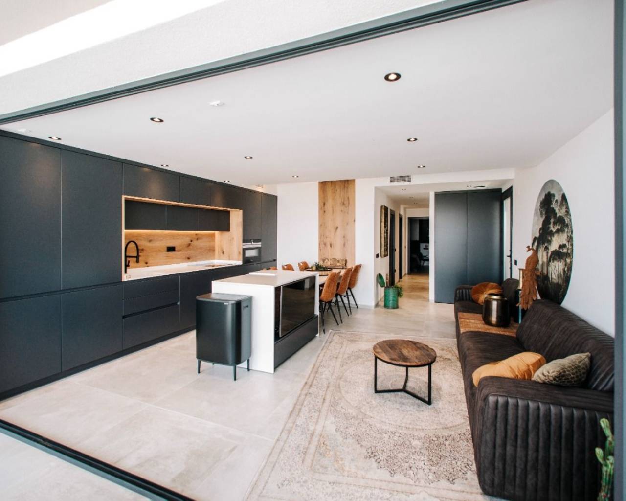 LUXURY AND DESIGN PENTHOUSE NEXT TO GOLF COURSE Luxury flat with 2 spacious bedrooms, 2 bathrooms, one of the bedrooms en suite with private bathroom. It has a kitchen open to the living-dining room, a terrace of 22 m2 with views to the exterior garden and a parking space + storage room. The property has a private solarium with access from the communal lift and some units have a private swimming pool on the roof terrace. The communal areas have a communal outdoor swimming pool and an indoor sauna with fitness. Surrounded by golf courses such as La Finca, La Marquesa, Villamartin, Las Colinas and Campoamor Golf. Close to major cities such as Alicante and Murcia. Rojales is only 5 km from the sandy beaches of Guardamar, El Moncayo and La Mata. A little further away are the beaches of Torrevieja and Orihuela Costa, where the famous shopping centres Habaneras and La Zenia Boulevard are located.