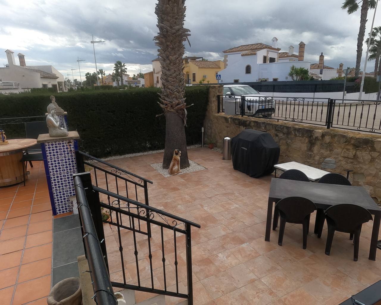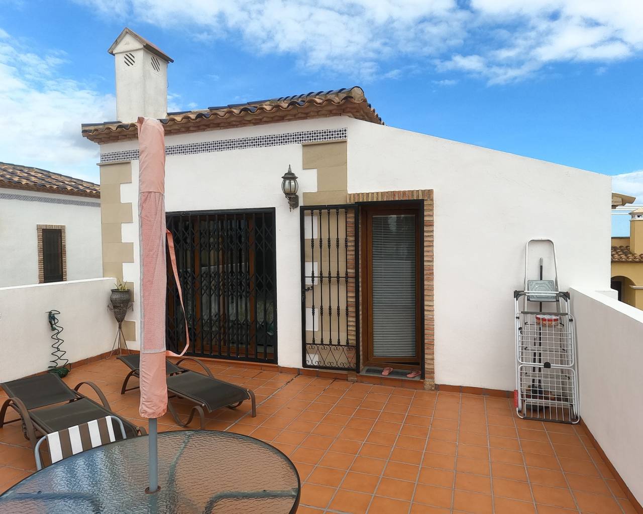 For sale is a well-maintained resale villa located in the sought-after area of Algorfa, La Finca Golf. This inviting home offers 110 m2 of internal space, providing ample room for family living. The villa consists of three comfortable bedrooms and two modern bathrooms. Built in 2003, the property combines traditional charm with practical living spaces. The villa is partially furnished, allowing you to move in straight away or add your own touches. Enjoy the benefits of a south west facing property, perfect for making the most of natural light throughout the day. Step outside to relax in the communal swimming pool or enjoy the picturesque mountain views from the roof terrace, that create a peaceful backdrop. Golf enthusiasts will appreciate direct access to the renowned La Finca Golf course. The villa is also conveniently located close to amenities such as shops, restaurants, and local services, ensuring everything you need is within easy reach. The large communal pool is only a short walk away from the property. Algorfa, La Finca Golf is known for its beautiful surroundings and quality lifestyle, making it a favored choice for residents and holidaymakers alike. To arrange a viewing or discover more about this fantastic home, contact Orange Casas today.