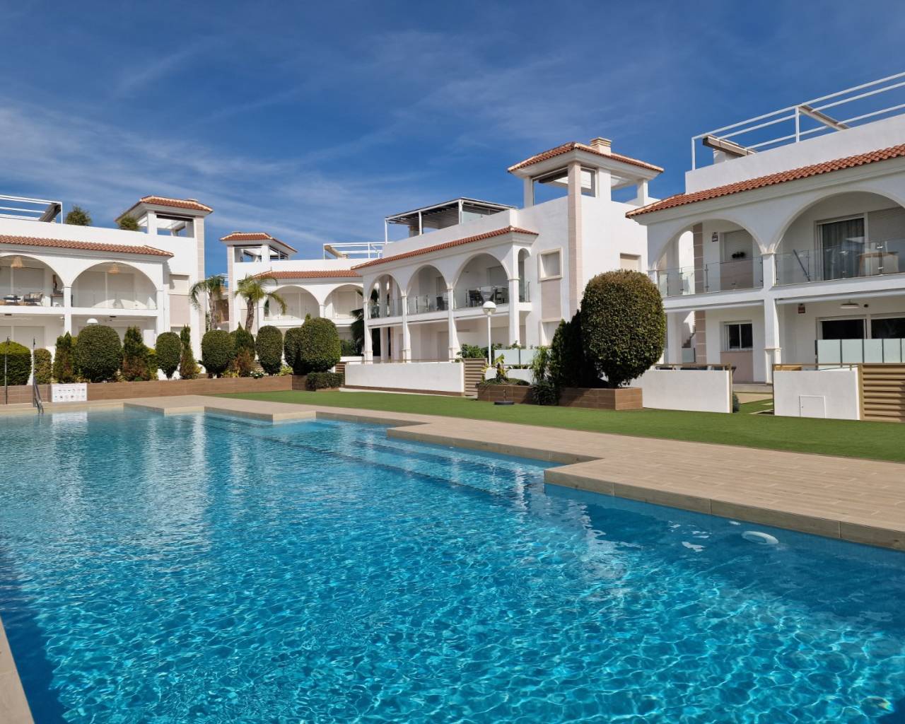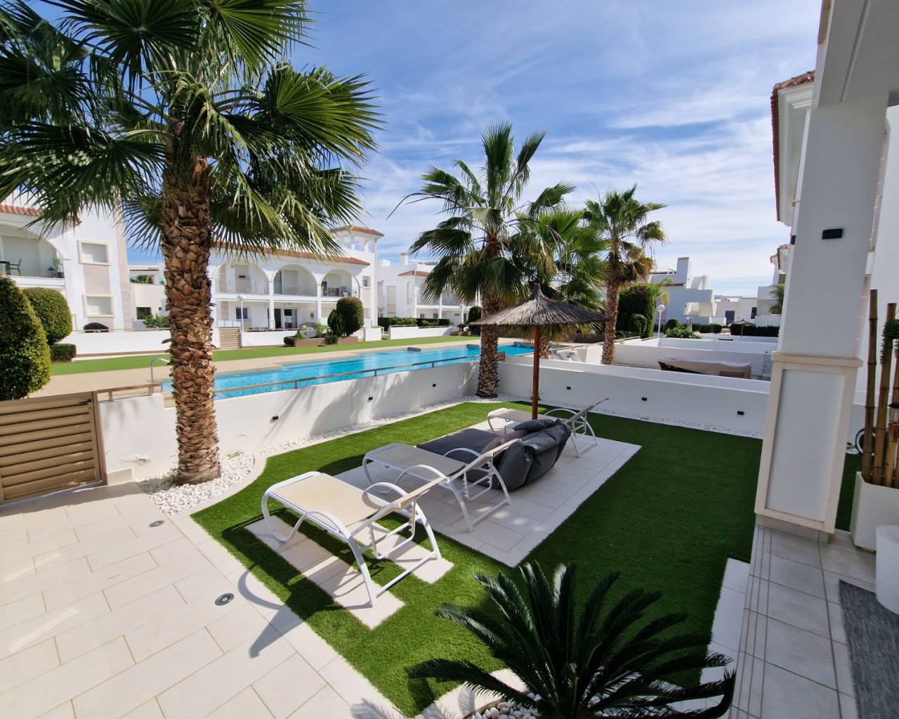 The Fortuna complex consists of stylish bungalow-style apartments, with ground floor properties offering large terraces and only one neighbour above. This low-density design ensures greater privacy and a quieter living environment compared to larger urbanisations.