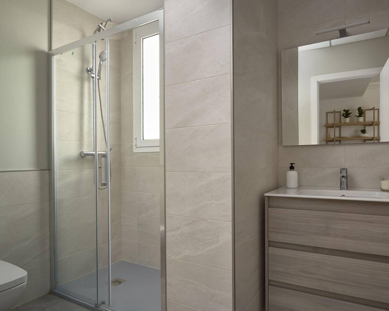 NEW BUILD RESIDENTIAL COMPLEX IN VERA New Build residential of apartments in Vera just 400m from the huge Vera beach named "El Playazo". The typologies are ground floor with two private gardens, one in each orientation, which allows you to enjoy sun or shade whenever you want depending on the time of day or the season of the year. The first floors have terraces and the penthouses have large solariums. All the apartments have extra height ceilings (2.95 m) providing a great feeling of spaciousness. The kitchen comes fully furnished and equipped integrated with the living-dining area with a bar area. The doors and fitted wardrobes are lacquered in white and the floor is made of laminated wood. The hot-cold air conditioning and the hot water are generated by a state-of-the-art DAIKIN Aerothermal device, a technology that saves up to 70% of electricity consumption compared to traditional systems. All bathrooms come with a shower instead of a bathtub, with recessed mirrors and also with a stone countertop and glass partition in the main bathroom. The blinds in the living room and master bedroom are electric, hermetically sealed and with adjustable slats. The gardens and solarium are delivered with the floors finished combining artificial grass and a beautiful paving imitating wood. Each house includes a private outdoor parking space. Each block of the promotion has an independent elevator. Both the buildings and the apartments have a series of bioclimatic architecture characteristics (orientation, insulation, windows and shutters, pergolas) that allow optimal natural regulation of ventilation, temperature and light throughout the different seasons of the year. The communal areas are made up of pedestrian squares and green areas, with a large swimming pool for adults and another for children in the central square. The entire urbanization is free of architectural barriers for the disabled. Here tranquillity and relaxation are guaranteed. Vera is one of the best naturist places in Europe, recognized for the quality and purity of their waters. It offers six kilometres of beaches (Las Marinas-Bolaga, Puerto Rey, El Playazo, Quitapellejos). Vera bordering with the famous tourist destinations such as Mojacar and the Almanzora Caves. Residential complex located about 1,5 hour drive away from Murcia - Corvera airport and about 2 hours away from Alicante airport. 456