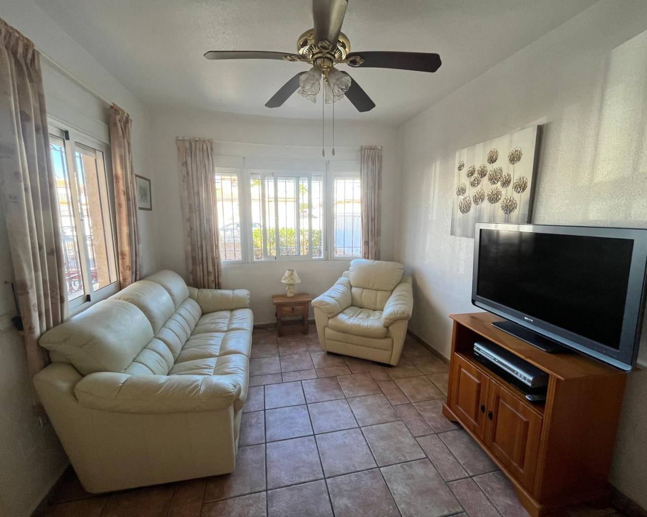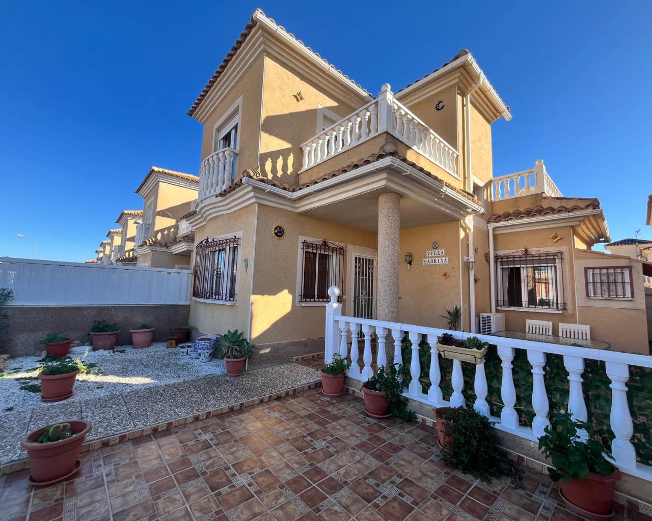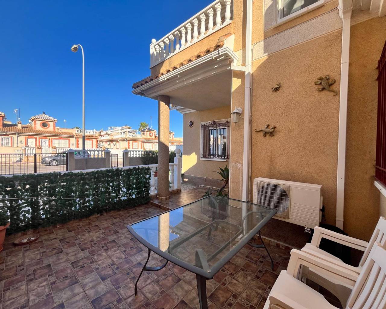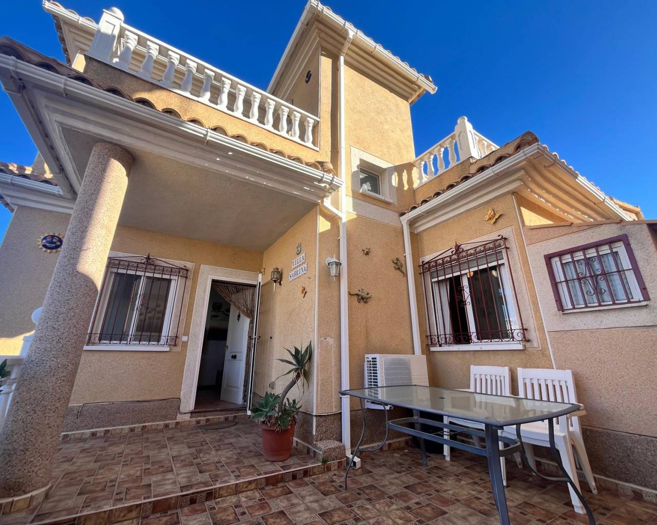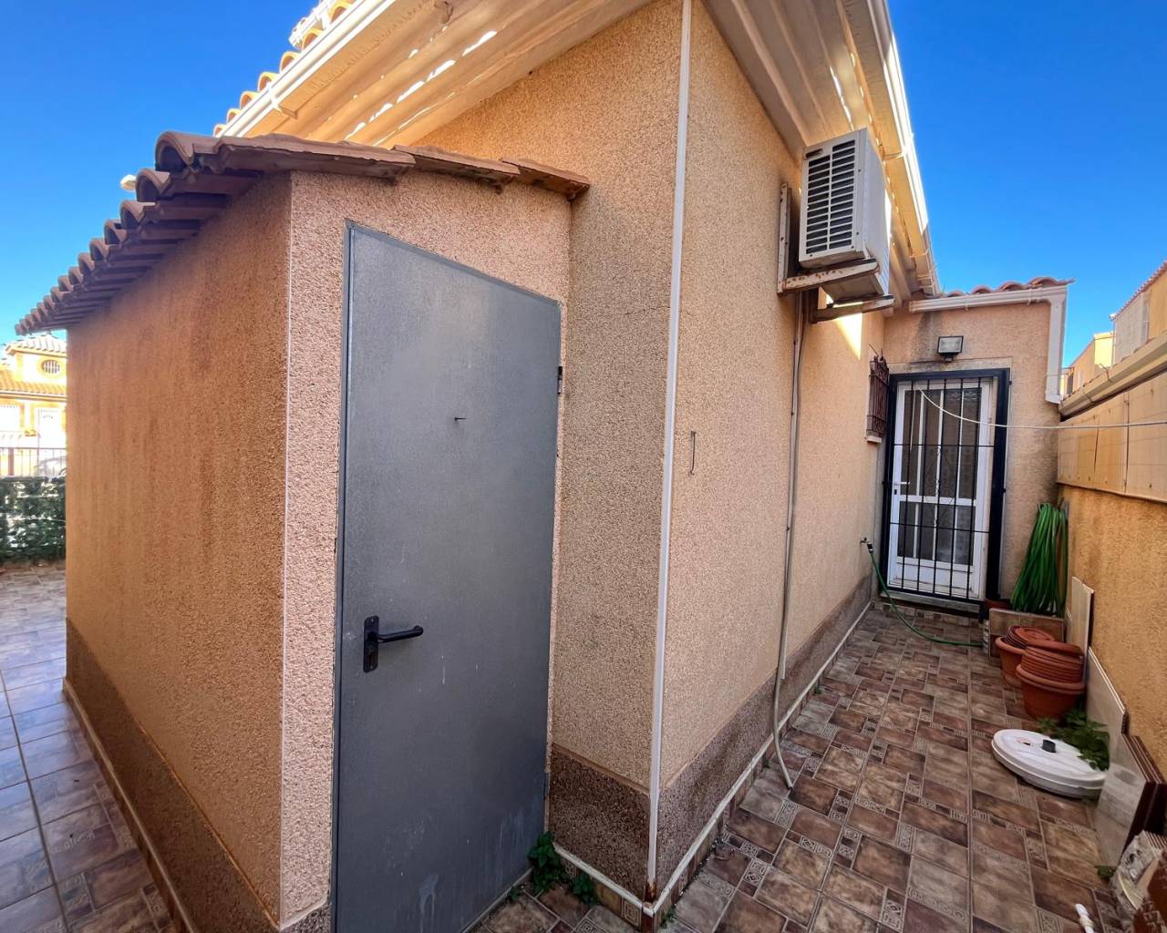 Detached villa with 3 bedrooms in Playa Flamenca Discover the charm of this delightful detached villa, perfectly situated in the heart of Playa Flamenca. This spacious home boasts three well-appointed bedrooms and two bathrooms, making it an ideal retreat for families or those seeking extra space. The separate kitchen is fully equipped, while the inviting lounge/diner provides a perfect setting for relaxation and entertaining. Step outside to enjoy two lovely terraces. The property also features air conditioning for comfort during warmer months and a convenient storage room to keep belongings organised. With off-road parking available, convenience is at your doorstep. The villa is located in a vibrant community with access to a refreshing pool, ensuring leisurely days spent soaking up the sun. Its central location means that essential amenities are just a stone's throw away, and the popular Zenia Boulevard shopping complex is nearby for all your retail therapy needs. This property is in good condition and ready for new owners to make it their own. Don’t miss out on this fantastic opportunity to own a slice of paradise in Playa Flamenca!