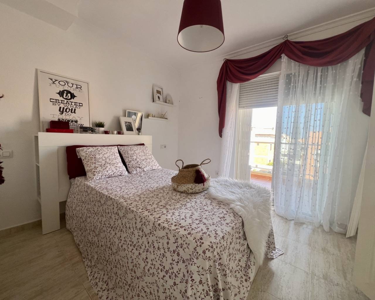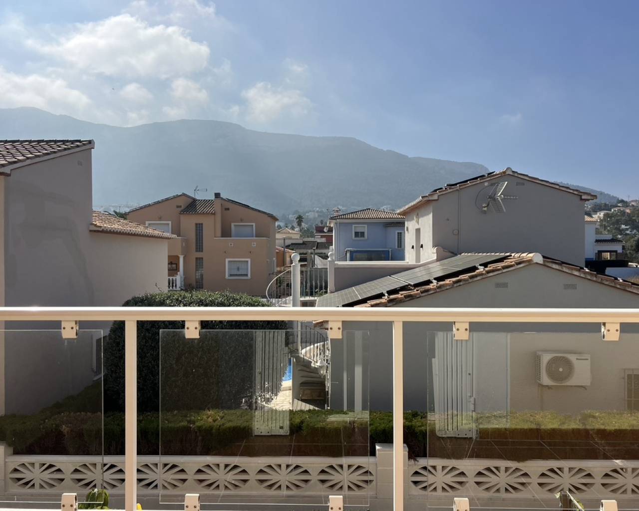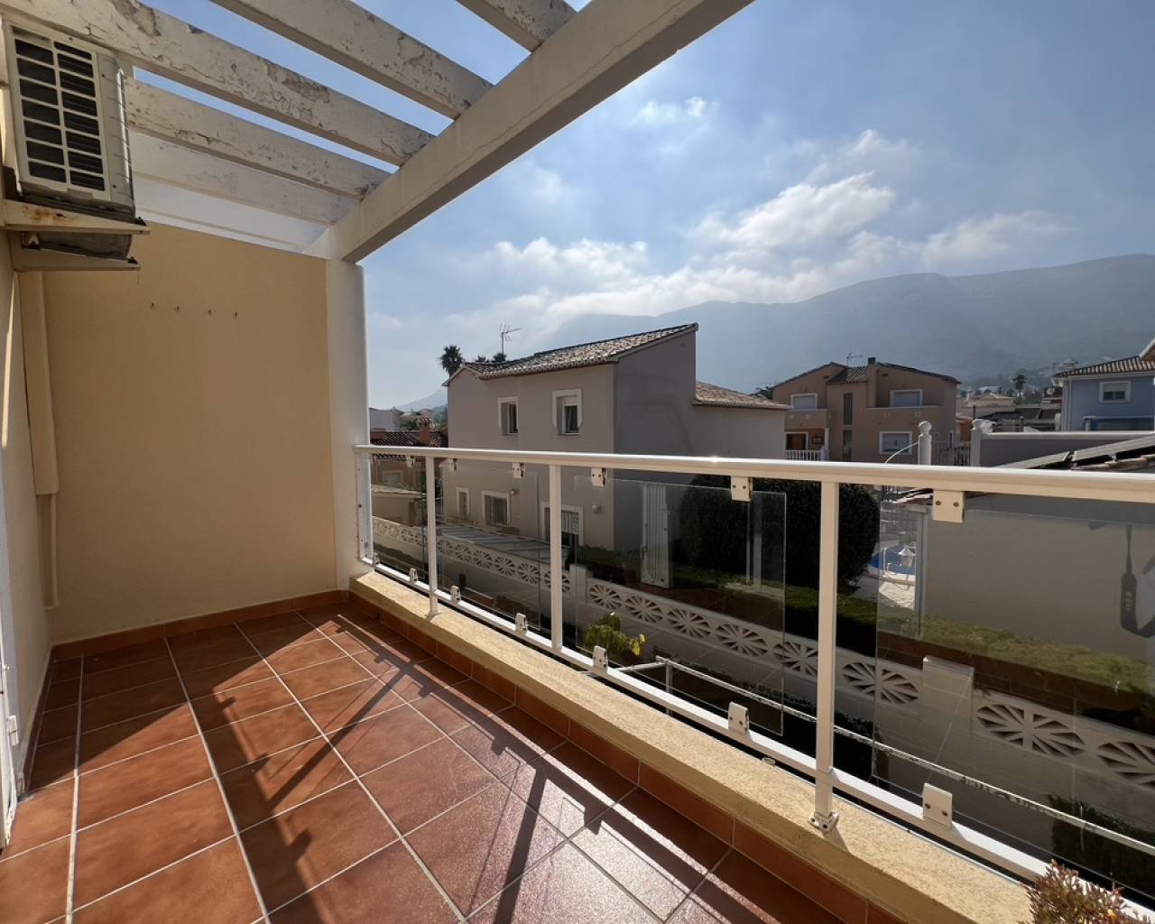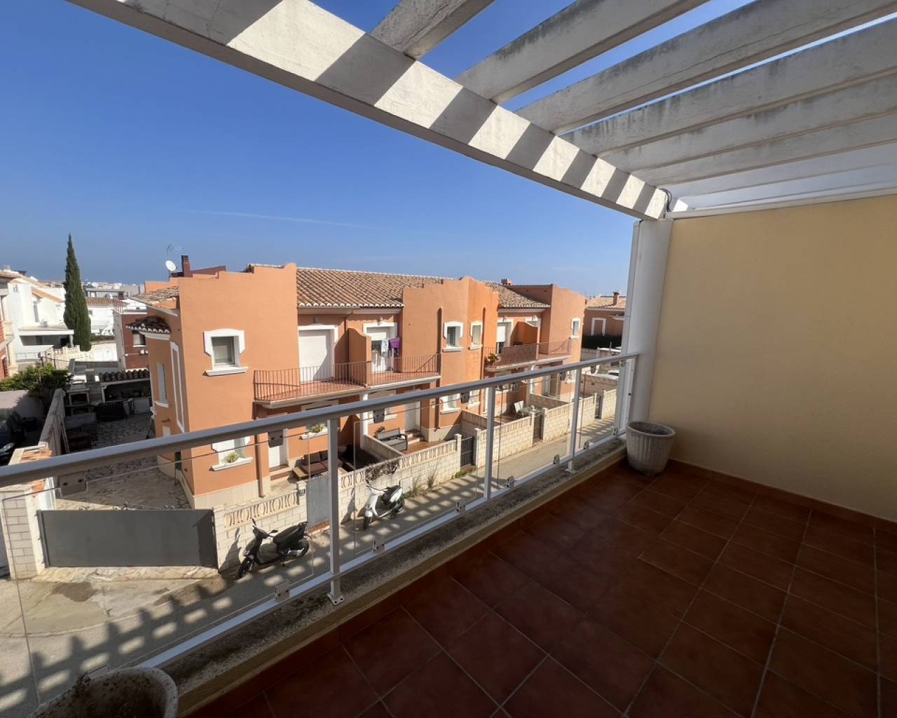 This magnificent townhouse is located in one of the best residential areas of Dénia, just a few minutes' walk from the town center and with all amenities within easy reach: hospitals, supermarkets, schools, and everything you need for daily life. The property is part of an exclusive and peaceful community of only 12 townhouses, inhabited year-round. Situated on a cul-de-sac, it offers maximum tranquility, with no traffic and a safe, family-friendly atmosphere. It stands out for its excellent natural light and south-facing orientation, guaranteeing plenty of sunshine in winter and a pleasant temperature throughout the year. It features a communal swimming pool and beautifully maintained gardens to enjoy in any season. Layout: Ground floor: Covered garage with space for a vehicle and storage area. First floor: Spacious living-dining room with open-plan kitchen, one bedroom, and a full bathroom. From this floor, there is direct access to the south-facing terrace and the communal garden and pool areas. Second floor: Two additional bedrooms and a second full bathroom. Each bedroom has its own private terrace. The property is in perfect condition, ready to move in and enjoy from day one. An ideal opportunity as a primary residence, a second home, or an investment in one of the most sought-after areas of Dénia.