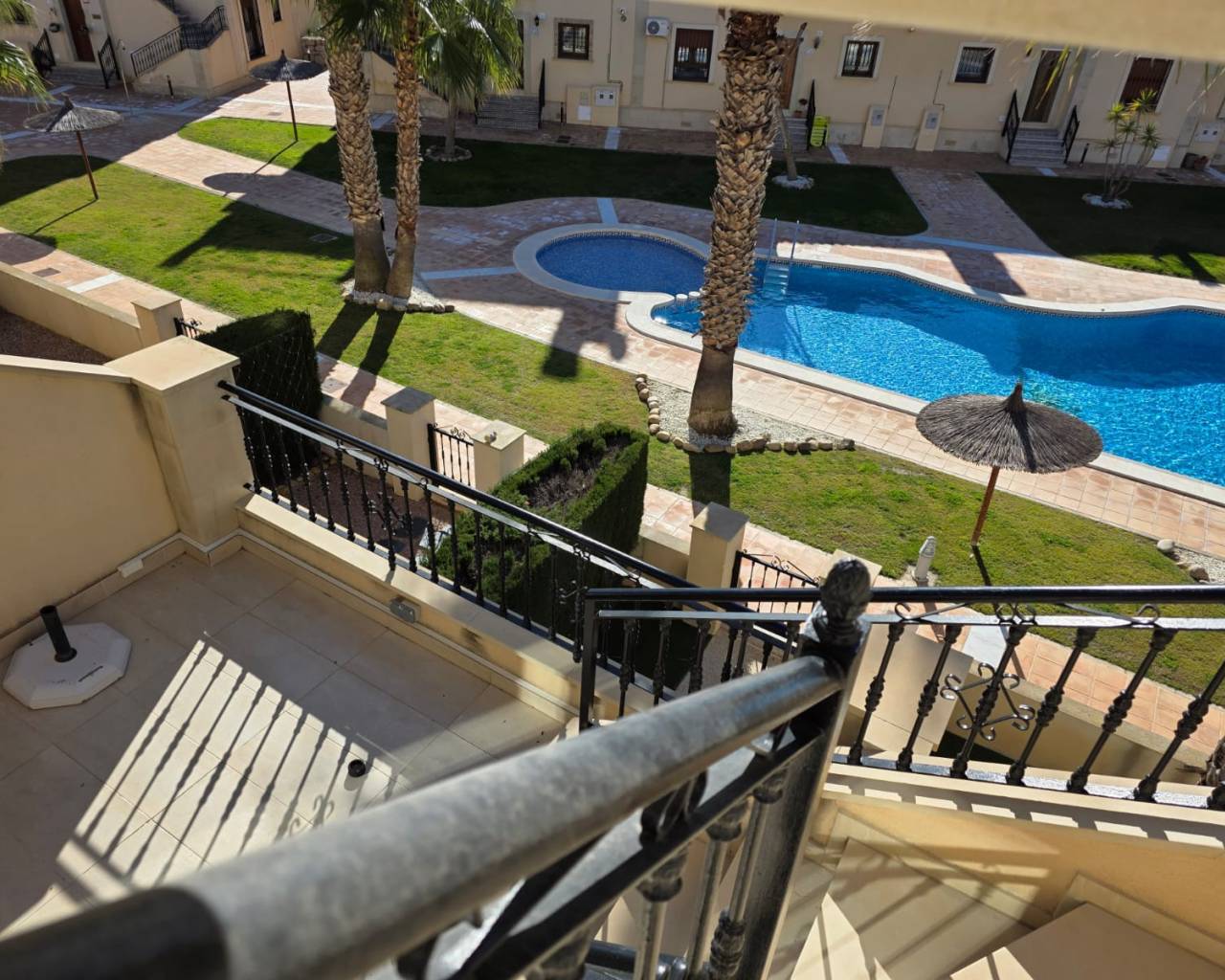 KEY FEATURES SOUTH FACING FULLY FURNISHED HIGH CEILINGS AIR CONDITIONING ROOM GARDEN WITH VIEWS OVERLOOKING POOL GATED COMMUNITY WITH PARKING WALKING TO AMENITIES For sale is a charming top-floor apartment located in the sought-after area of Algorfa, within the popular La Finca Golf community. This resale property offers a well-laid-out internal space and comes fully furnished for immediate comfort. The apartment features two spacious bedrooms, the master bedroom with an en-suite shower room, and a family bathroom, making it ideal for a full time residence or lock up and leave holiday home Enjoy the benefits of a bright south-facing living area, ensuring plenty of natural light throughout the day. Step onto the private balcony and soak in panoramic views of the surrounding landscape and golf course. Residents have access to a beautifully maintained communal swimming pool, perfect for relaxing or socialising with neighbours. La Finca Golf is renowned for its peaceful atmosphere, well-manicured golf courses, and close-knit community. The area boasts various amenities such as shops, restaurants, and recreational facilities, all within easy reach. Its tranquil setting offers a blend of leisure and convenience, making it a desirable location for all ages. This apartment is proudly offered by OrangeCasas. For those seeking a tasteful home in a prime location, this property presents a fantastic opportunity.