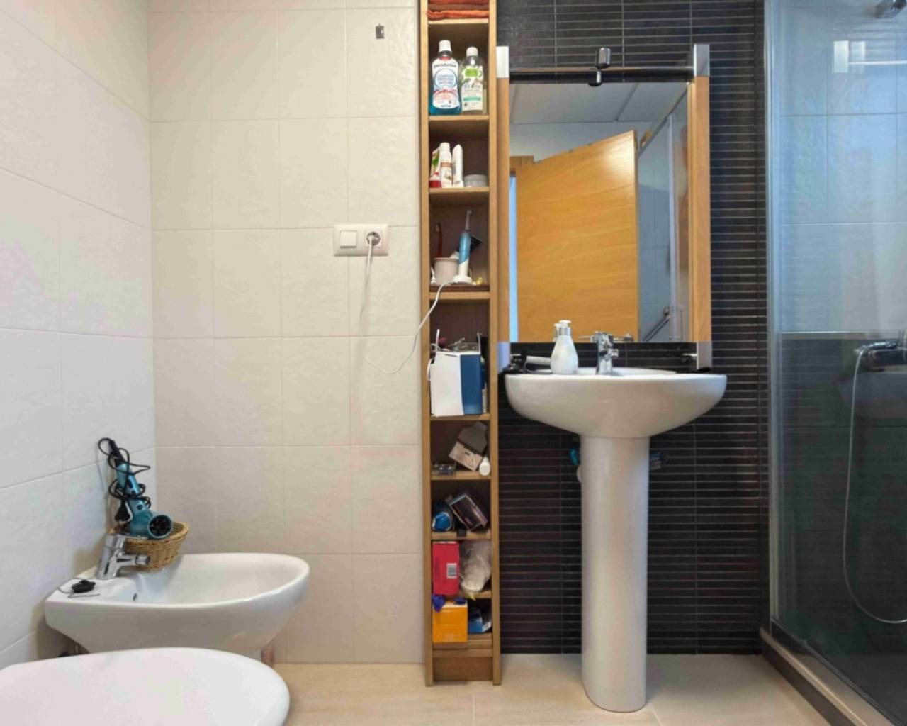 Discover this modern and fully upgraded first-floor apartment in the heart of San Miguel de Salinas — offering comfort, quality, and a prime central location within walking distance to all amenities. Originally built in 2015 and fully finalized in 2023, the property has been upgraded throughout with new electrical and water installations, modern windows, updated flooring, and fitted wardrobes, creating a fresh and move-in-ready home. The apartment features a bright and spacious living and dining area, a fully equipped kitchen, two double bedrooms, and two bathrooms, including a stylish en-suite to the master bedroom. The layout is practical and comfortable, ideal for both permanent living and holiday use. Residents benefit from access to a communal rooftop pool with open views — perfect for relaxing and enjoying the Mediterranean climate. The building also offers an elevator for easy access, as well as a private underground parking space and storage room, adding convenience and value. Located in a central area of San Miguel de Salinas, you are just steps away from shops, restaurants, cafés, and all essential services, while the beaches of Orihuela Costa and several golf courses are only a short drive away. A fantastic opportunity to own a modern, fully updated apartment in a well-connected and sought-after area on the Costa Blanca.