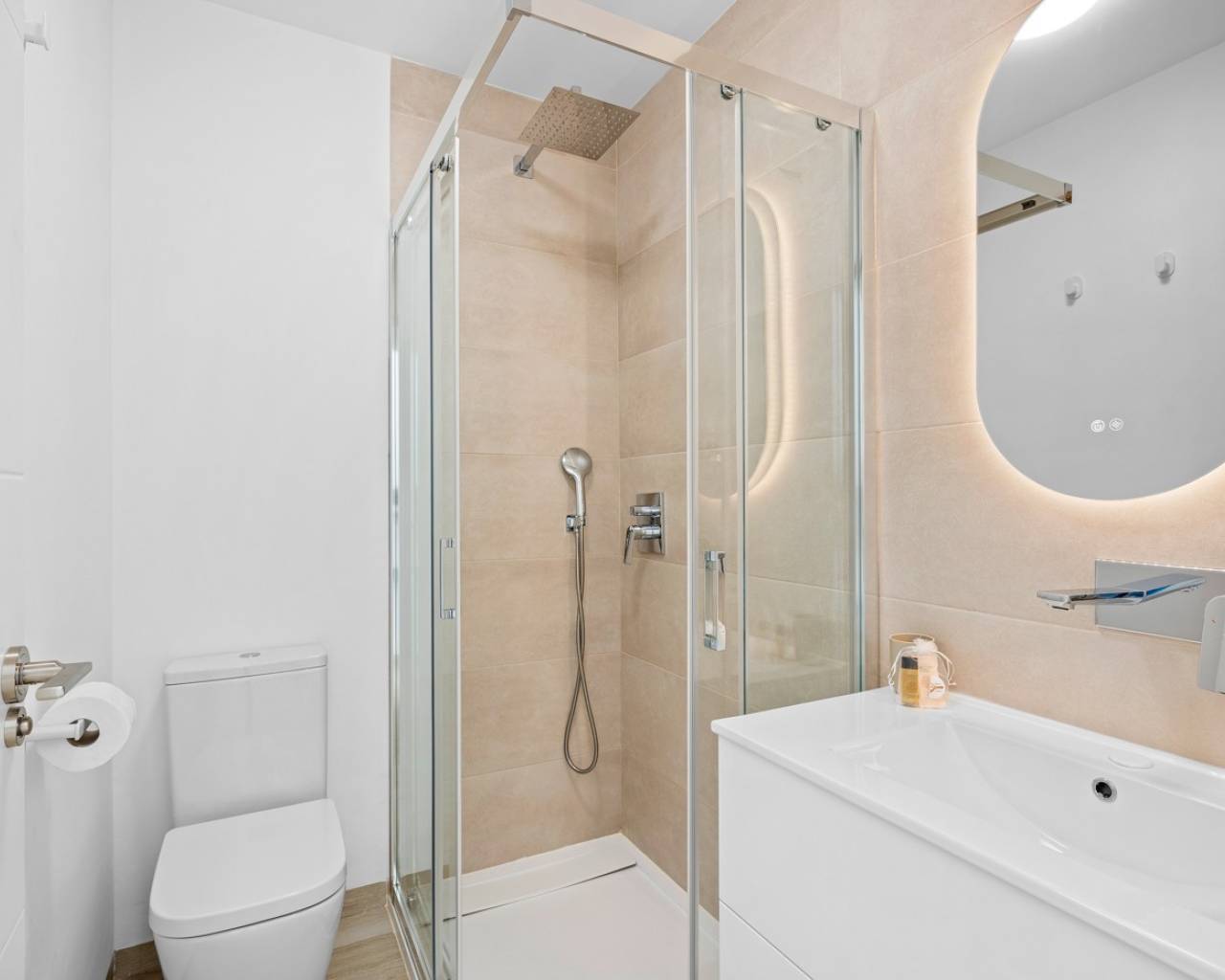 In San Miguel de Salinas, this recently built penthouse is located in a prime setting within a small scale and pleasant residential complex where tranquillity and comfort are key. The property combines modern finishes with beautiful open views and a convenient location close to all amenities. The penthouse offers two bedrooms and two bathrooms and features a practical layout with an open living area and kitchen that creates a bright and comfortable atmosphere. From the living room you have access to the terrace overlooking the inner garden and the communal swimming pool. The property also benefits from a spacious private solarium with impressive views over the surrounding natural areas and the pink salt lake, a unique place to relax and enjoy the surroundings. The property is south facing and is sold fully furnished, including household items, making it ready to move into. The residence is fully gated and features a communal swimming pool and a playground, creating a pleasant and secure environment. The project is intentionally small scale, offering a calm and cosy atmosphere, ideal for those seeking relaxation and privacy. Thanks to its location in San Miguel de Salinas, shops, restaurants, golf courses and beaches are all within easy reach, making this property ideal as a holiday home, rental investment or comfortable permanent residence. A property that combines views, tranquillity and quality.