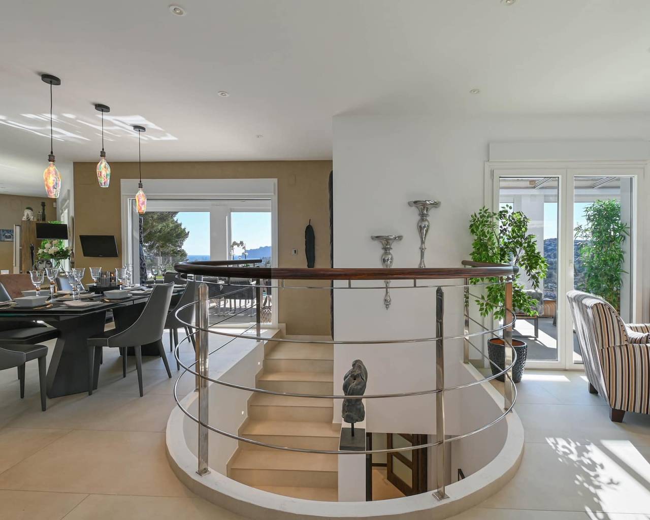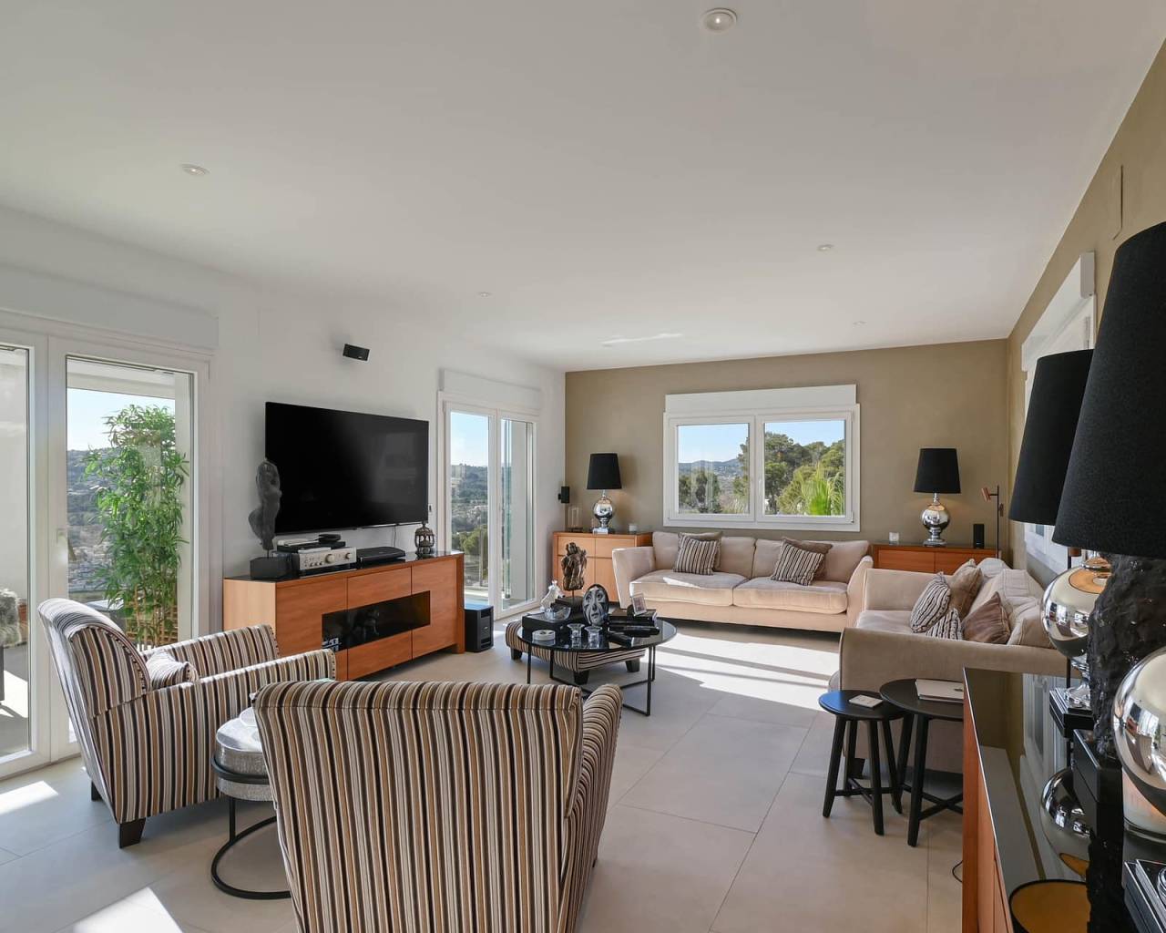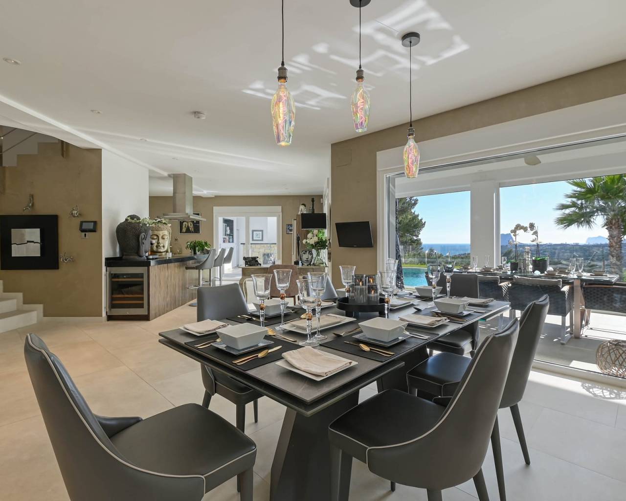 This is a home that makes a statement. Contemporary architecture meets timeless Mediterranean charm. Clean lines, elegant finishes, and thoughtfully designed spaces—creating a balanced aesthetic that feels both sophisticated and inviting. Step inside and the tone is set instantly. Every detail has been thoughtfully curated for those who expect more. The home features five spacious bedrooms, Moraira - Villa each finished to an exceptional standard, complete with en-suite bathrooms and direct access to the outdoors—bringing natural light, air and flow into every corner. Underfloor heating provides quiet, consistent comfort underfoot, while the high-end Lutron system allows you to shape the atmosphere with precision. Fully integrated smart home systems place lighting, climate, and security effortlessly at your command—controlled seamlessly from your phone, whether you’re at home or away. A well-equipped outdoor bar and kitchen invite long, unhurried evenings, while the poolside dining area promises relaxed entertaining in true Costa Blanca style. The exterior lounge, complete with an electric roof, adapts effortlessly to the moment creating a refined space for conversation, comfort, and effortless living. This Moraira - Villa is not simply a property. It’s a quietly confident expression of taste, technology, and lifestyle. Property Highlights Rooms distributed across three levels, optimizing comfort and privacy throughout Underfloor heating throughout the entire property Newly installed Mitsubishi split air-conditioning units in every room Lutron smart home system offering advanced control of lighting and persianas, with full customisation of ambience, shading, and programmable timers Viessmann boiler with advanced diagnostics and gas consumption monitoring, accessible via the main unit or mobile device High-end security system with advanced sensors and ultra-clear surveillance cameras, accessible via touchscreen panel or mobile device Two independent alarm systems covering both the main residence and Storage room (under carport - 30m2) 2N door entry system providing secure control of pedestrian gate access from within the home or remotely Integrated outdoor mosquito control system covering the entire exterior space, safe for pets Pre-installation in place for swimming pool heating Fifth bedroom on the lower floor includes pre-installation for potential kitchenette conversion Planning permission already secured for the installation of an exterior lift (from carport to main entrance) About The Area - Moraira Think crystalline waters, a charming marina, and a coastline dotted with intimate coves rather than crowded high-rises. Here, fine dining, boutique shopping, and laid-back beach culture exist in perfect balance. It’s refined, quietly exclusive, and effortlessly stylish a place where those in the know come to enjoy the Mediterranean at its most authentic.