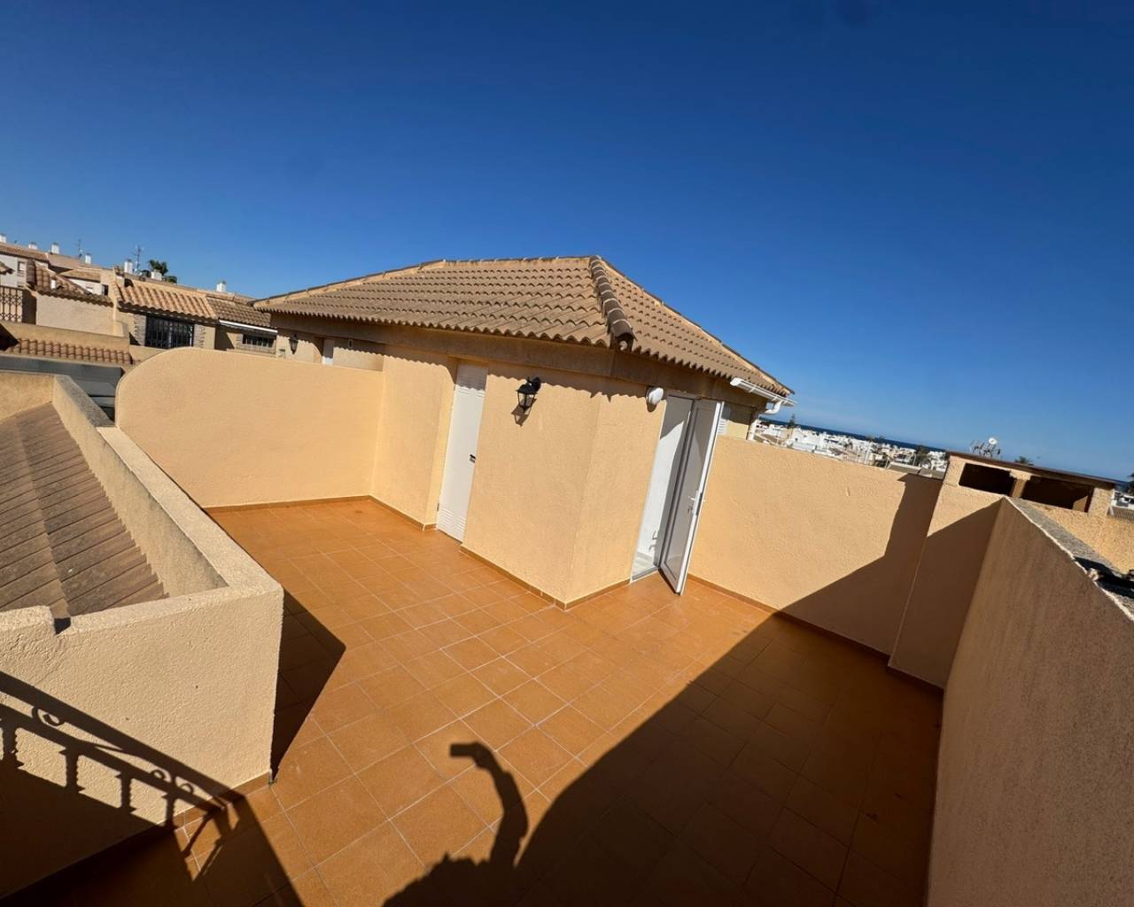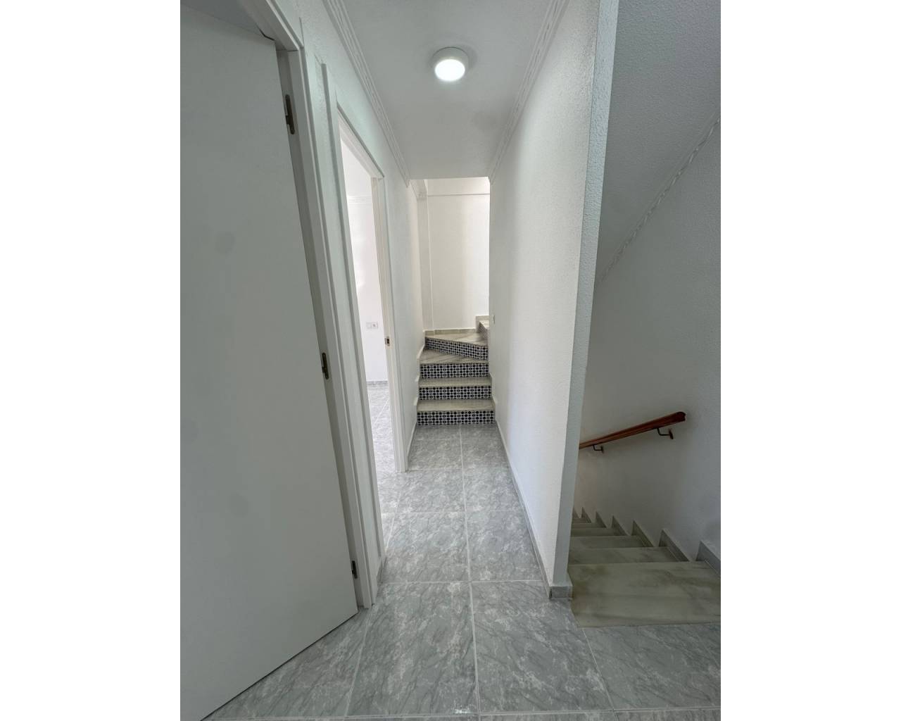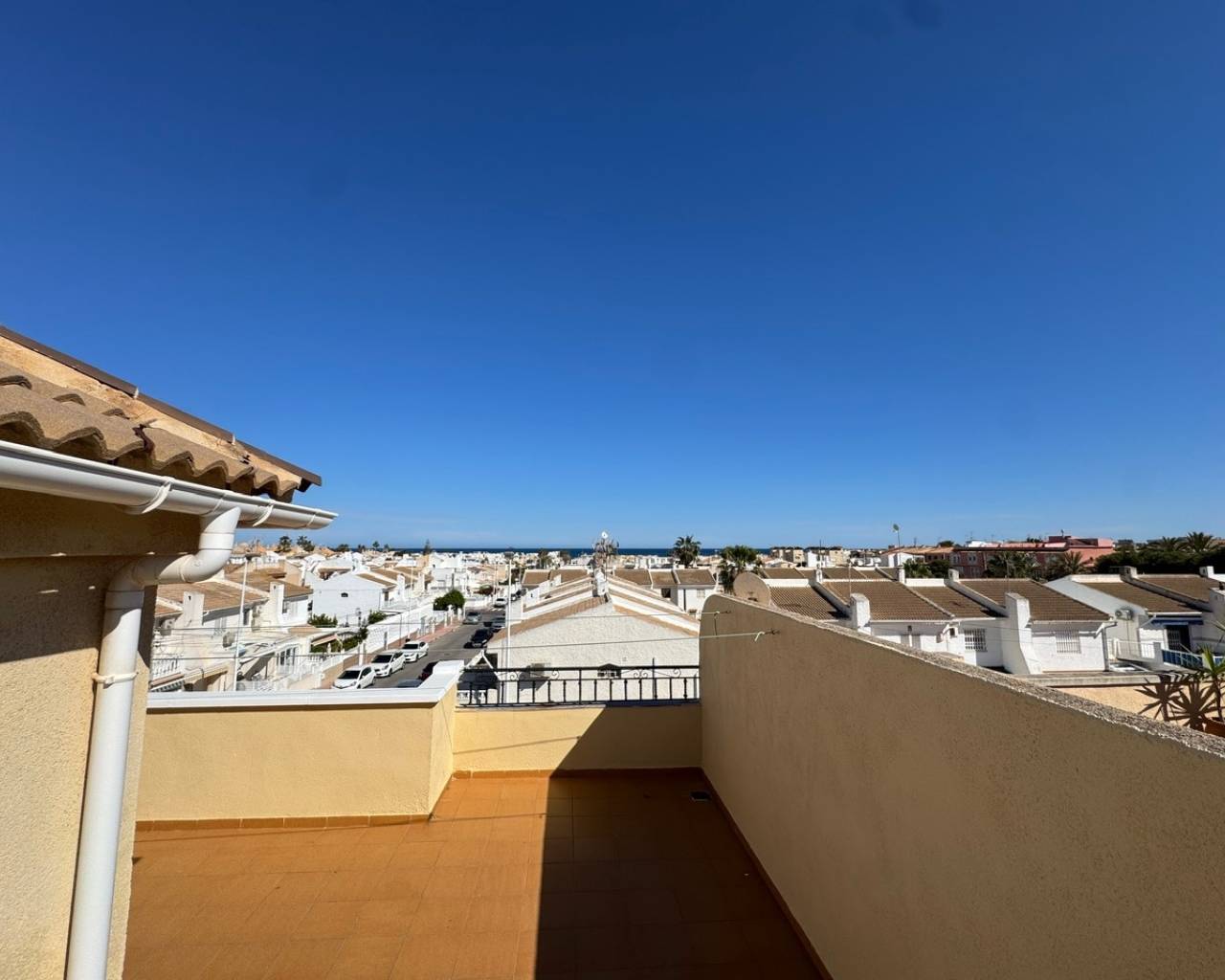 Charming, move-in ready townhouse in a prime location in Torrevieja!Discover this spacious, renovated townhouse, ideally located right by the communal swimming pool. Thanks to its west-facing sunny terrace, you can enjoy beautiful afternoons and evenings in the sun every day. The property features 3 comfortable bedrooms, a modern new kitchen, a stylish bathroom, and a separate guest toilet. In addition, there are multiple outdoor spaces, including a balcony and a large rooftop terrace with a practical laundry area—perfect for enjoying the Mediterranean climate. With the sea just 600 meters away and all amenities such as shops, restaurants, and public transport within walking distance, this is truly a prime location. The home has been renovated with great care and attention and is completely move-in ready. Whether you are looking for a holiday home, a permanent residence, or an attractive rental investment, this property offers it all.???? Seeing is buying!Contact our professional agents today to schedule a viewing.