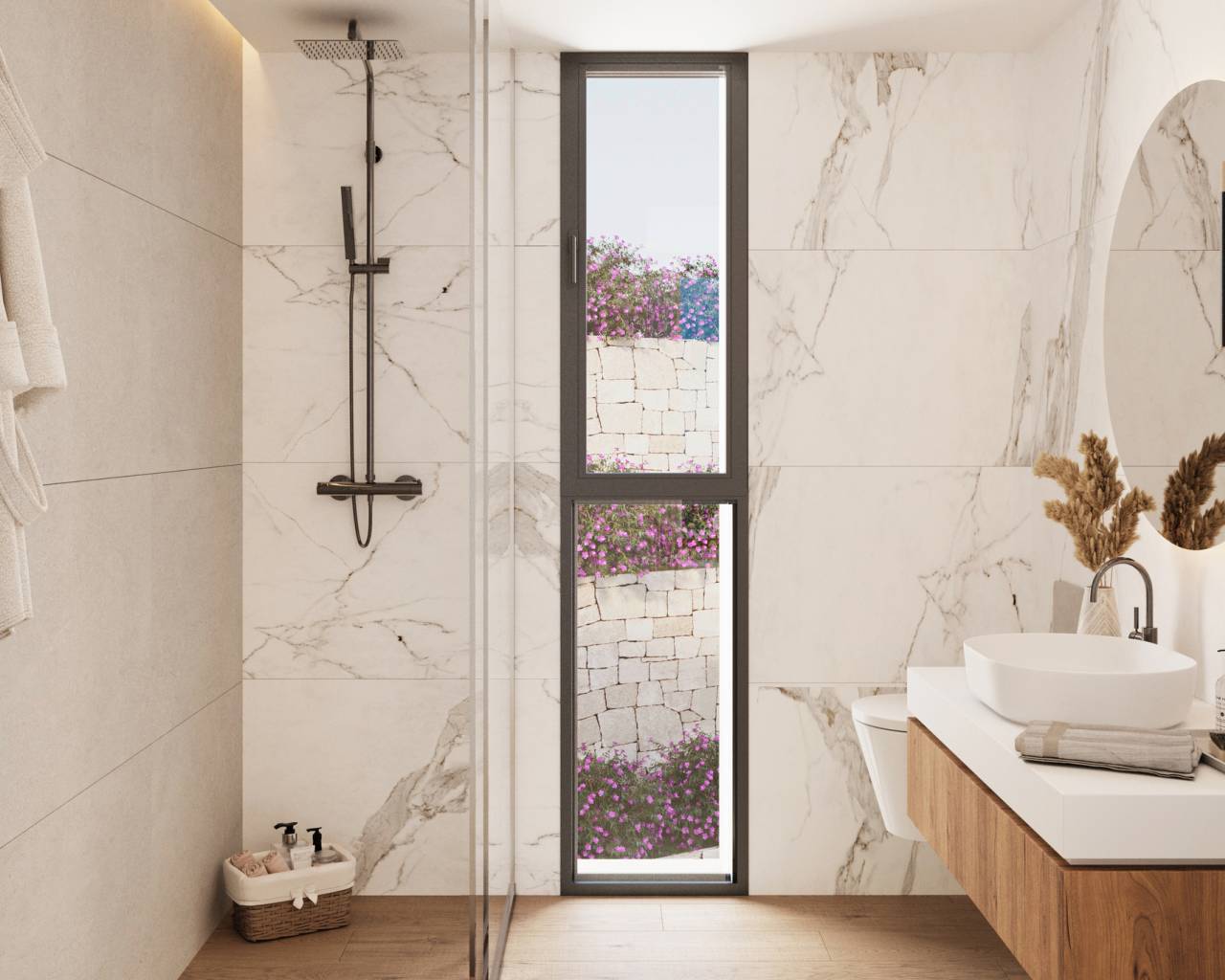 Located in the charming town of Polop, this exclusive community of 49 detached homes offers a privileged setting with sea views. The properties are designed for those seeking a modern and comfortable home, with options of 2, 3, or 4 bedrooms and 2 or 3 bathrooms, catering to the needs of every family. The contemporary architecture and quality finishes ensure a sophisticated lifestyle in an unparalleled natural environment. OUTDOOR AREAS The homes feature spacious outdoor areas including a private garden and terrace, ideal for enjoying the Mediterranean climate. Additionally, each property includes a solarium and pergola, perfect for relaxing and enjoying the stunning sea views. The presence of a private pool and jacuzzi adds a touch of luxury and comfort, allowing for leisure and relaxation in the privacy of your home. INDOOR AREAS The interior of the homes is designed to offer maximum comfort and functionality. Equipped with air conditioning and modern appliances, these houses ensure a pleasant environment throughout the year. Ceramic floors add an elegant touch and are easy to maintain. The homes also feature built-in wardrobes, electric shutters, and a video intercom, ensuring comfort and security. The layout includes a garage, providing a secure parking space. POLOP DE LA MARINA Polop, in the province of Alicante, is a charming village nestled between mountains and with panoramic views of the sea. Although it is not a mass tourist destination, its appeal lies in its natural surroundings and its Mediterranean charm. Tourism in Polop focuses on its old town, with cobbled streets and historical monuments such as the Church of San Pedro. Its natural surroundings are conducive to outdoor activities such as hiking and cycling. The lifestyle in Polop is tranquil and rooted in rural life. The inhabitants value tranquillity and community life, celebrating local festivities and promoting cultural activities. The gastronomy is based on typical dishes of the region, with fresh local produce. Polop offers a serene and rural atmosphere for those seeking a quiet life in a natural environment, enjoying the panoramic views and the essence of Mediterranean life in the province of Alicante.