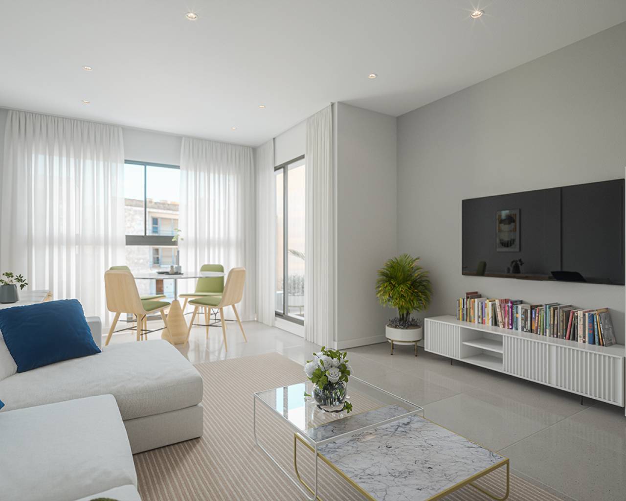 Located in the charming town of Guardamar del Segura, this exclusive residential complex offers a selection of 14 properties including apartments, ground floors, and penthouses. With guaranteed sea views, each home is designed to maximize comfort and enjoyment of the coastal environment. The proximity to the beach, just 100 meters away, allows for the enjoyment of the sea breeze and the relaxing sound of the waves. Additionally, the proximity to the airport, only 31 kilometers away, facilitates access and connection to other destinations. The homes are equipped with modern appliances and built-in wardrobes, ensuring functionality and style in every corner. OUTDOOR AREAS The outdoor spaces of this residential in Guardamar del Segura are designed to offer a Mediterranean lifestyle. The properties feature private terraces, ideal for enjoying the sea views and sunny weather. Additionally, the penthouses have solariums, providing additional outdoor space for relaxation or socializing. The beachfront location allows immediate access to the sea, turning every day into an opportunity to enjoy nature and the surroundings. Ceramic floors in the outdoor areas ensure durability and easy maintenance, complementing the modern design of the homes. INDOOR AREAS The interiors of the homes are designed to offer comfort and elegance. With options of 2 or 3 bedrooms and 2 bathrooms, each property is tailored to meet different family needs. Ceramic floors add a contemporary touch and are easy to maintain, while built-in wardrobes provide efficient storage. The inclusion of modern appliances ensures that each kitchen is ready for use from day one. Layouts are carefully planned to maximize space and natural light, creating welcoming and functional environments. COMMON AREAS The residential features spacious common areas that include well-maintained gardens, ideal for strolling or enjoying a moment of tranquility outdoors. The communal pool is perfect for cooling off during warm summer days, while the communal garage offers convenience and security for residents. These facilities are designed to foster a sense of community and provide additional spaces for leisure and enjoyment for all family members. GUARDAMAR DEL SEGURA Guardamar del Segura, on the Costa Blanca, stands out for its extensive fine sandy beaches and its natural environment. Its beaches, such as Playa Centro and Playa de la Roqueta, are ideal for relaxation and water sports, while its dunes and pine forests form a protected landscape. Tourism in Guardamar focuses on its beaches and its natural surroundings, ideal for hiking and bird watching in the Parque Natural de las Dunas de Guardamar. The lifestyle in Guardamar is relaxed and close to the sea. Residents and visitors enjoy a quiet life, with a wide gastronomic offer based on seafood and typical dishes of the region. The community values nature and promotes outdoor living. Guardamar del Segura offers a balance between coastal tourism, nature and a serene life by the sea, attracting those seeking tranquillity in a natural environment.