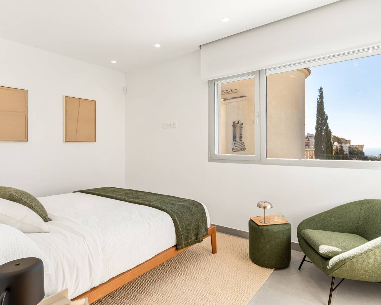 Located in the prestigious area of Cumbre del Sol, these exclusive villas offer a luxurious setting with stunning sea views. With only two properties available, each villa is designed to provide maximum comfort and privacy. The proximity to the sea, just 1 km away, allows for the enjoyment of the sea breeze and an unparalleled natural environment. These villas are ideal for those seeking a home in a privileged enclave, combining elegance and functionality in every detail. OUTDOOR AREAS The villas feature an exterior design that maximizes the enjoyment of the natural surroundings. Each property has a private garden, perfect for creating a personal oasis. Additionally, the spacious terraces allow for enjoying the sea views and Mediterranean climate year-round. The inclusion of a solarium offers additional space for relaxation and outdoor entertainment. The private pool is a standout feature, providing an ideal place to cool off and enjoy the sun in total privacy. INDOOR AREAS The interior of the villas is designed with a focus on luxury and comfort. With four bedrooms and five bathrooms, each space is crafted to offer spaciousness and functionality. Porcelain tile floors add a touch of elegance and durability. The villas are equipped with state-of-the-art technology, including home automation, air conditioning, and underfloor heating, ensuring a comfortable environment in any season. Electric shutters and a video intercom add an extra level of security and convenience. The kitchen is fully equipped with modern appliances, and built-in wardrobes offer efficient and stylish storage. COMMON AREAS The common areas of the residential complex are designed for the enjoyment of the whole family. They include a paddle court for sports enthusiasts, landscaped areas inviting for walks and relaxation, and a playground ensuring fun for the little ones. Additionally, the community parking provides convenience and security for residents and their visitors.