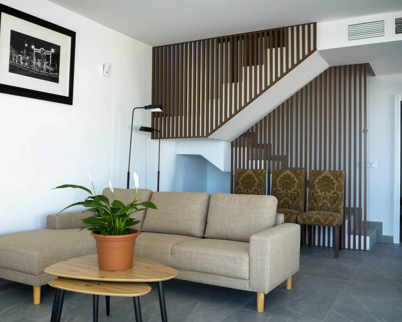 Located in the charming setting of Polop, this exclusive residential complex offers a selection of apartments and townhouses. With a total of six properties, each has been designed to provide maximum comfort and functionality. The location in Polop ensures a tranquil and picturesque environment, ideal for those seeking a retreat on the Costa Blanca. The properties are equipped with modern features that ensure a comfortable and efficient living experience. OUTDOOR AREAS The properties feature private terraces, perfect for enjoying the Mediterranean climate and views of Polop's natural surroundings. Additionally, each home has a solarium, providing extra outdoor space for relaxation or entertaining guests. The presence of a private pool in each property adds a touch of luxury, allowing for a refreshing swim in the privacy of your home. Electric shutters offer convenience and security, allowing easy adjustment of natural light. INDOOR AREAS The interiors of the homes are designed with a focus on comfort and functionality. Ceramic floors add a modern touch and are easy to maintain. The properties include air conditioning, ensuring a pleasant environment year-round. Built-in wardrobes provide ample storage space, while the pre-installation of air conditioning offers flexibility for future upgrades. Kitchens are equipped with modern appliances, facilitating daily life. POLOP DE LA MARINA Polop, in the province of Alicante, is a charming village nestled between mountains and with panoramic views of the sea. Although it is not a mass tourist destination, its appeal lies in its natural surroundings and its Mediterranean charm. Tourism in Polop focuses on its old town, with cobbled streets and historical monuments such as the Church of San Pedro. Its natural surroundings are conducive to outdoor activities such as hiking and cycling. The lifestyle in Polop is tranquil and rooted in rural life. The inhabitants value tranquillity and community life, celebrating local festivities and promoting cultural activities. The gastronomy is based on typical dishes of the region, with fresh local produce. Polop offers a serene and rural atmosphere for those seeking a quiet life in a natural environment, enjoying the panoramic views and the essence of Mediterranean life in the province of Alicante.