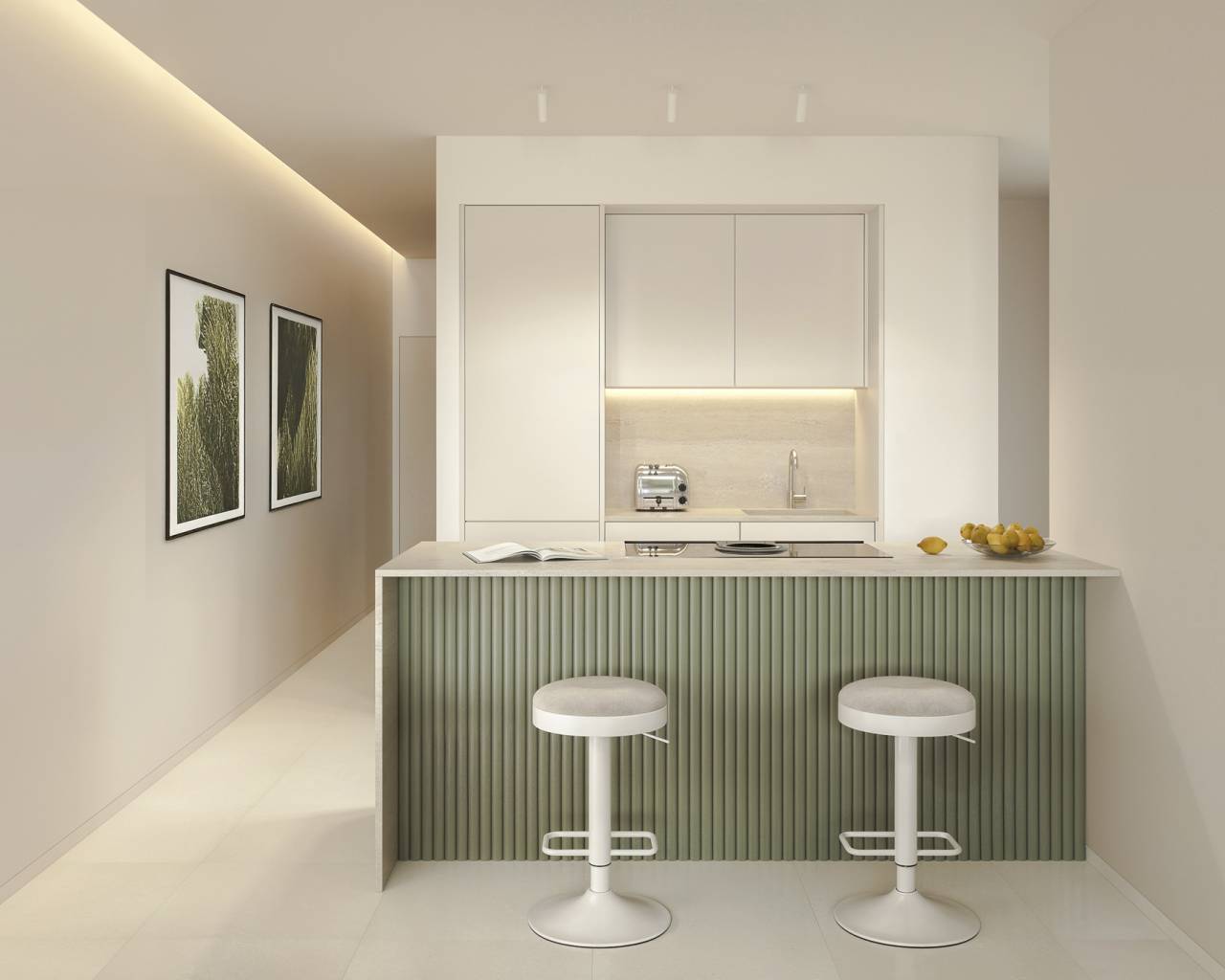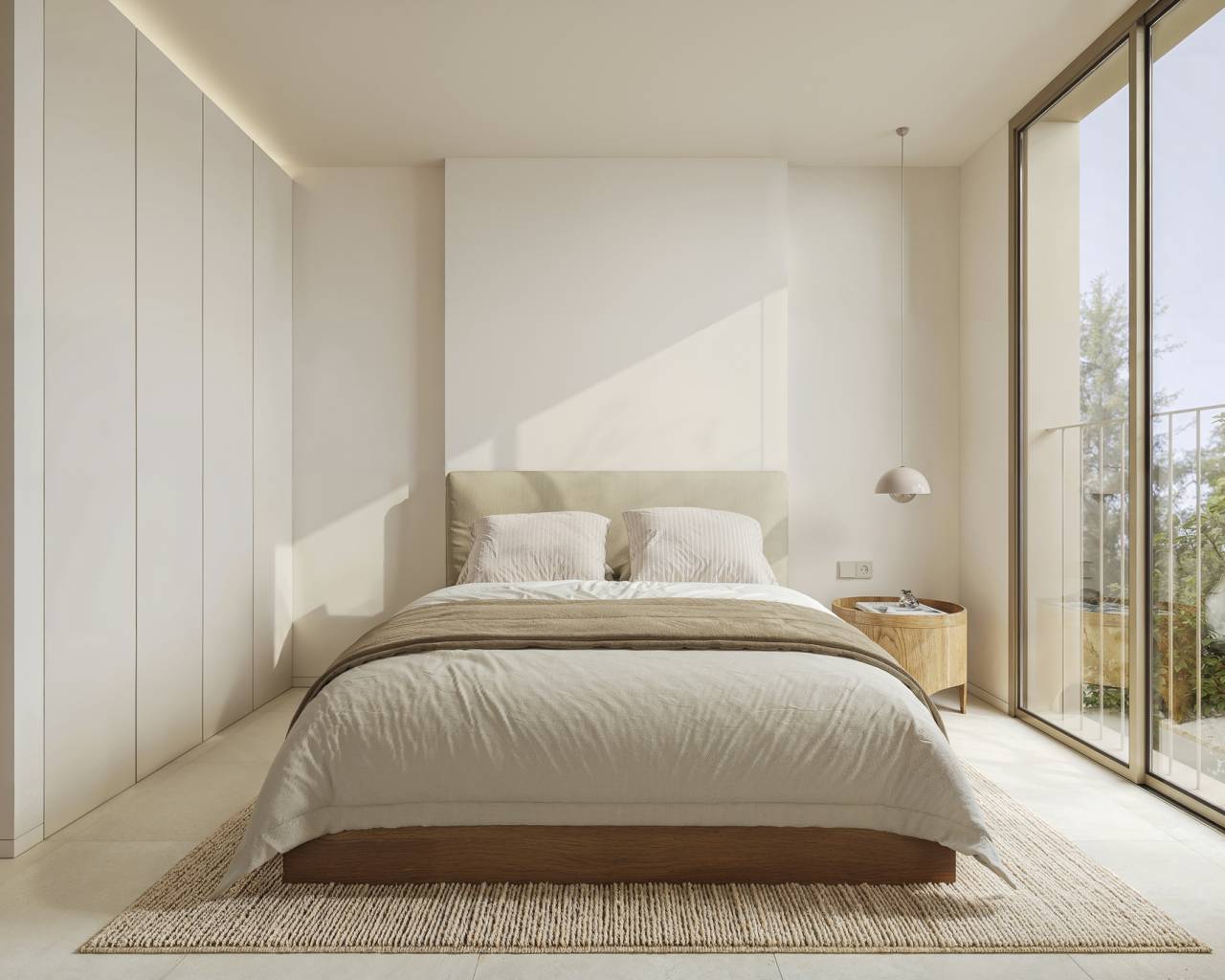 The interiors of the homes are equipped with modern features that ensure comfort and efficiency. All properties include electric blinds, facilitating light and privacy control with a simple touch. The pre-installation of air conditioning ensures that residents can enjoy a fresh and comfortable environment throughout the year. Additionally, the homes are equipped with appliances, providing a practical and ready-to-move-in solution. The internal layout includes options of two or three bedrooms, all with two bathrooms, ensuring ample space for families of different sizes. The spacious terraces connect the interior with the exterior, creating a natural flow of light and air.