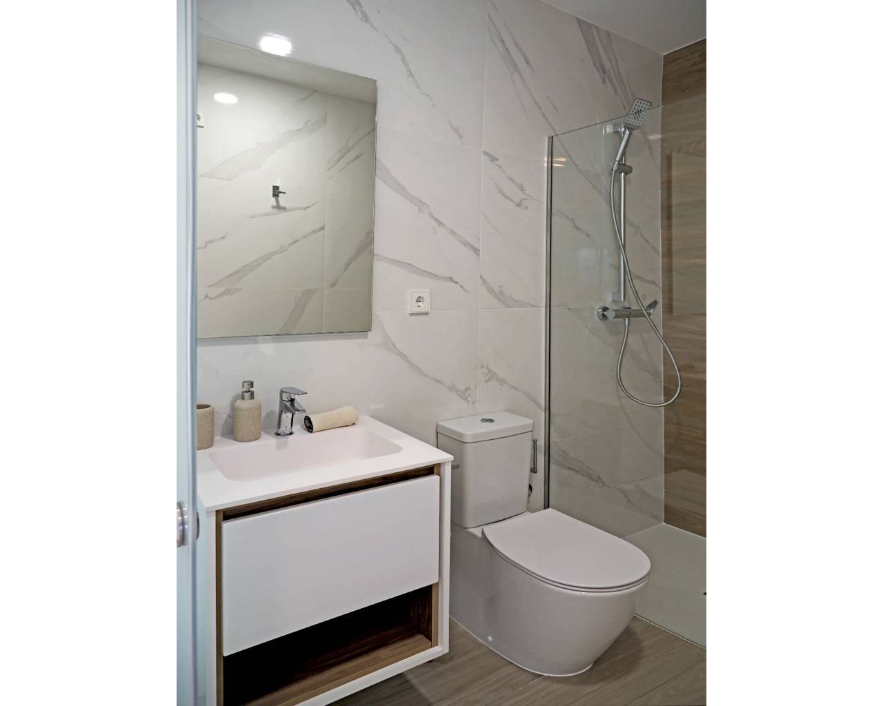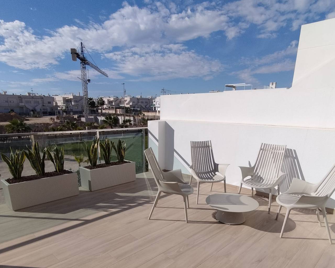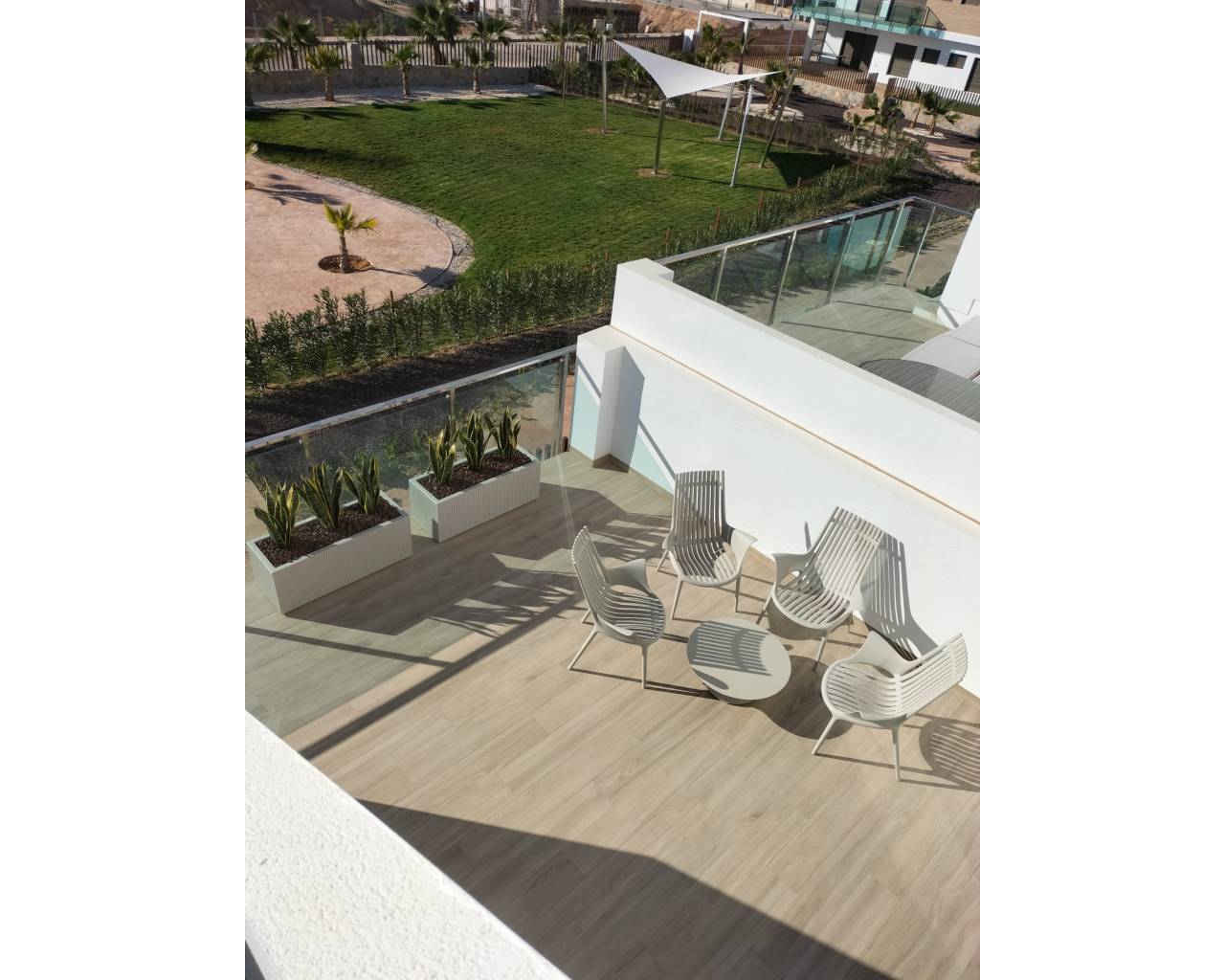 The exteriors of these homes are designed to maximize enjoyment of the Mediterranean climate. Each property features a terrace, ideal for outdoor relaxation or al fresco dining. Additionally, some types include a solarium, providing extra space for sunbathing or creating a private resting area. Gardens, present in certain configurations, offer a touch of nature and a perfect space for outdoor activities. The inclusion of pergolas in the exteriors adds an element of shade and style, allowing enjoyment of the outdoors even on the sunniest days.