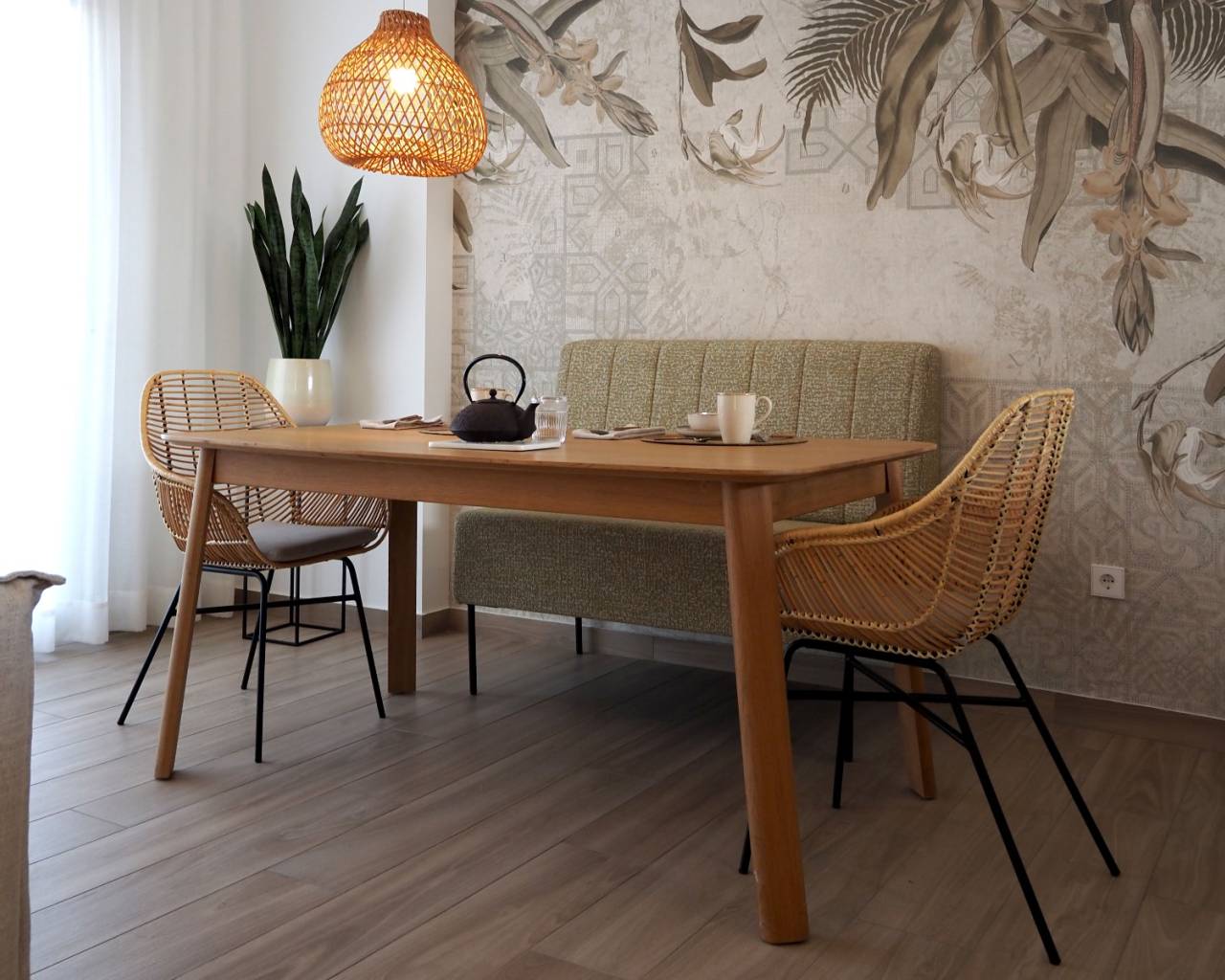 The interior of the homes is carefully designed to offer comfort and functionality. The apartments, high-bungalows, and low-bungalows are available in 2 or 3-bedroom configurations, all with 2 bathrooms, ensuring comfort for families of different sizes. The properties feature built-in wardrobes, optimizing storage space and maintaining order. The ceramic flooring adds a modern touch and is easy to maintain, ideal for today's lifestyle. Additionally, the homes are equipped with air conditioning and pre-installation for air conditioning, ensuring a pleasant environment throughout the year.