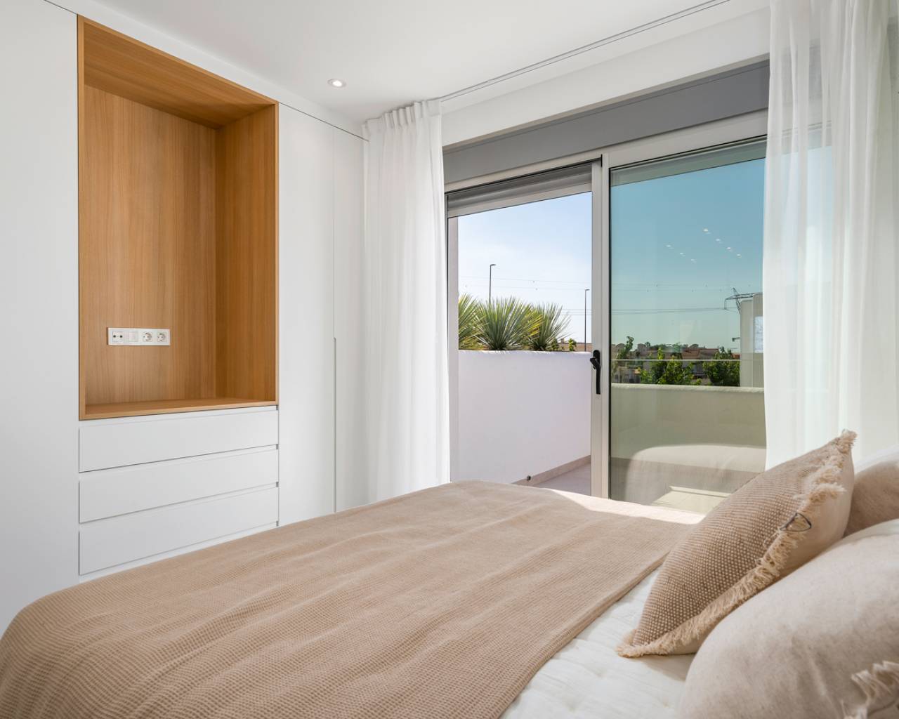 The interior of the homes is carefully designed to offer comfort and style. Ceramic floors provide a modern touch and are easy to maintain. The properties feature 3 bedrooms and the option of 2 or 3 bathrooms, adapting to different family needs. Built-in wardrobes optimize storage space, while electric shutters and pre-installation of air conditioning ensure a comfortable environment in any season. The kitchen is equipped with appliances, facilitating daily life. Additionally, the optional solarium offers extra space to customize according to each resident's preferences.