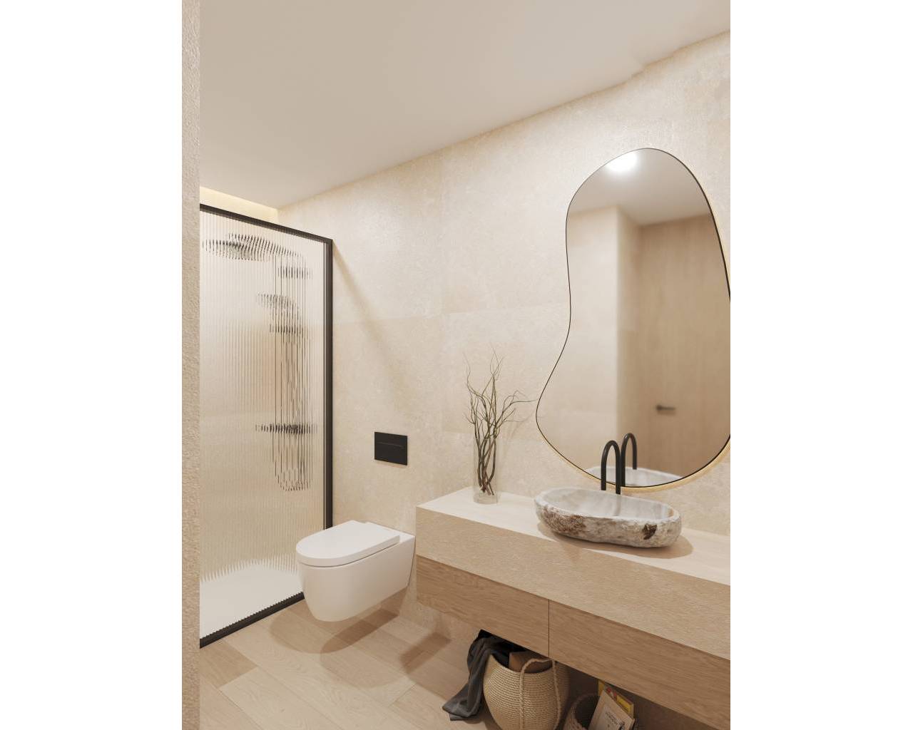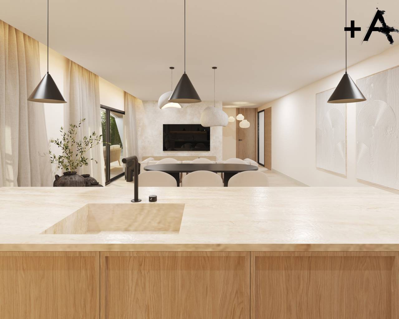 The interior of these detached homes is designed with a focus on comfort and functionality. The porcelain tile floors add a touch of elegance and are easy to maintain. The homes are equipped with modern appliances and feature electric blinds for added convenience. Built-in wardrobes offer ample storage space, while underfloor heating ensures a warm environment during the colder months. The pre-installation of air conditioning allows for easy adaptation to the climatic needs of each resident. Layout options include homes with 3 or 4 bedrooms and 3 bathrooms, catering to different family needs.